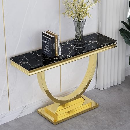 46'' Marble Console Table, Modern Luxury Long Narrow Console Entryway Table Hallway Table with Gold U-Shape Stainless Steel Base and Marble Tabletop, Sofa Table for Living Room, Bedroom