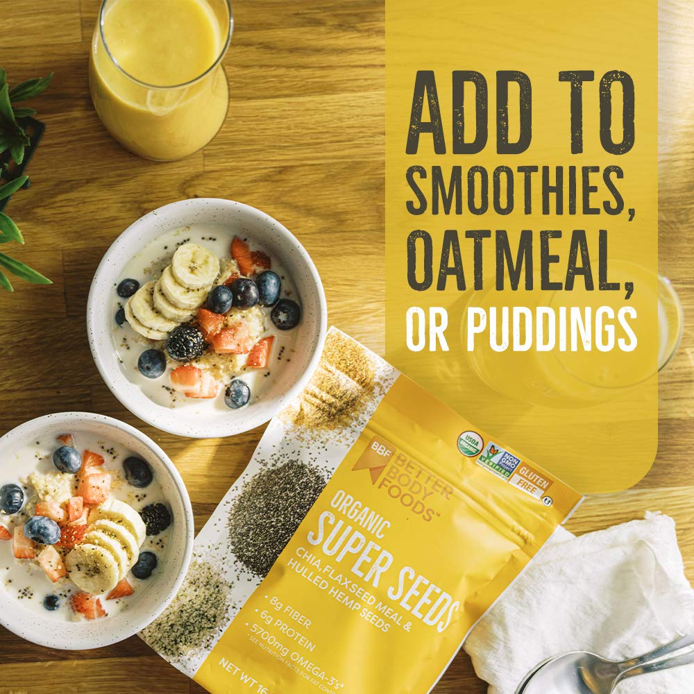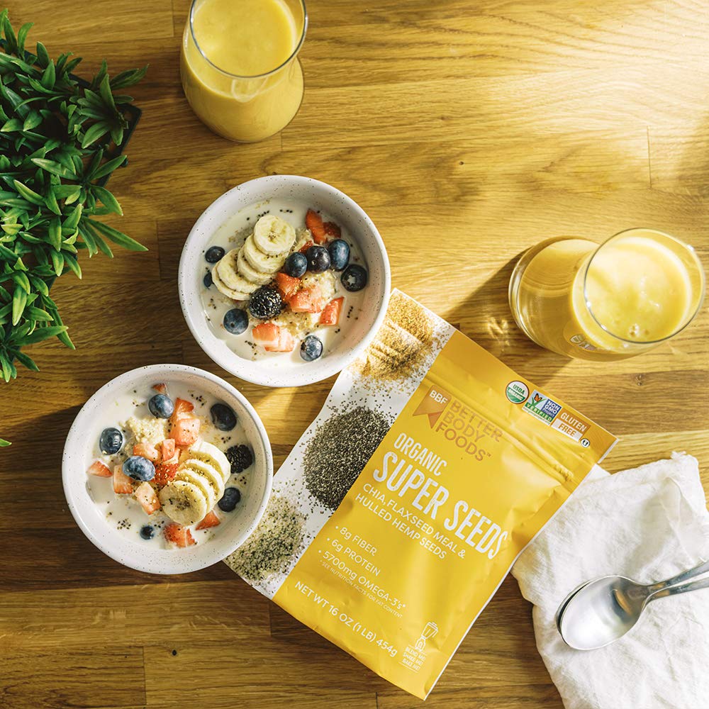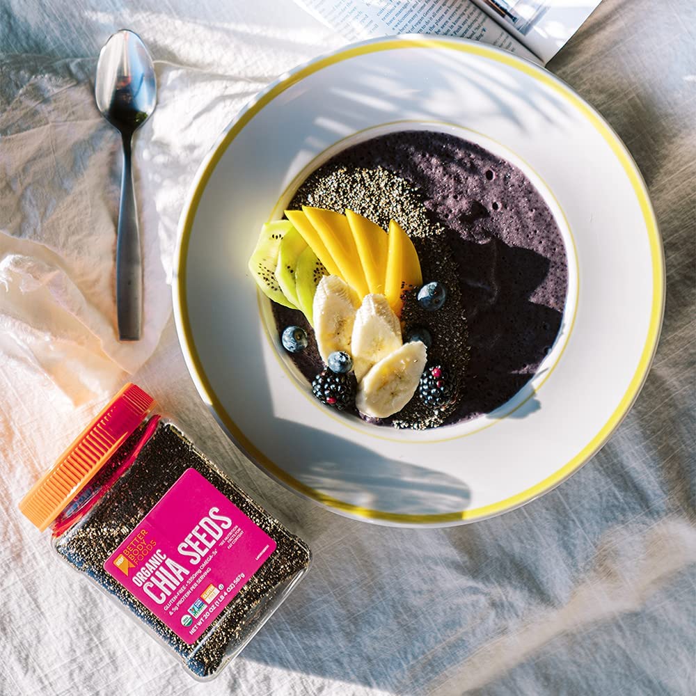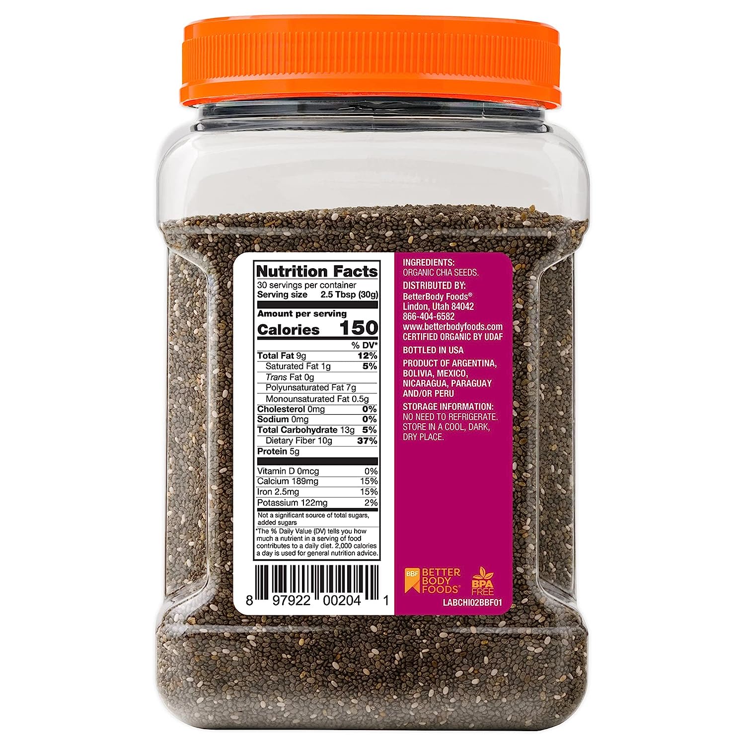 Finding foods with lots of nutrients can be helpful for people who are trying to change their diet and live a better life. The word “chia” comes from the ancient Mayan word for strength. Why would the Mayans use such a powerful word for such a small seed? Well, chia seeds are loaded with nutrients such as fiber and omega-3 fatty acids. Our Organic Chia Seeds are nutrient powerhouses which is why they deserve to be associated with strength. They contain 37% of the daily recommended value of fiber to help the 97% of Americans who are fiber deficient. Because our chia seeds are flavor neutral and flavorless, you can add them to just about anything to get a boost without changing the taste of your food. Just mix our chia seeds with your favorite breakfast shake, smoothie, bread batter, or other food that could use a little extra crunch that your family will love! Use them as a pre-or post-workout boost with protein powders that you are already using. You can also sprinkle the seeds as a topping on yogurt, salads, or cereal for a satisfying snack! Our Organic Chia Seeds also make a great egg replacement. Just mix 1 tbs. of chia seeds with 3 tbs. of water and let it sit for 5 minutes. Then use it as a vegan egg substitute in your favorite recipes. These Organic Chia Seeds are gluten-free, vegan, nut-free, raw, low-carb, non-GMO, and paleo-friendly, making them the perfect powerhouse for your pantry. BetterBody Foods is determined to bring you quality products that are better for your body but that don’t make you sacrifice the flavors that you enjoy. Find food that you’ll love to love with our 2 lbs. bulk container of Organic Chia Seeds!