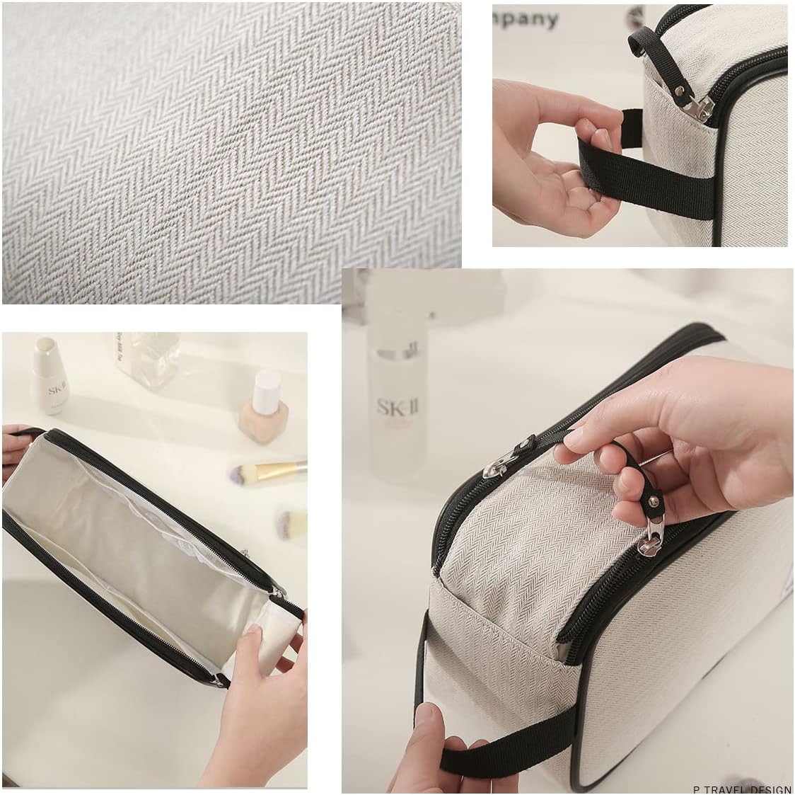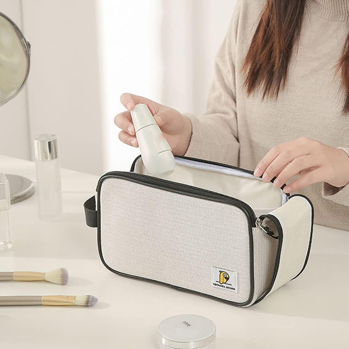 cirea Minimalism Portable Large Capacity Cosmetic Bag for Women Travel Makeup Bag with Handle White Skincare Bag (White)