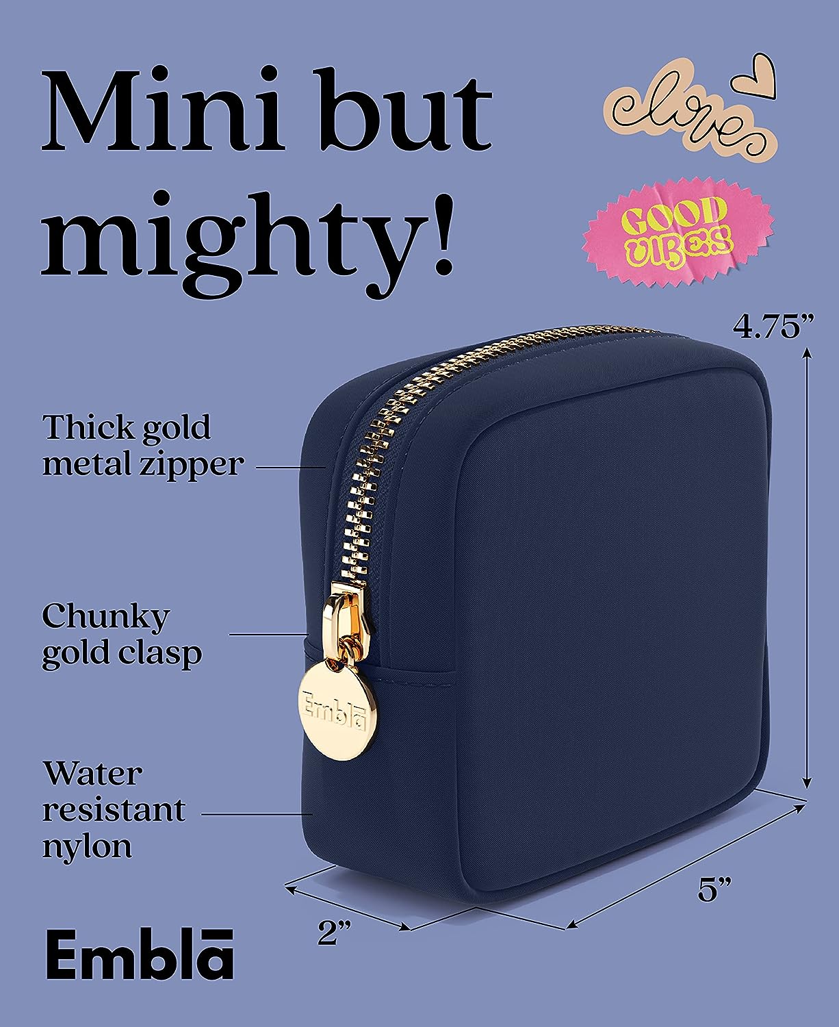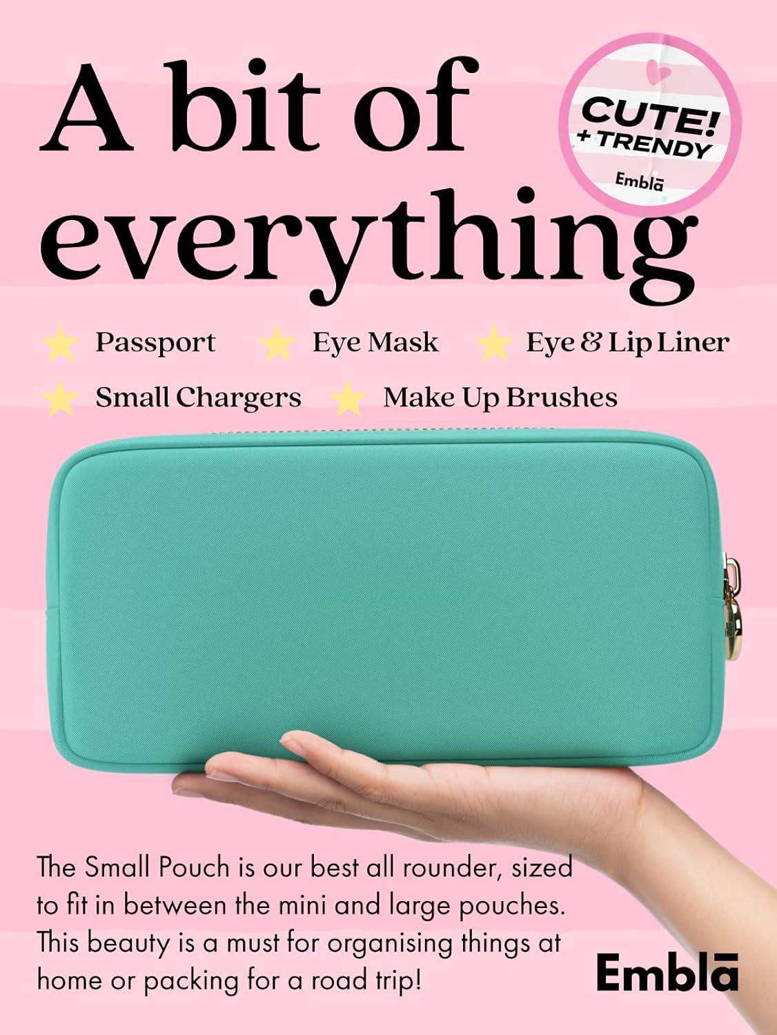 • ? TRAVEL + CUTE = EMBLA! - Our bags are THE trendy & preppy storage gifts! Simply pick your size (Mini, Large or XL) and start organizing all of your makeup, lipstick, hair stuff, snacks and jewelry accessories! Or use it as a clutch handbag, makeup brush holder, skin care bag, stoney clover dupes, zippered carry case or coin purse wallet!