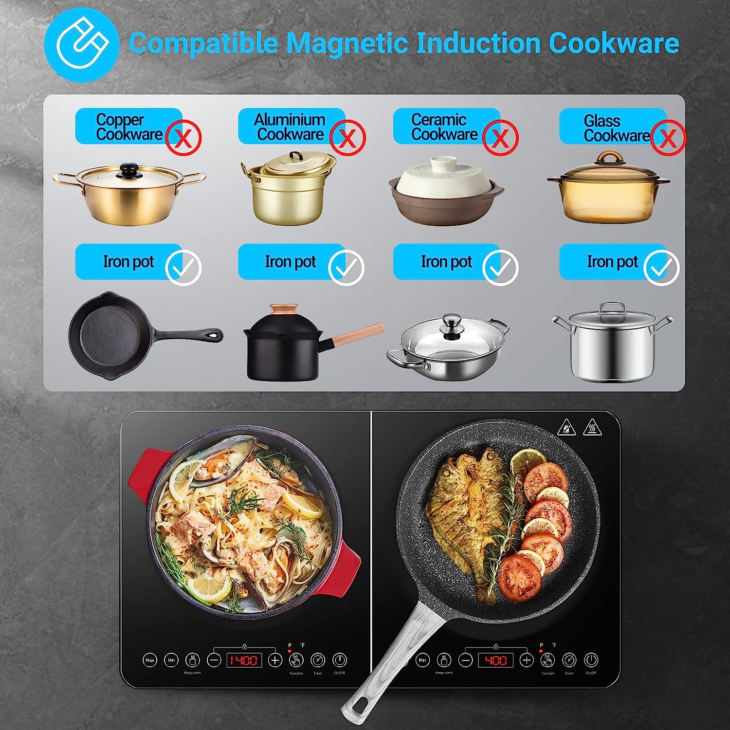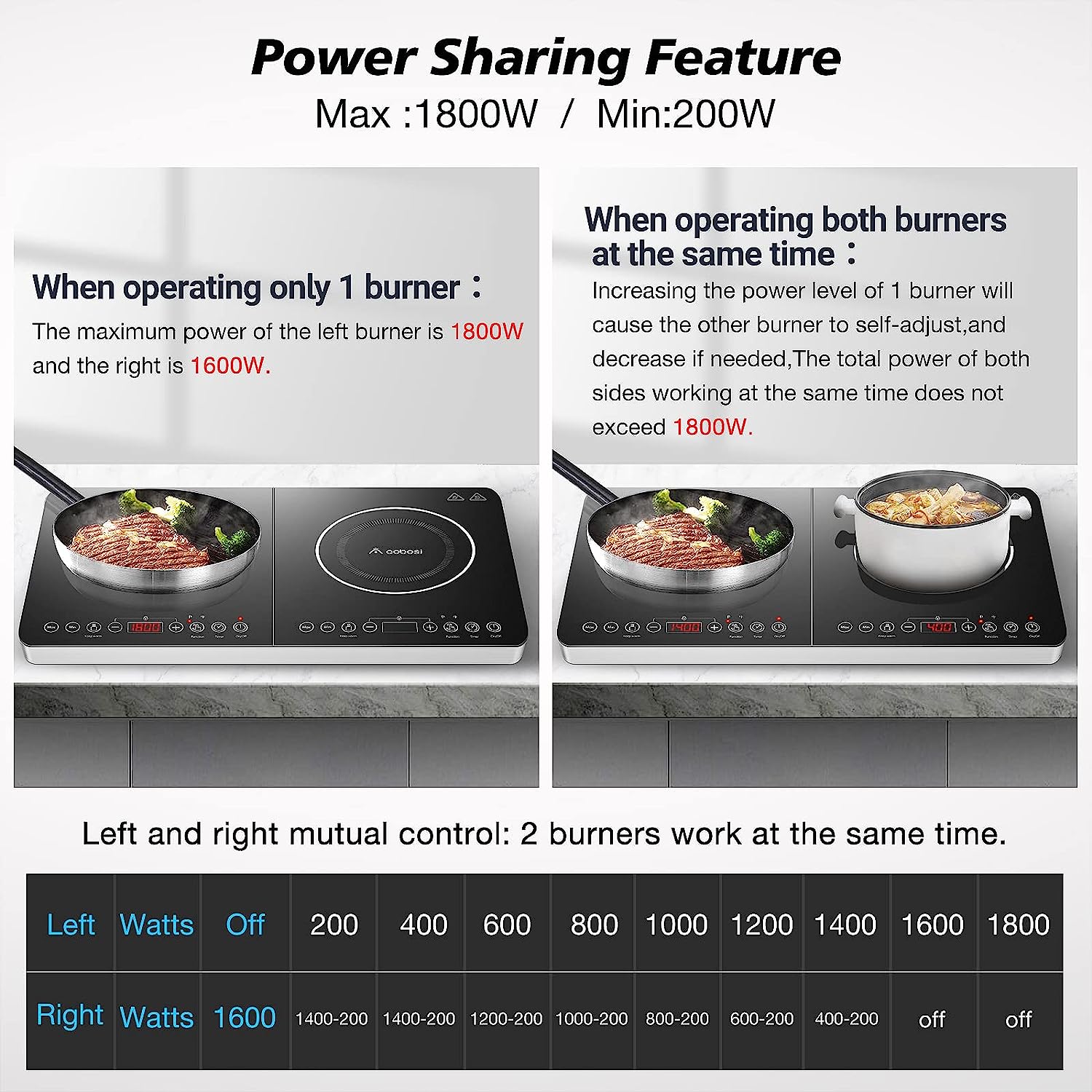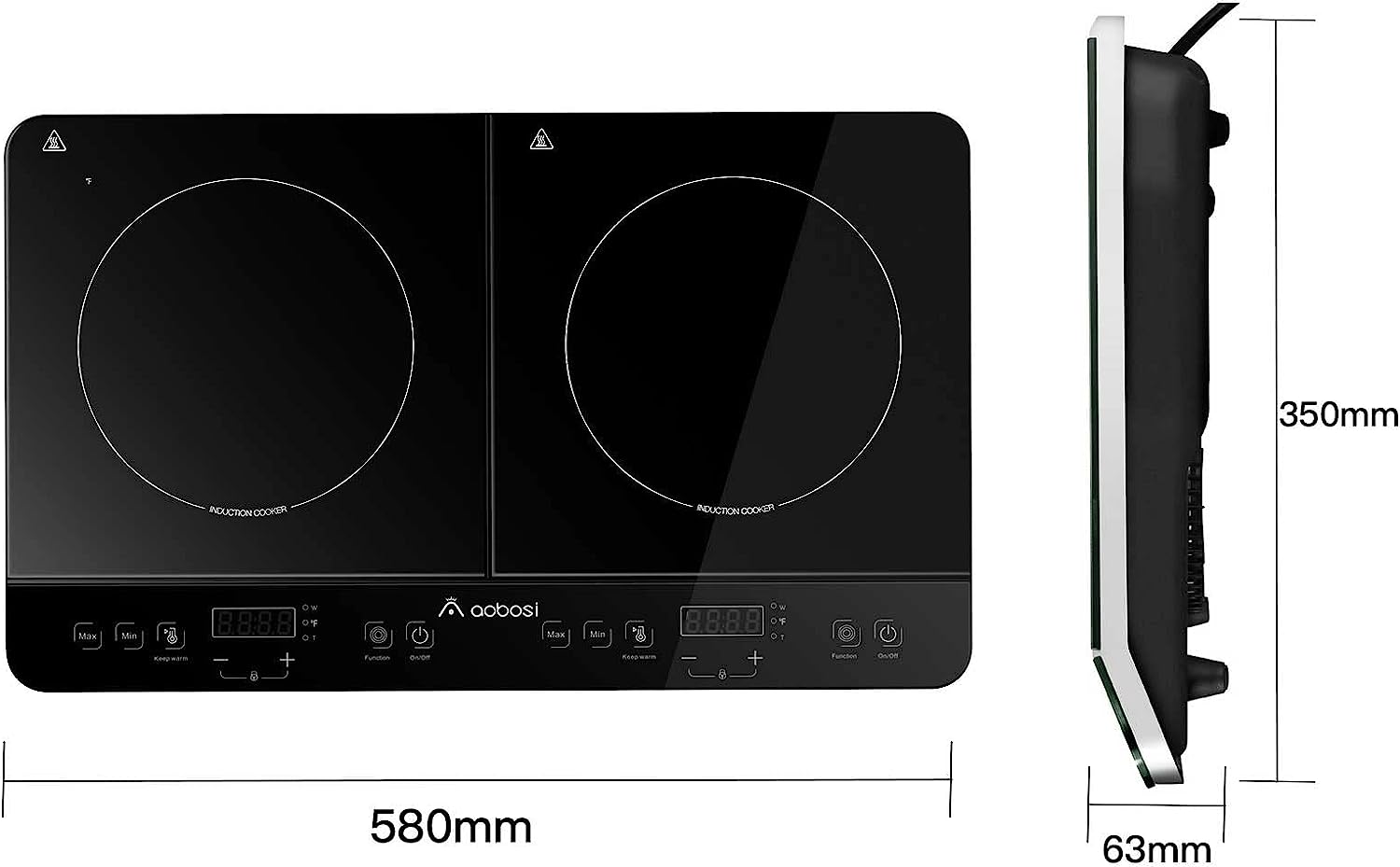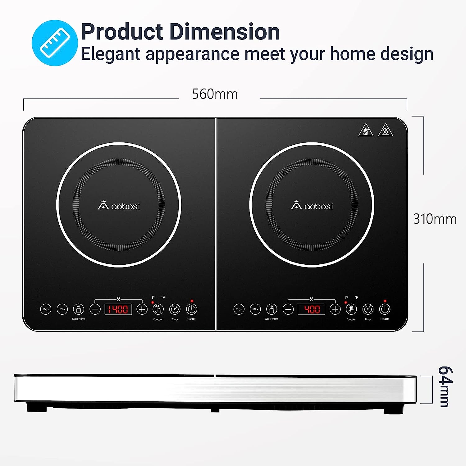 • 🍿【Multiple Security & Keep Warm】Aobosi double induction hotplate has overheating, over-pressure and over-current protection.Different from other brands in market,not only that press "Function" button to convert between temperature and power, but ours also has a special Keep warm feature.It can keep your water or soup 176℉ maintained.