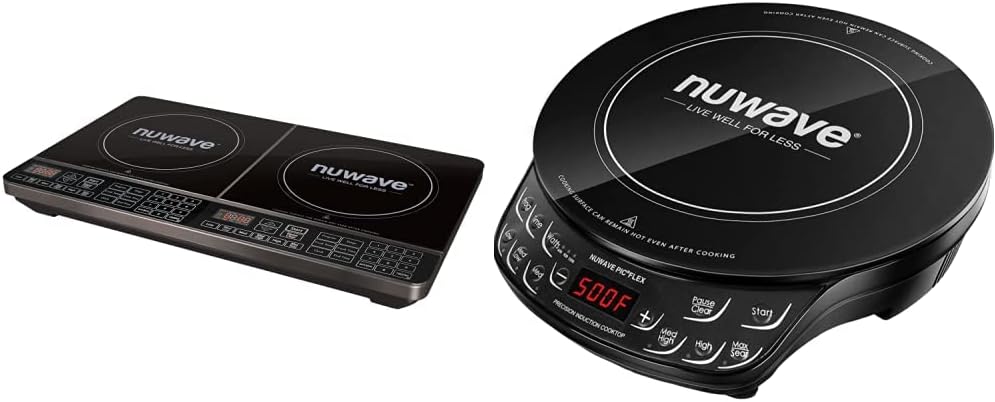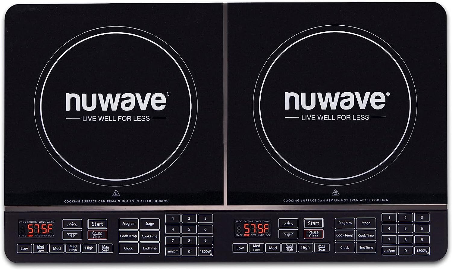 Nuwave PIC Double, Portable, Powerful 1800W with 2 Large 8” Heating Coils, Independent Controls, 94 Temp Settings from 100°F to 575°F in 5°F Increments, 11.5” Shatter-Proof Ceramic Glass Surface