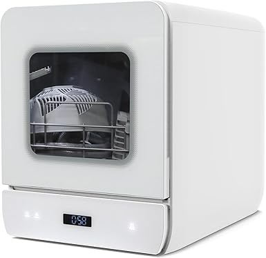 ELECWISH Portable Countertop Dishwasher with 6+4 Programs, Built-in 5L Water Tank Dual Water Supply Modes with Touch Control, LED Display, Drying Cycle & Fruit Wash (White Stainless Steel)