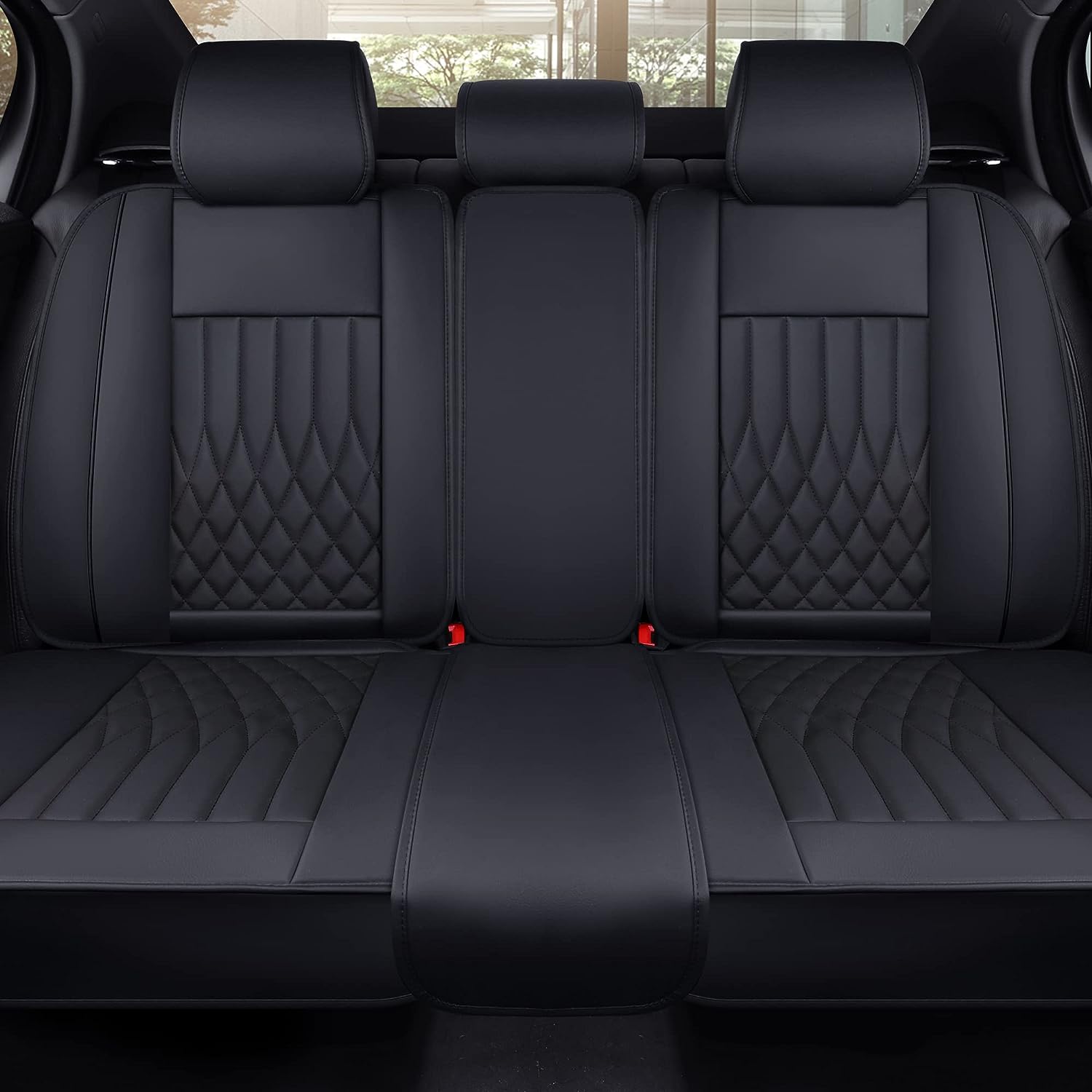 Aierxuan 5pcs Car Seat Covers Full Set with Waterproof Leather,Airbag Compatible Automotive Vehicle Cushion Cover Universal fit for Most Cars (Black)