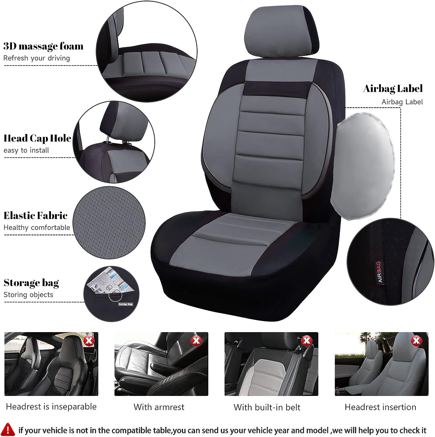CAR PASS 6PCS Elegance Universal Fit Two Front Car Seat Covers Set ,Foam Back support,Airbag Compatible,Fit for suvs,sedans,cars(Black with Gray)