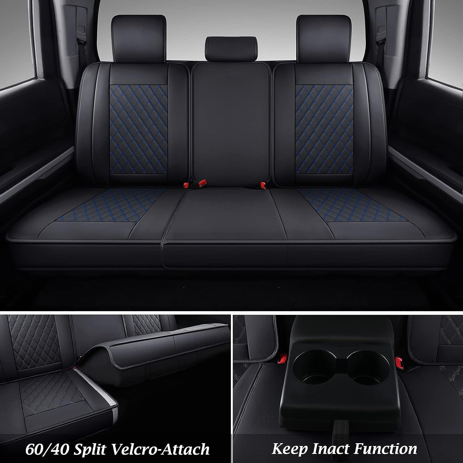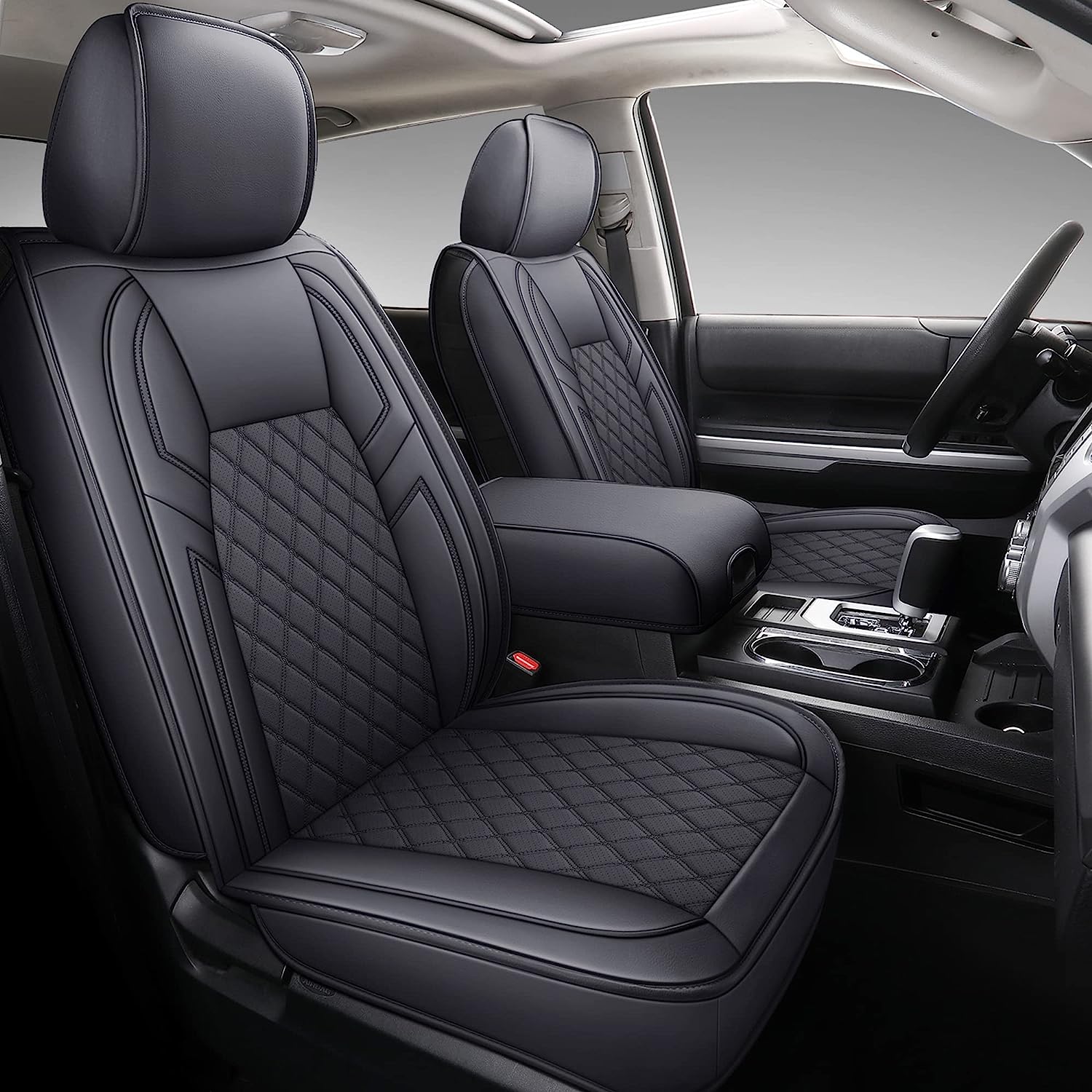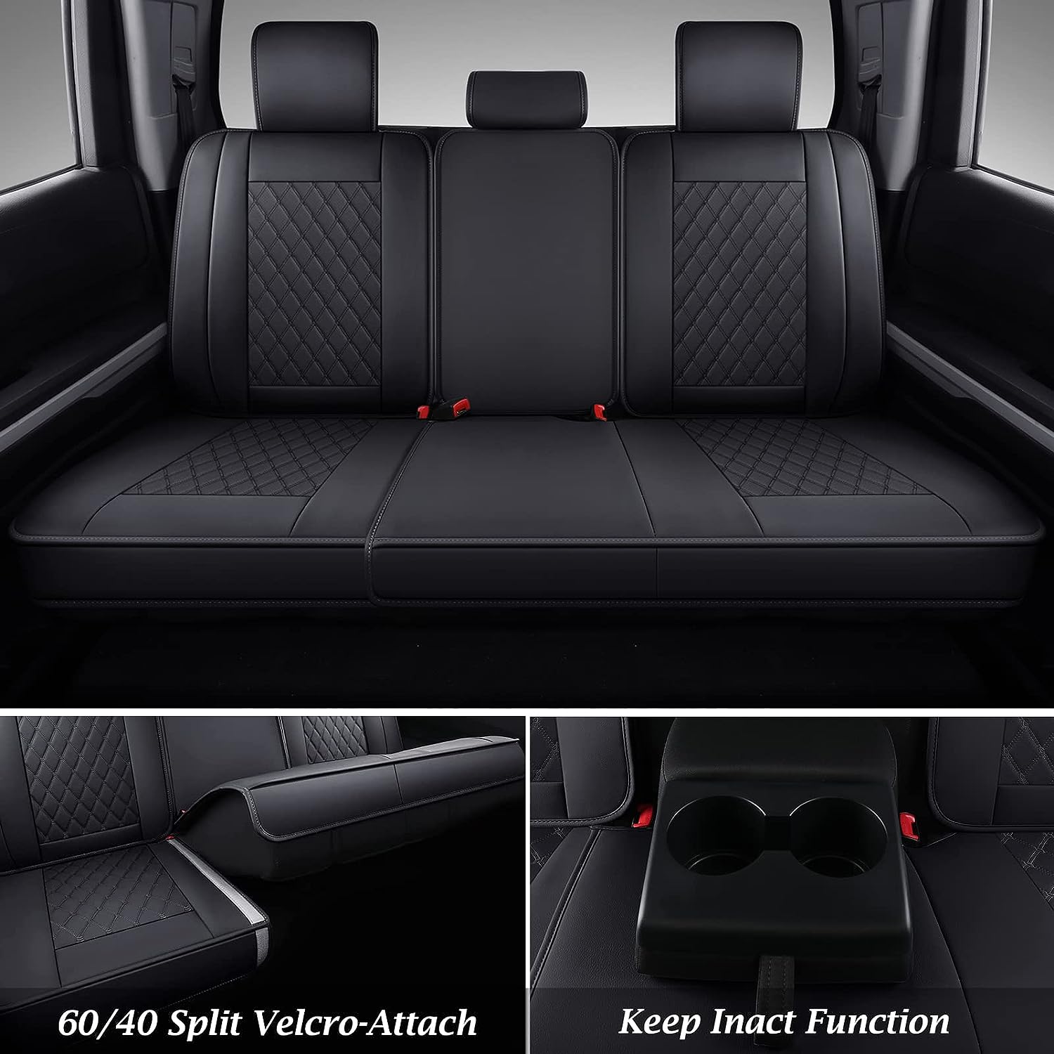Coverado Tundra Seat Covers, Waterproof Leather Car Seat Covers, Custom Seat Protectors Truck Pickup Auto Accessories Fit 2007-2021 Toyota Tundra Crew/Crewmax/Extended/Double Cab(Full Set 5PCS, Black)