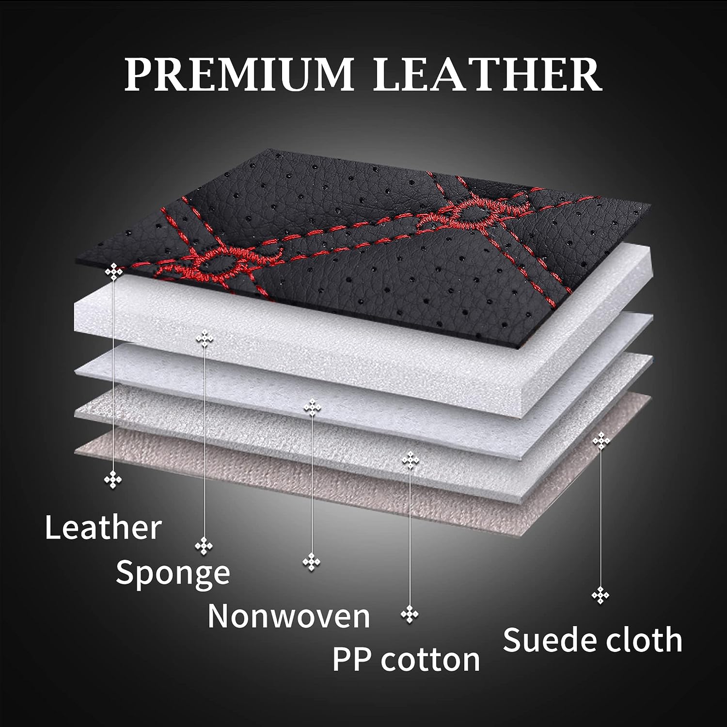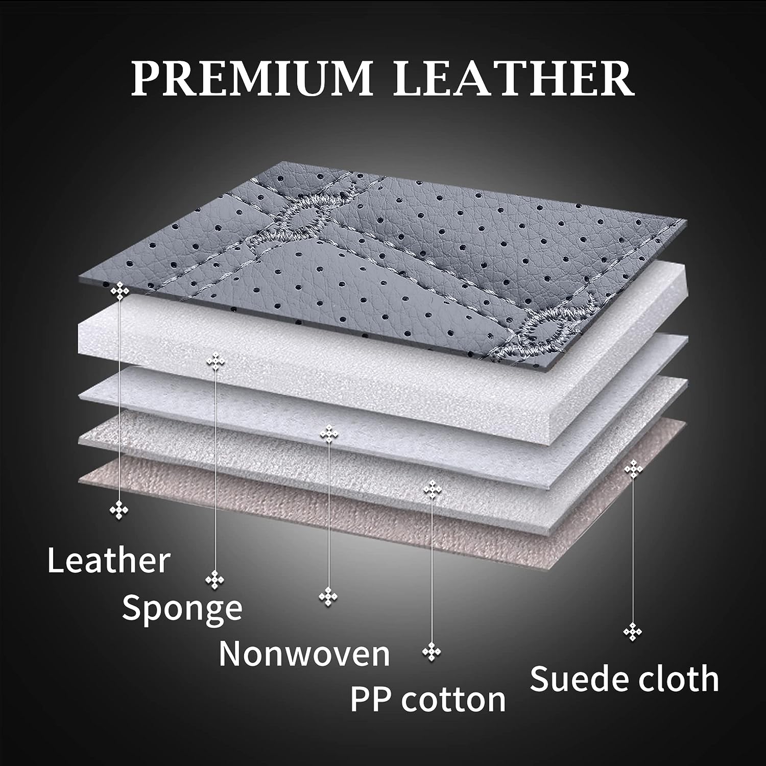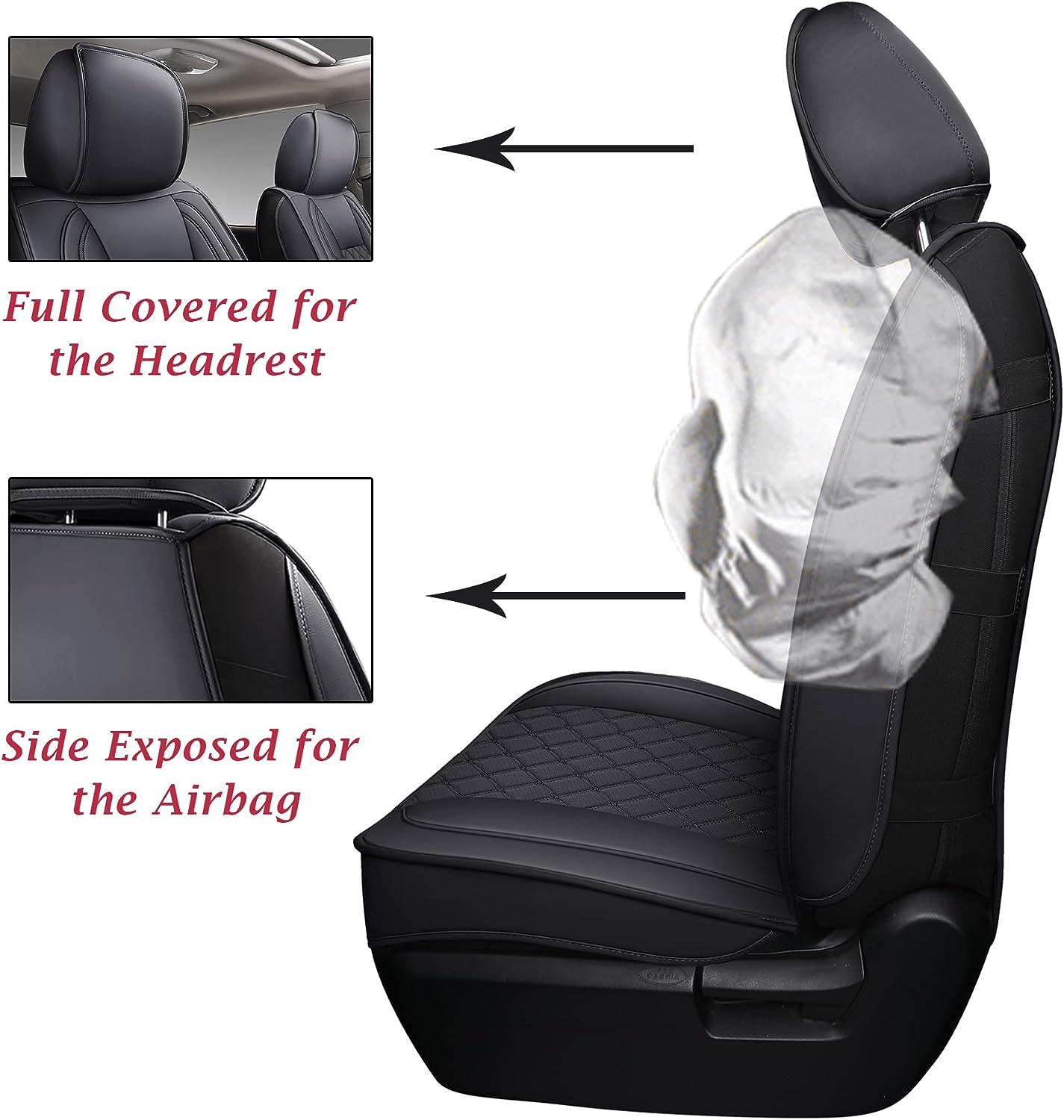 • 【PREMIUM MATERIAL】Our protective seat covers are made of premium leather to offer a modern and stylish way to protect your vehicle seats from dust, stains or damage. They are breathable, waterproof, gentle to the touch and made for a long term use.
