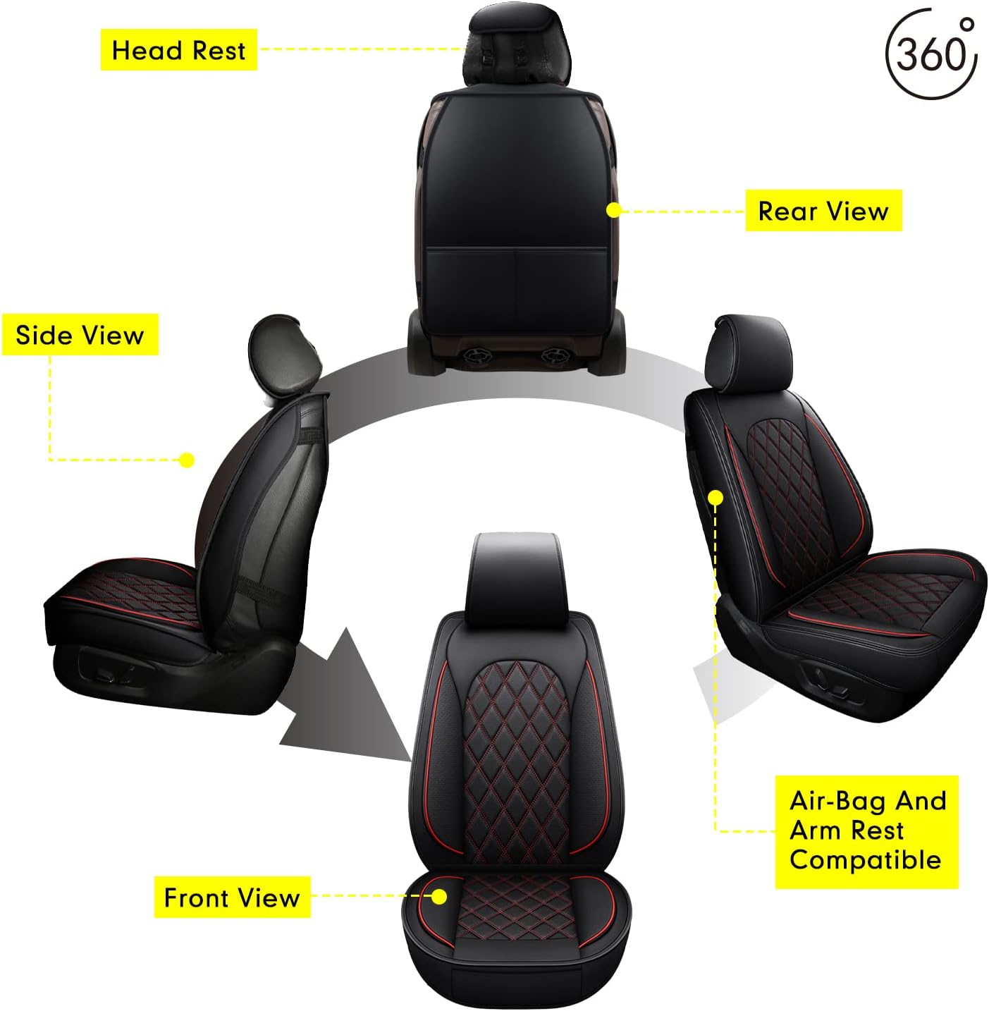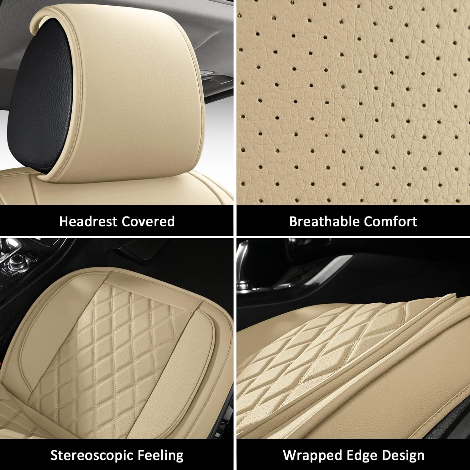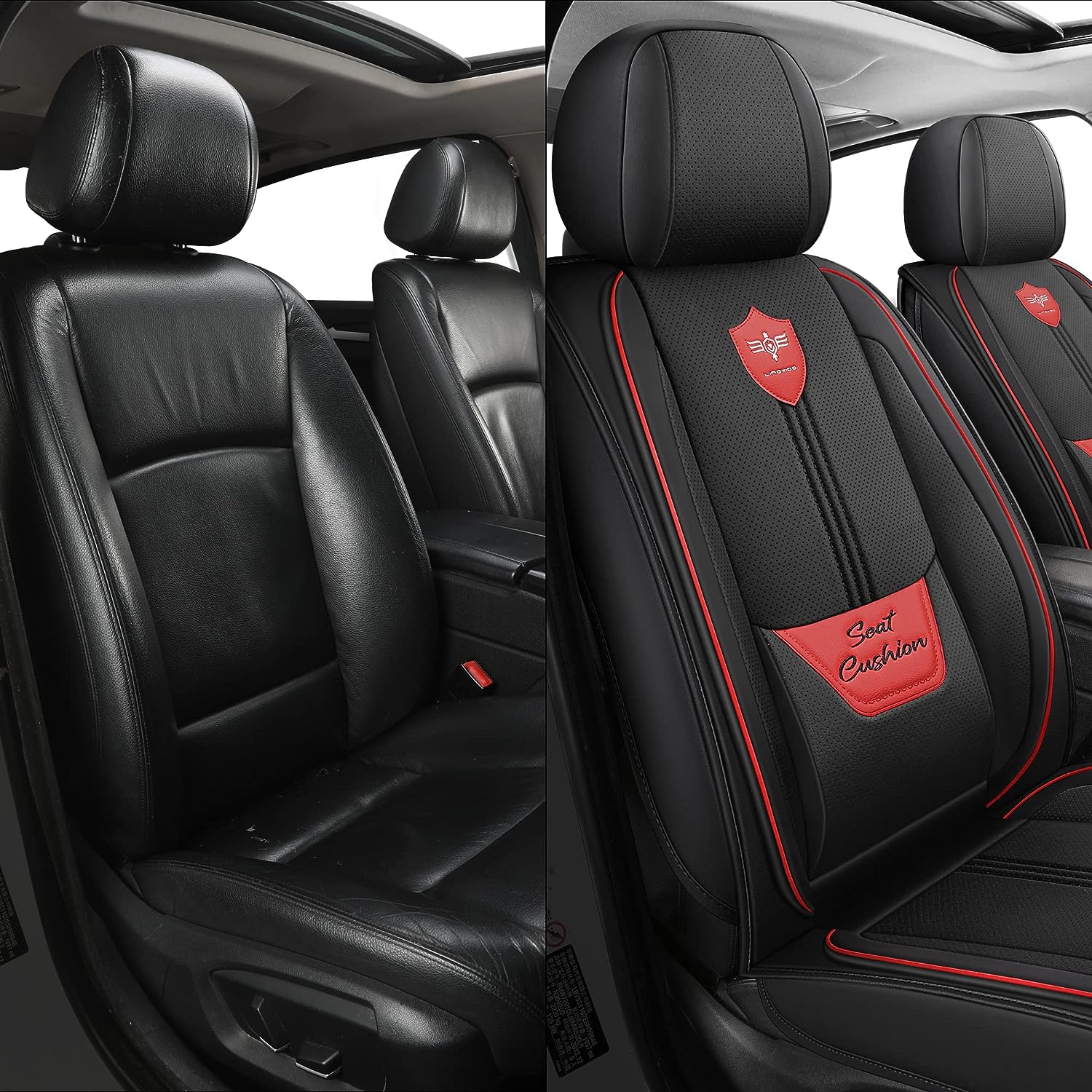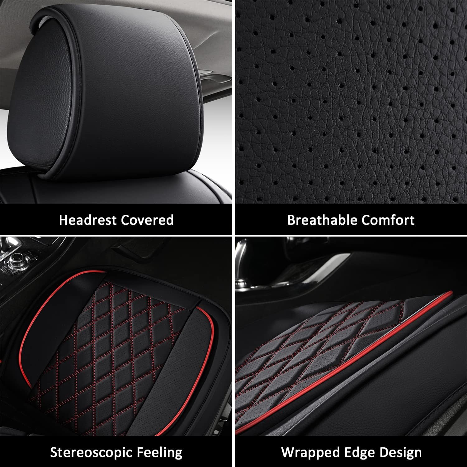 • [HIGH-QUALITY MATERIAL] Surface material made of high quality faux leather which is soft, durable and waterproof,delicacy perforations bring breathable comfort experience.The middle part use high rebound sponge,create top resilience for maximum comfort during your drive. Non-slip fabric is used on the bottom layer,keep the covers in place so you can get in and out worry free.