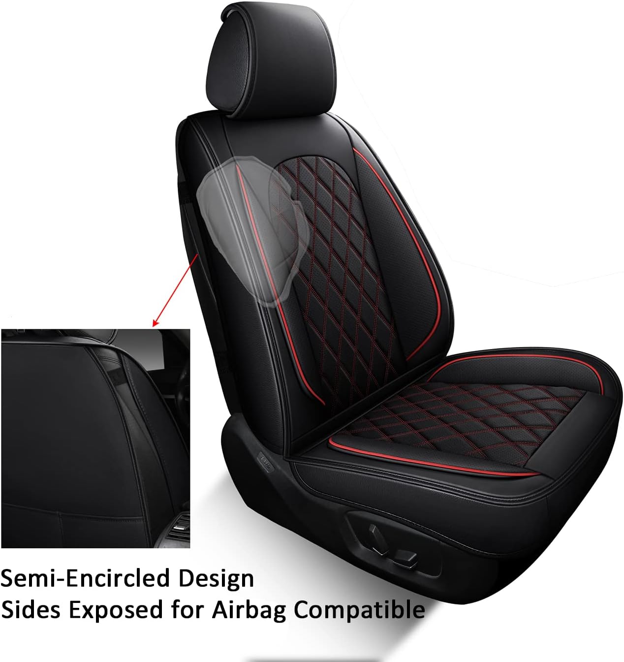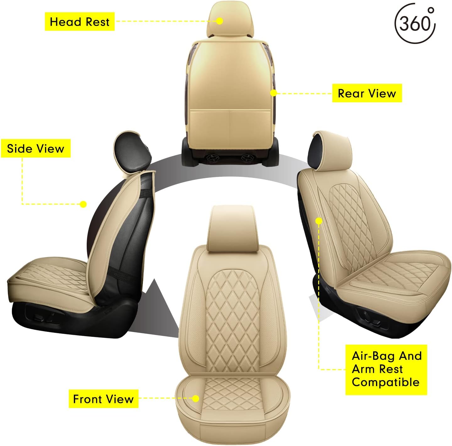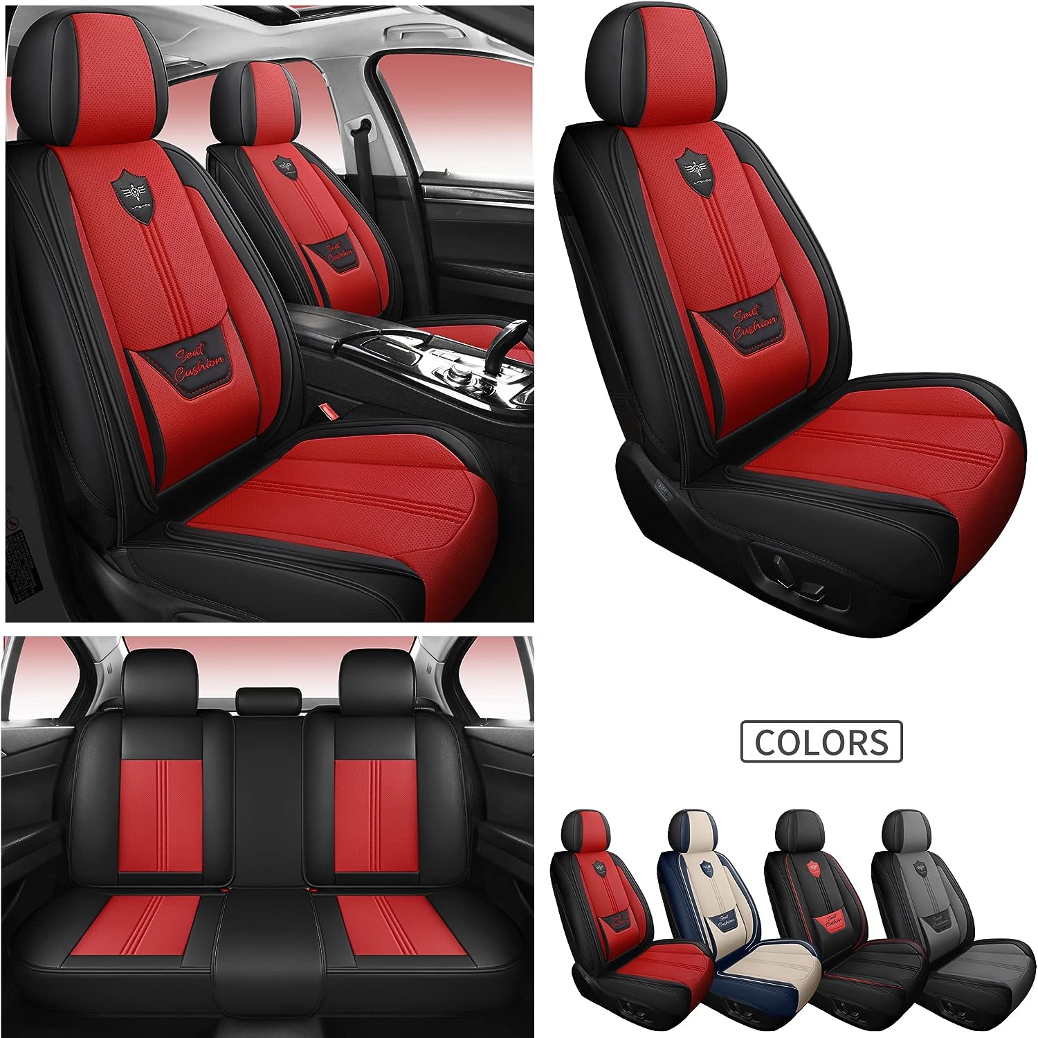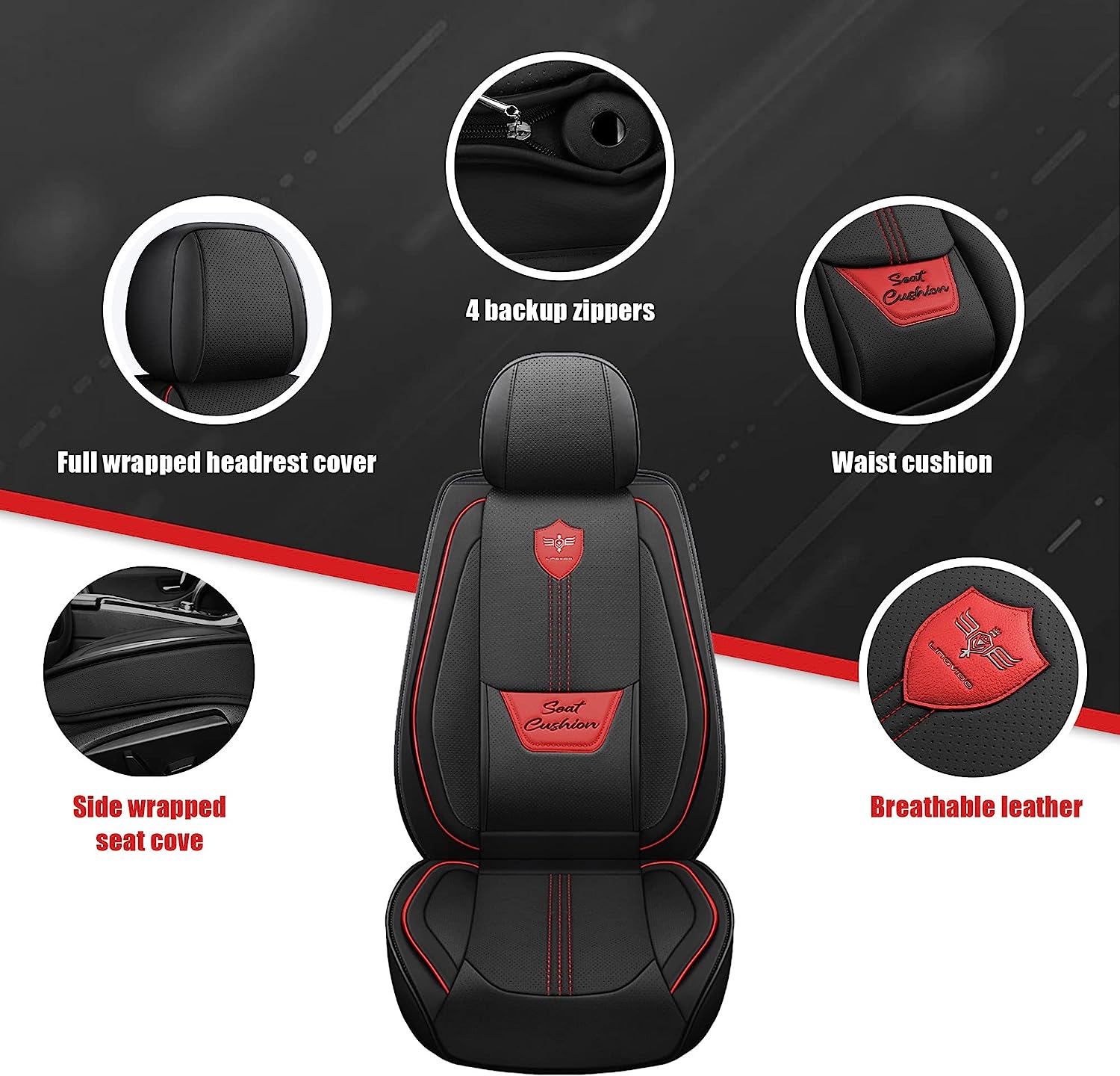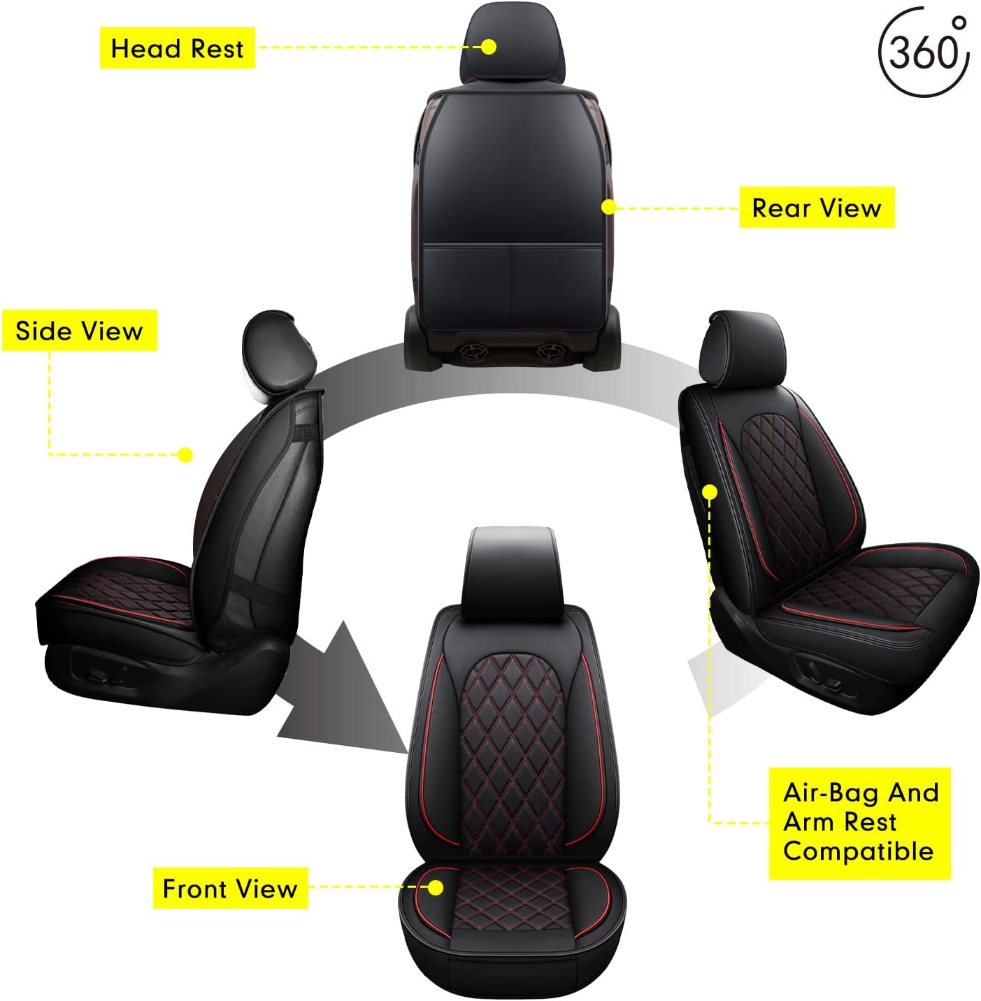 • [HIGH-QUALITY MATERIAL] Surface material made of high quality faux leather which is soft, durable and waterproof,delicacy perforations bring breathable comfort experience.The middle part use high rebound sponge,create top resilience for maximum comfort during your drive. Non-slip fabric is used on the bottom layer,keep the covers in place so you can get in and out worry free.