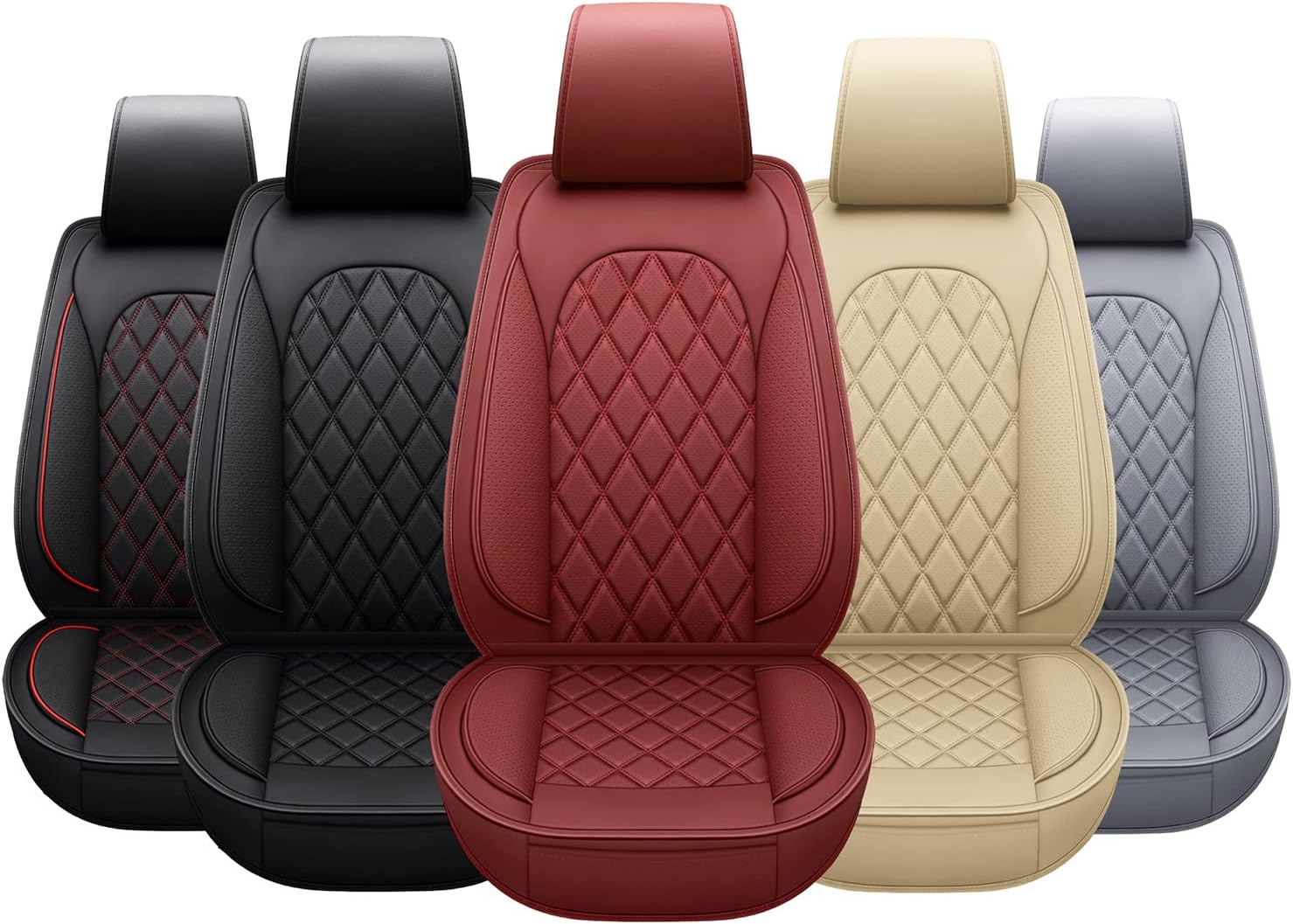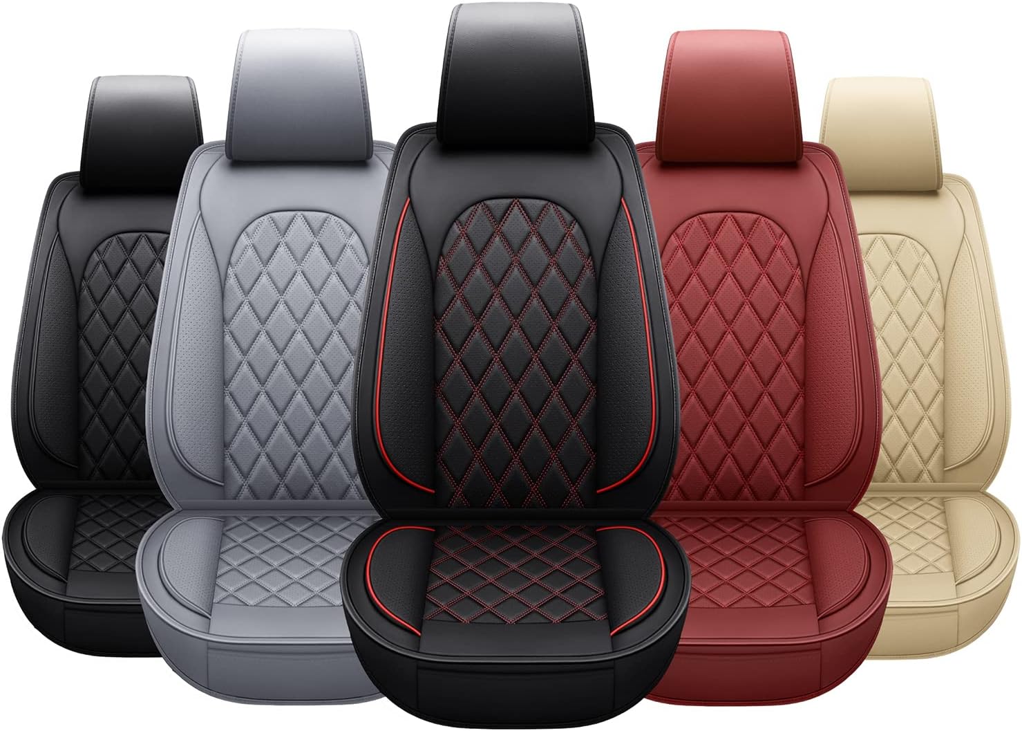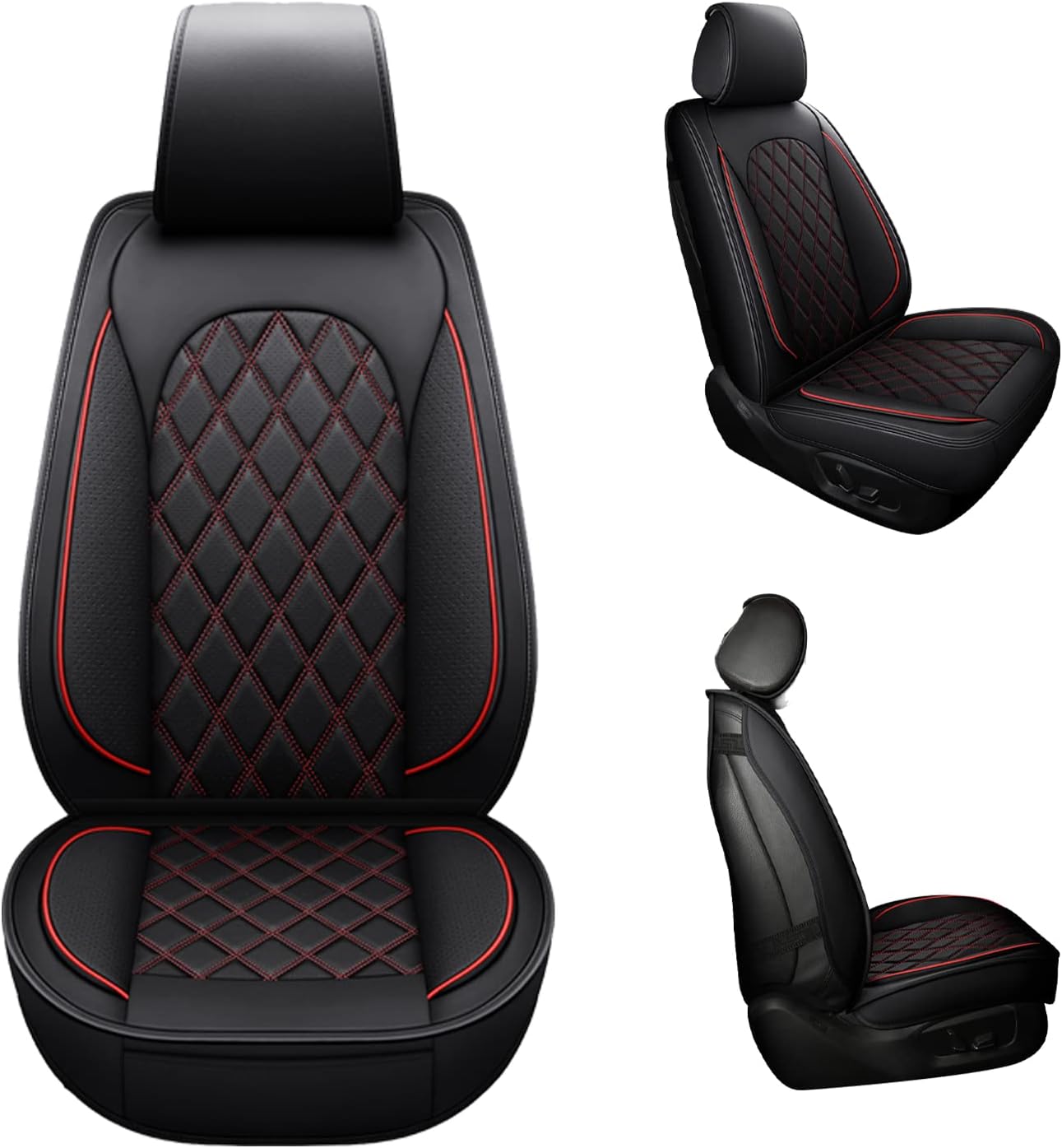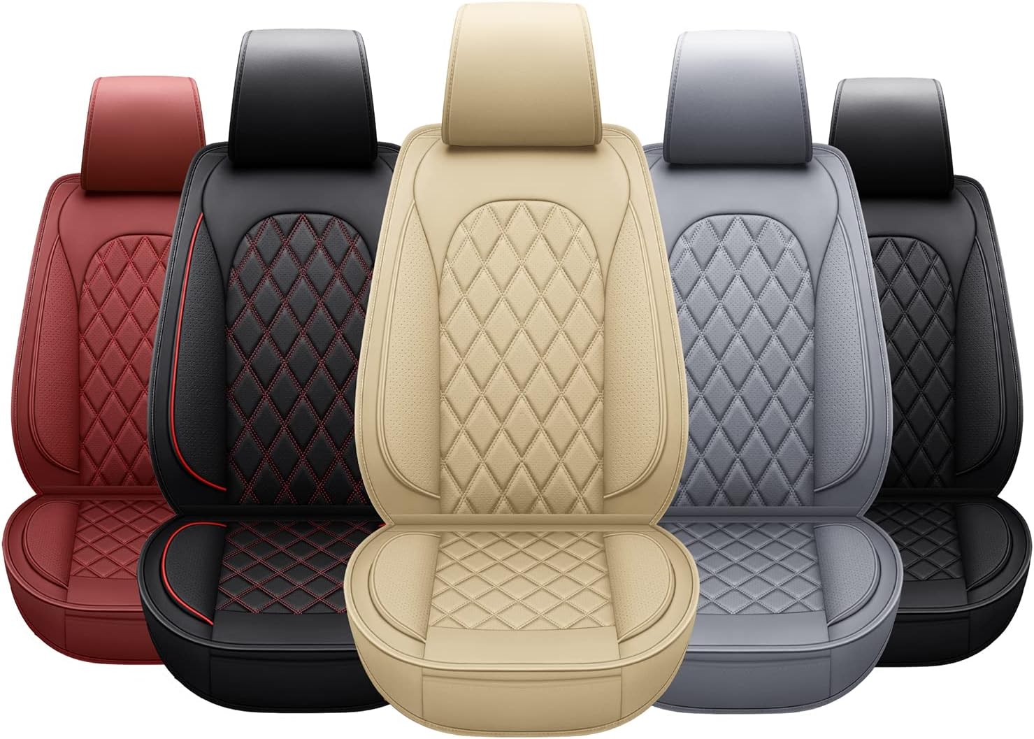 • [HIGH-QUALITY MATERIAL] Surface material made of high quality faux leather which is soft, durable and waterproof,delicacy perforations bring breathable comfort experience.The middle part use high rebound sponge,create top resilience for maximum comfort during your drive. Non-slip fabric is used on the bottom layer,keep the covers in place so you can get in and out worry free.