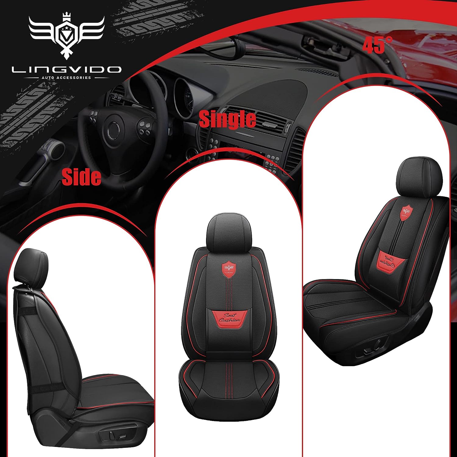 LINGVIDO Breathable and Waterproof Faux Leather Automotive Seat Covers for Cars SUV Pick-up Truck Sedan,Universal Anti-Slip Driver Seat Cover Accessories with Backrest (Full Set, Black)