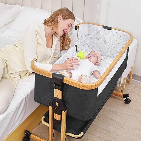 Baby Bassinet, 3 in 1 Bedside Crib for Newborn, 6 Height Adjustable & Easy Folding & with Mosquito Net & Storage Basket & Wheels