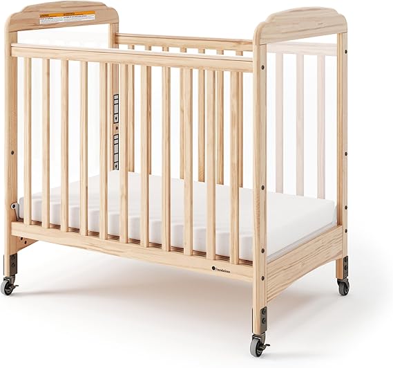 Foundations Serenity Compact Clearview Daycare Crib, Fixed Side, Durable Wood Construction, Adjustable Mattress Board, Clear End Panels. Includes 3Š—� InfaPure Foam Mattress (Natural)