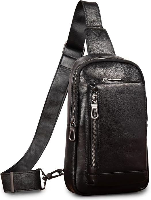 Genuine Leather Sling Bag for Men and Women Crossbody Shoulder Purse Chest Sling Backpack Carry on Casual Daypack