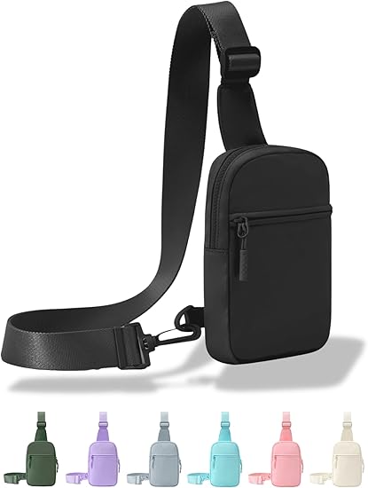 Plus Size ‰ÛÒ Small Sling Bag - Extra Long Strap 70" - Fanny Pack ‰ÛÒ Crossbody Bag w/Extended Strap - Stylish Chest Bag - Women Men Unisex Phone Holder w/Adjustable Strap (Black)