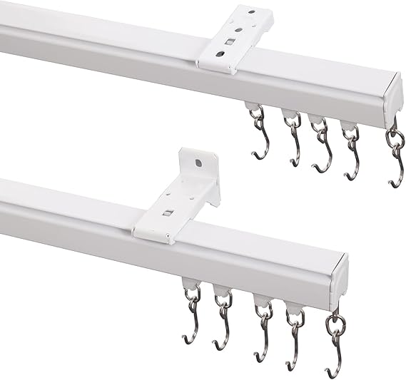 ChadMade Ceiling or Wall Mount Curtain Track Kit with Hooks, 3ft - 6ft Adjustable Length Drape Rail Set For Living Room Bedroom Drop Ceiling Shower, Work with Grommet and Pinch Pleated Curtain