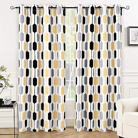 DriftAway Riley Geo Room Darkening Blackout Thermal Insulated Grommet Lined Window Curtains Mid Century Geometric Pattern 2 Layers 2 Panels Each 52 Inch by 84 Inch Gold Black Gray