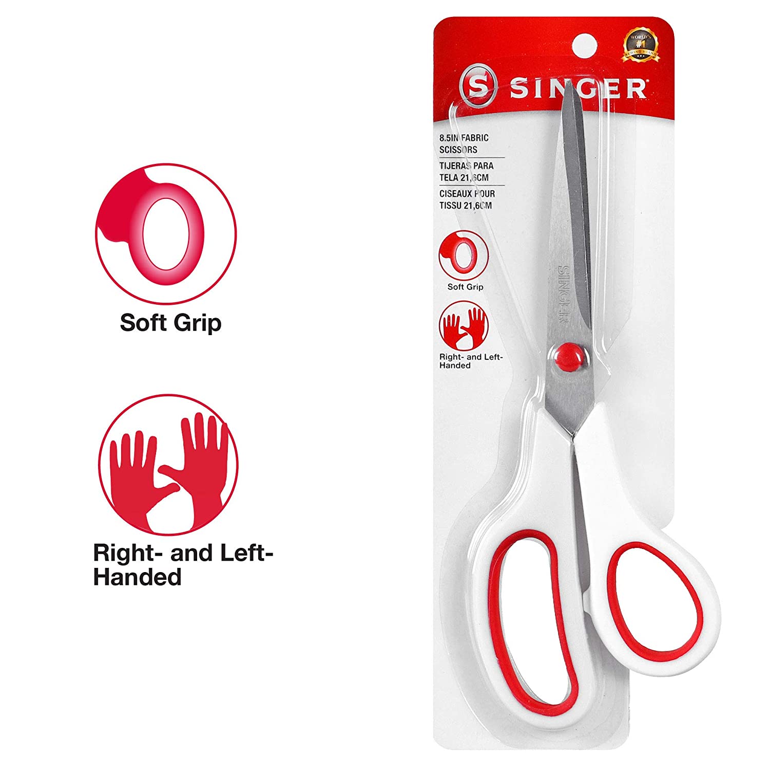 Use the SINGER 8.5-inch fabric scissors to easily cut through any fabrics, making them great for a variety of sewing projects. Strong stainless steel blades create smooth cut lines and rubberized handles ensure comfort for the user. These dressmaker scissors can be used with right and left hands, meaning one pair works for the whole family.