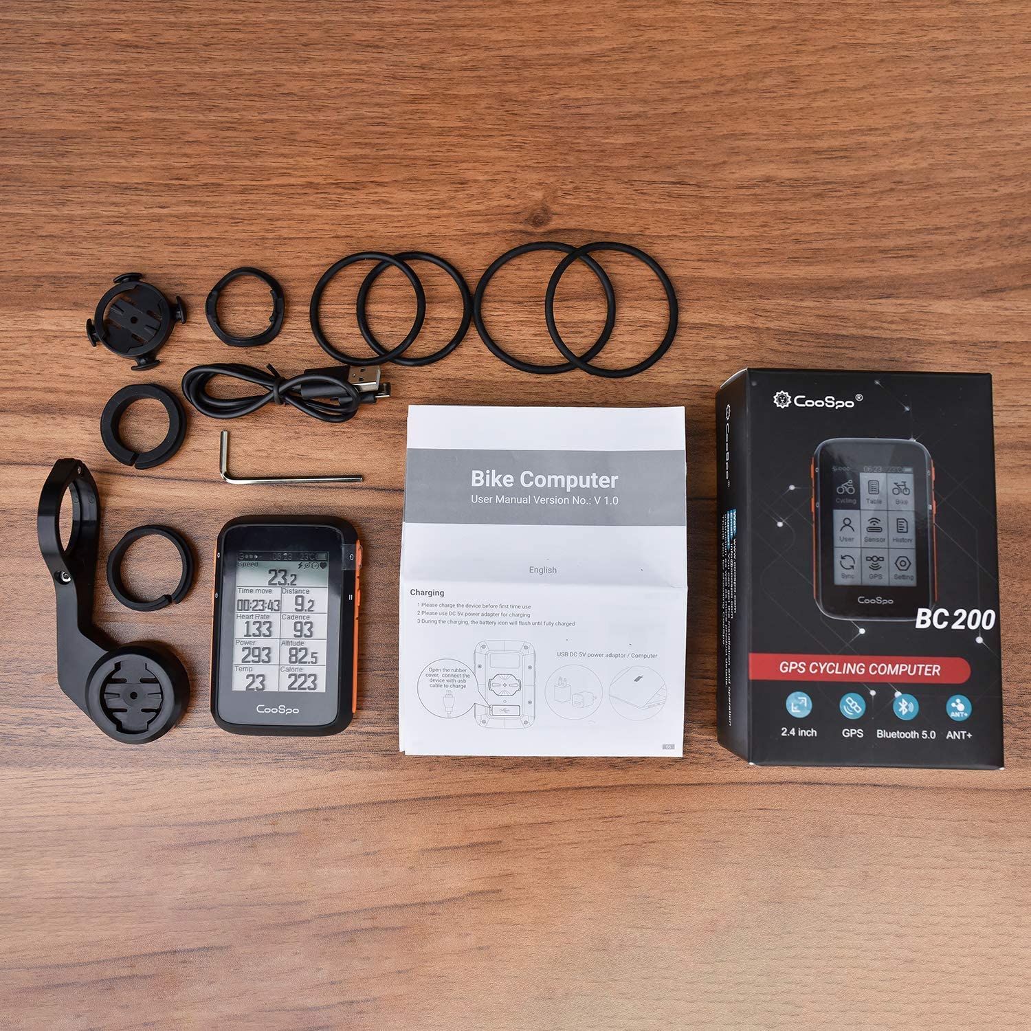 COOSPO Bike Computer Wireless GPS, Bike Speedometer with Auto Backlight, Bluetooth ANT Cycling GPS Computer,Bicycle Computer BC200 with Waterproof, Compatible with CooSporide app HR/Cad/Spd/Power Sensor