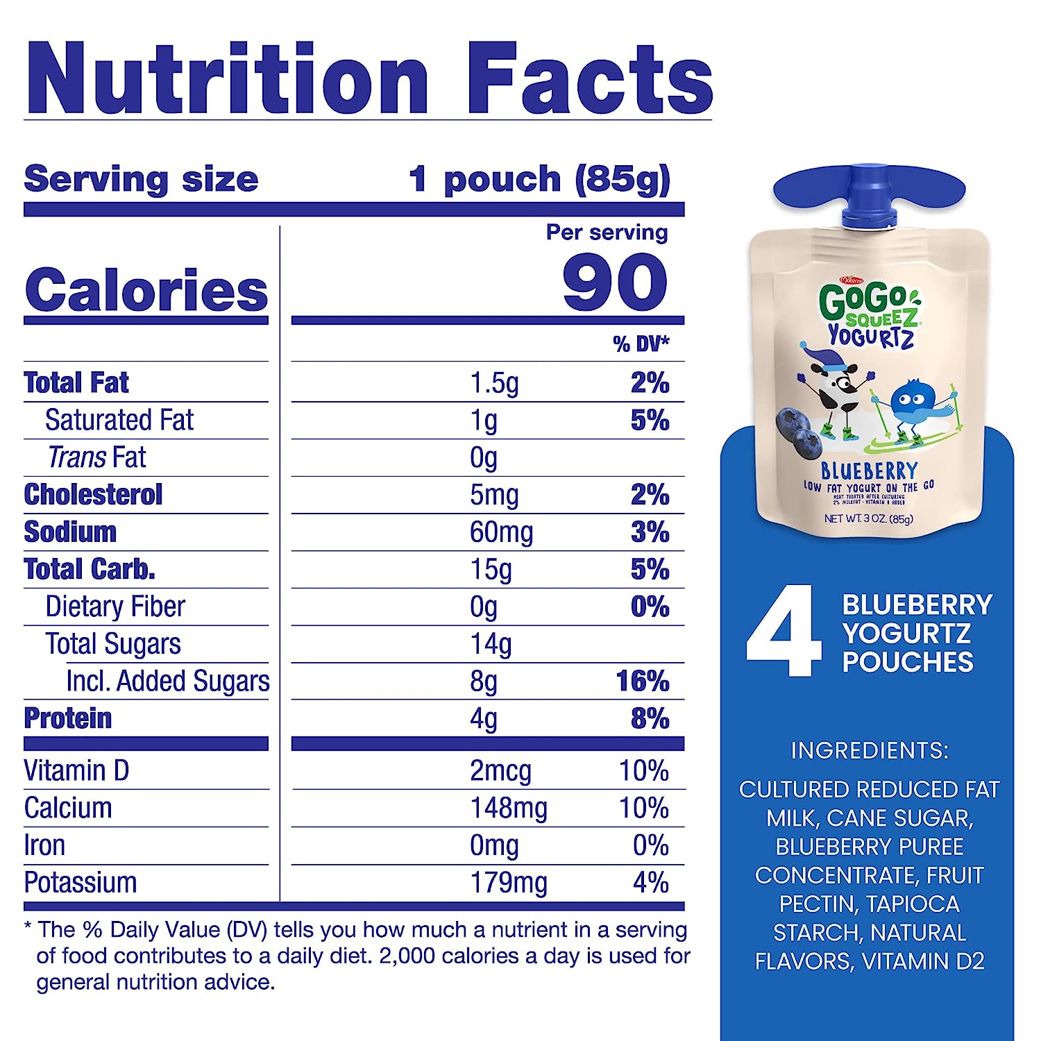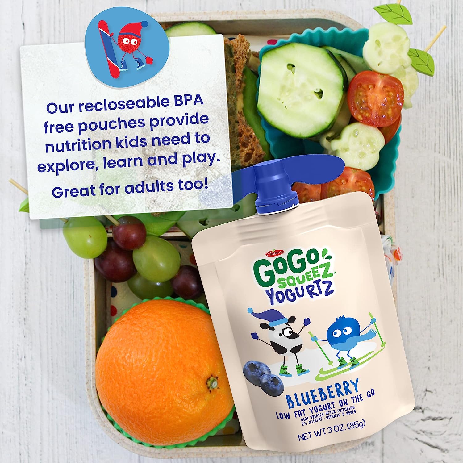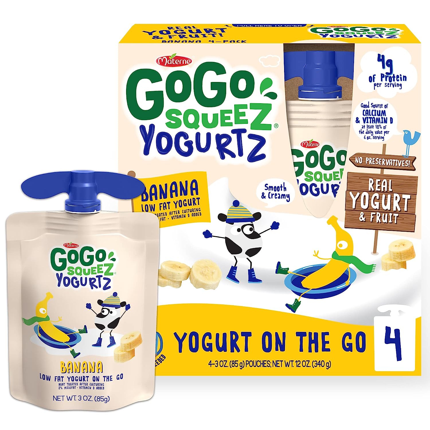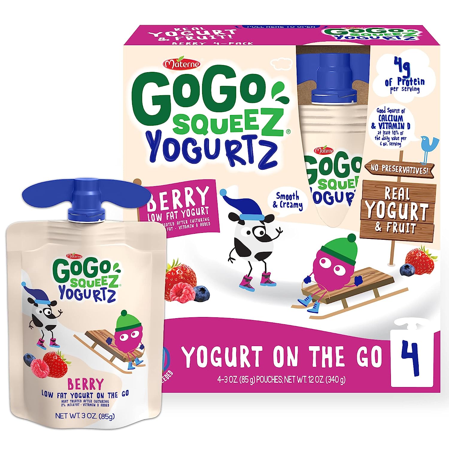 GoGo squeeZ yogurtZ are made with real low fat yogurt and strawberries, never anything artificial. Delivered in our iconic squeezable, portable snack pouches, GoGo squeeZ yogurtZ is safe to store at room temperature until opened. Our kitchen pantry friendly yogurt is a delicious snack with no preservatives and no fridge needed! Our yogurt pouches are kosher certified, nut free and gluten free snacks, are made with no artificial growth hormones like rBST* and are a good source of Calcium and Vitamin D**. At GoGo squeeZ, we’re more than just applesauce pouches; We craft our products with high-quality ingredients for squeeZing and enjoying wherever life takes you. Our products are free of common allergens, so you, your kids and your whole family can enjoy and share GoGo squeeZ snacks without worry. *Made with milk from cows not treated with hormones like rBST. No significant difference has been shown between milk from rBST-treated and non-rBST-treated cows. **At Least 10% Of The Daily Value Per 6 Oz