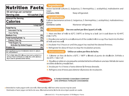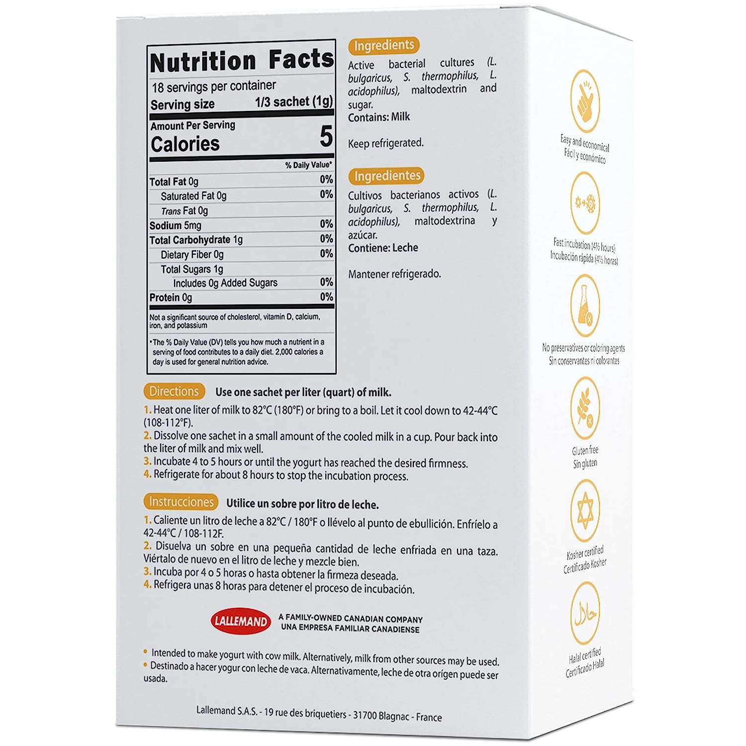 • HOW MUCH CAN YOU HAVE - Each 18 g box makes 6 liters of fresh yogurt.