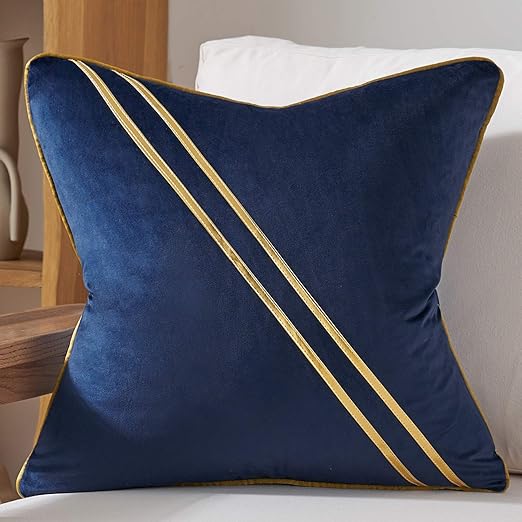 Avigers 20 x 20 Inch Navy Blue Gold Leather Striped Lines Velvet Cushion Case Luxury Modern Throw Pillow Cover Decorative Pillow for Couch Living Room Bedroom Car