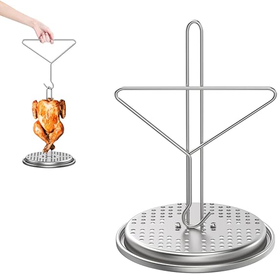 AJinTeby Turkey Fryer Accessories Vertical Chicken Roaster with Poultry Hanger, Turkey Deep Fryer Roaster Holder Base, Turkey Frying Rack with Chrome Finish Wire Handle Lifter Hook