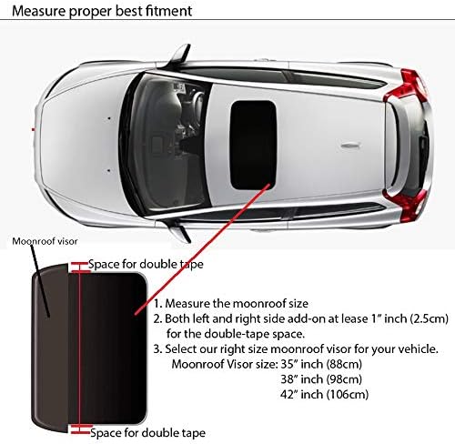 • Caution: According to some countries may have different roof size, please measure your "Moon/Sun Roof" and compare with the dimension of our visor. Also, leave at least 1 inch (25.4mm) space for each left and right side Moon/Sun roof tape-on area.