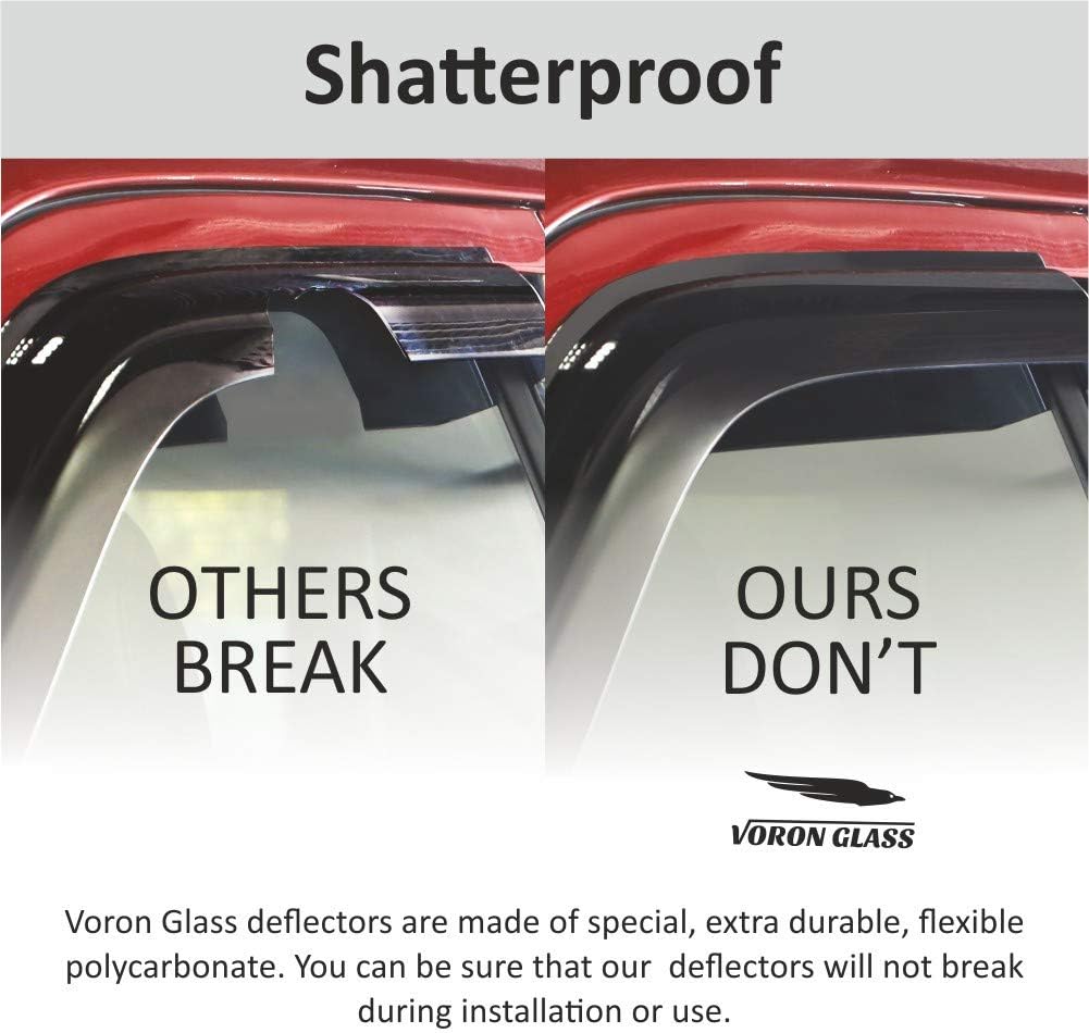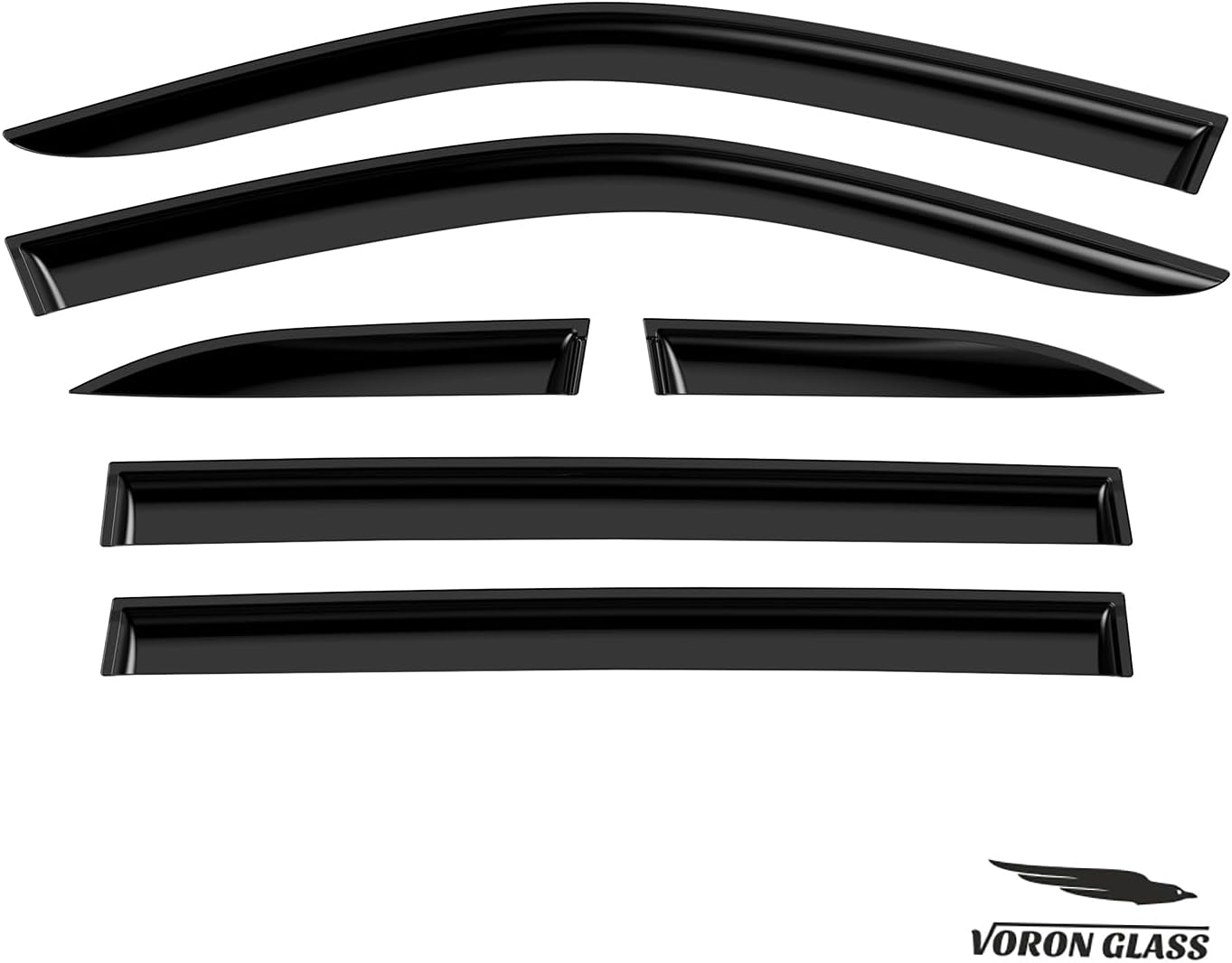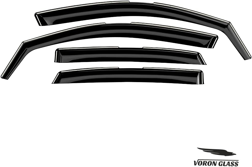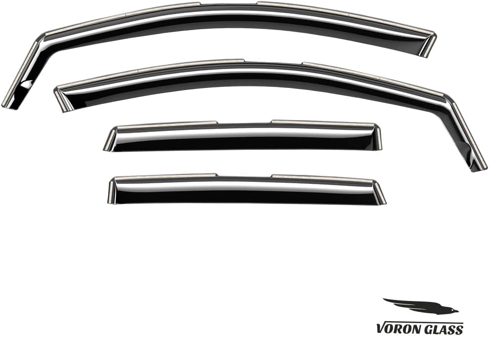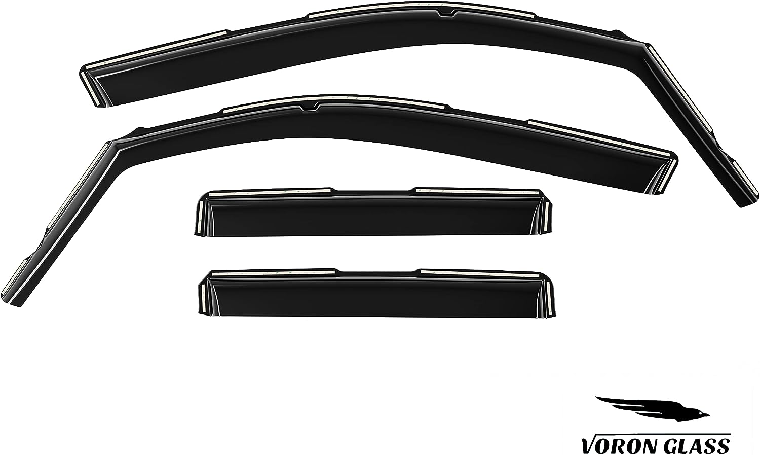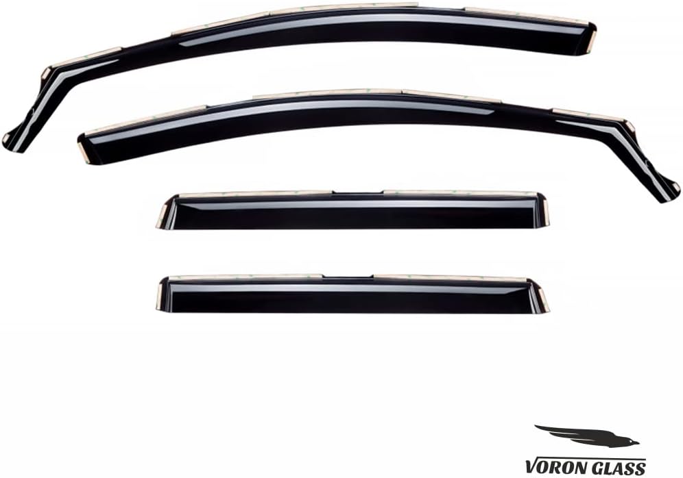 Block out sun rays, rain drops, and wind while you’re driving down the road with premium Voron Glass window deflectors. When the weather finally starts warming up or you’ve got to roll your window down when it’s raining, you don’t want the sun, wind, or rain to keep you from enjoying sitting behind the wheel of your vehicle. That’s why we created these high-quality Voron Glass Window Deflectors that install over your side windows seamlessly to help improve circulation in your vehicle when the window is down, block sun rays from pouring in, and even keep rain from dripping down onto the inside of your armrest. Better Coverage with an In-Channel Design. Strong, durable, and easy to install without any tools at all these window deflectors come in a wide range of sizes to match different vehicle models and body types. Better yet, they boast an in-channel design that impact your window going up or down while still delivering year-round coverage for all types of weather. Product Details: - Premium Voron Glass Window Deflectors (4 Pc. Set); - Helps Block Rain, Wind, and Sun Rays; - Shatter-Resistant Polycarbonate Craftsmanship; - Streamlined Placement for Optimized Window Support; - Quick and Easy Installation; - Available for Multiple Vehicle Models and Body Styles; - Trusted Quality Assurance. Get premium Voron Glass window deflectors for your vehicle today and start enjoying a more comfortable ride all year-round. Get them now by clicking Add to Cart above today.