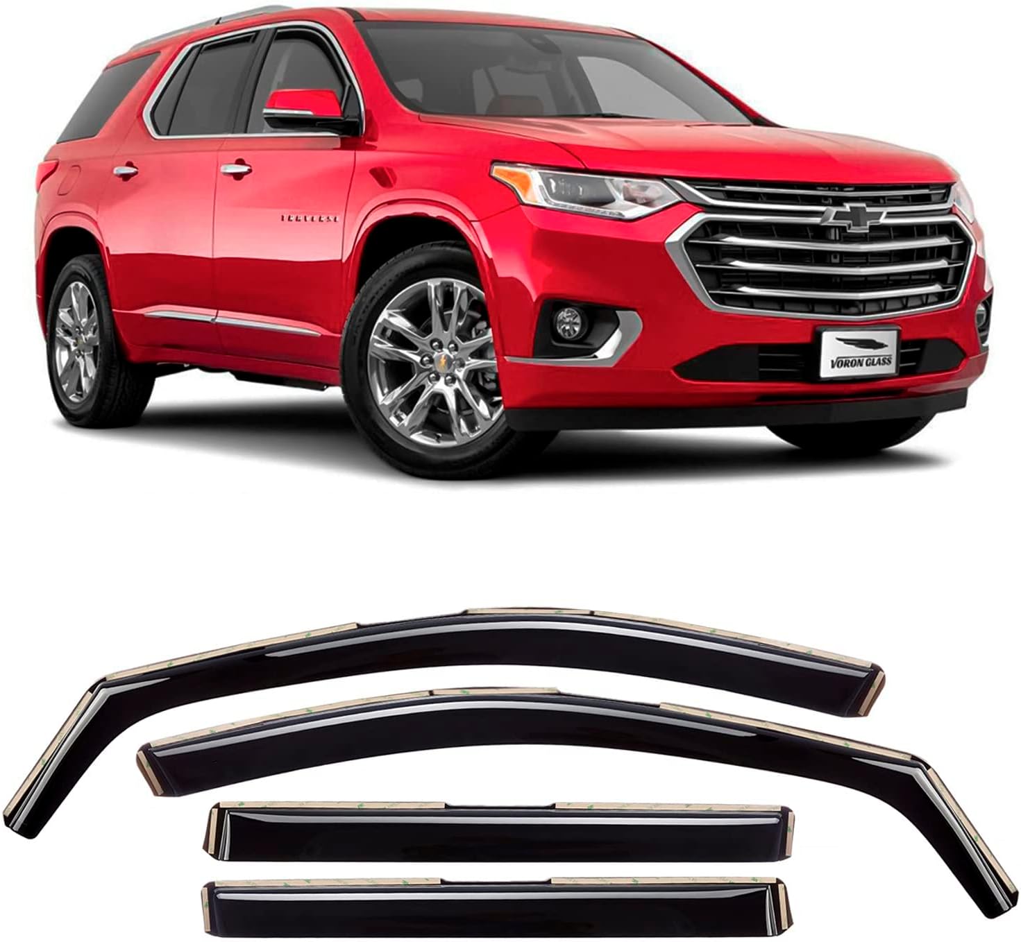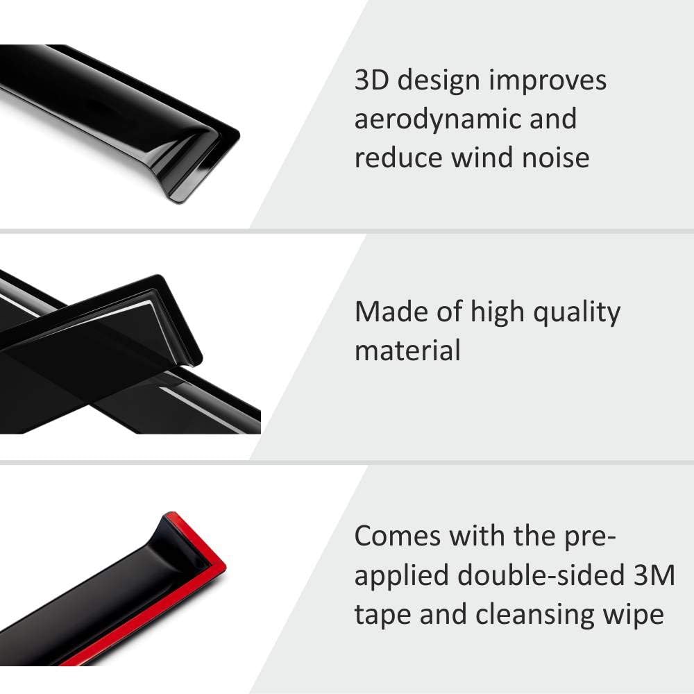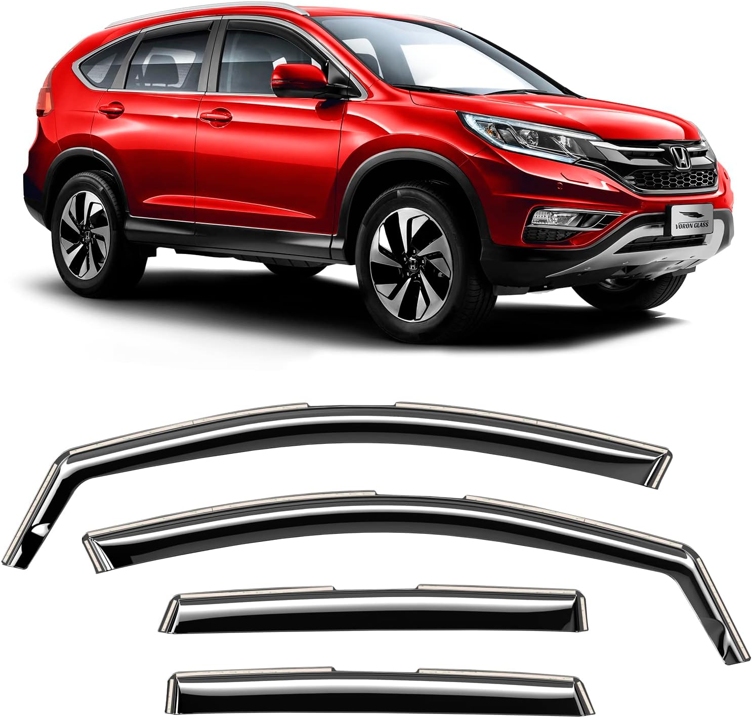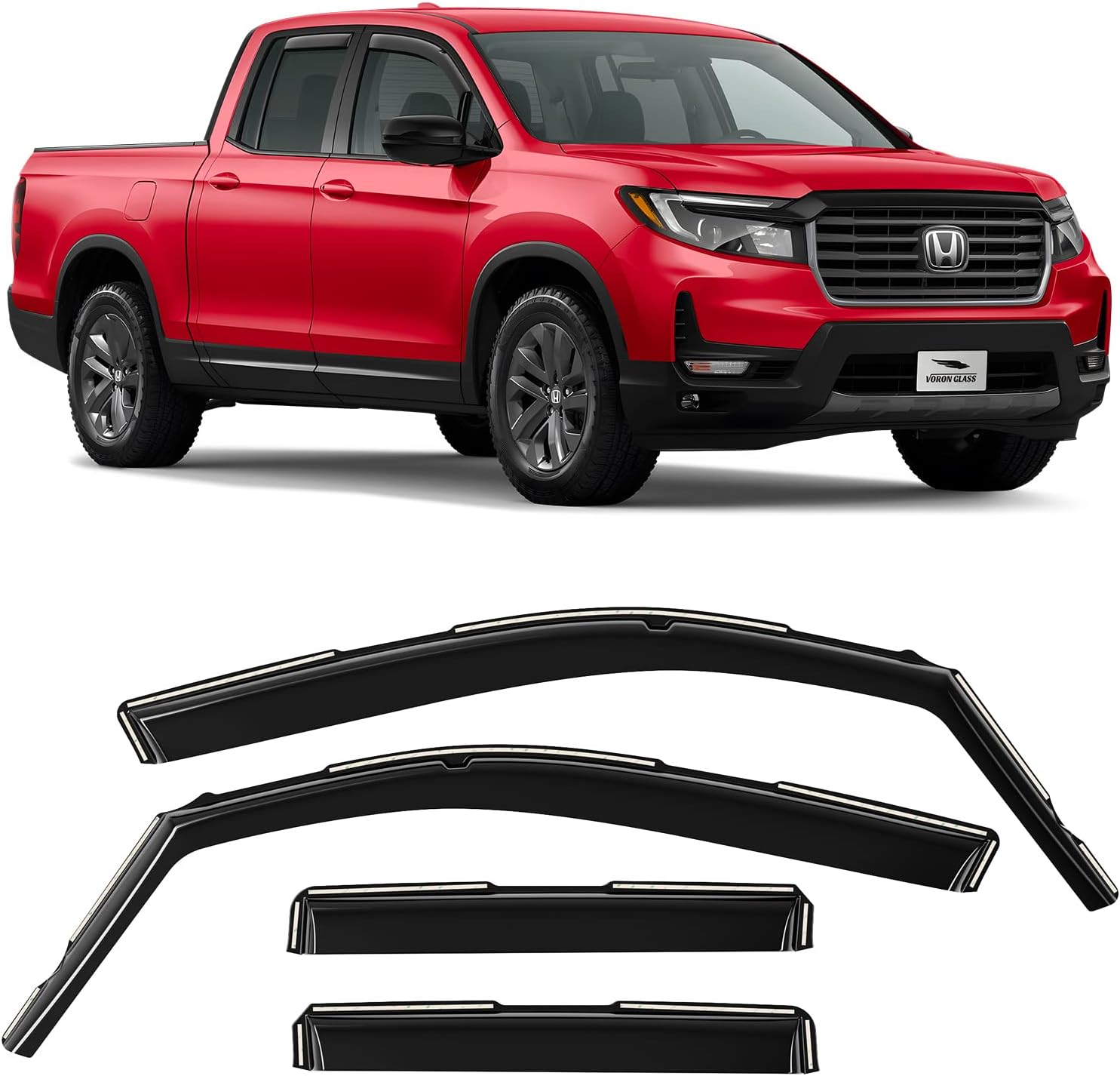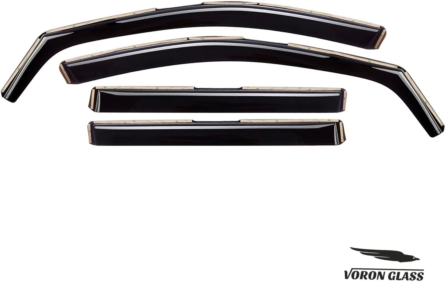 Block out sun rays, rain drops, and wind while you’re driving down the road with premium Voron Glass window deflectors. When the weather finally starts warming up or you’ve got to roll your window down when it’s raining, you don’t want the sun, wind, or rain to keep you from enjoying sitting behind the wheel of your vehicle. That’s why we created these high-quality Voron Glass Window Deflectors that install over your side windows seamlessly to help improve circulation in your vehicle when the window is down, block sun rays from pouring in, and even keep rain from dripping down onto the inside of your armrest. Better Coverage with an In-Channel Design. Strong, durable, and easy to install without any tools at all these window deflectors come in a wide range of sizes to match different vehicle models and body types. Better yet, they boast an in-channel design that impact your window going up or down while still delivering year-round coverage for all types of weather. Product Details: - Premium Voron Glass Window Deflectors (4 Pc. Set); - Helps Block Rain, Wind, and Sun Rays; - Shatter-Resistant Polycarbonate Craftsmanship; - Streamlined Placement for Optimized Window Support; - Quick and Easy Installation; - Available for Multiple Vehicle Models and Body Styles; - Trusted Quality Assurance. Get premium Voron Glass window deflectors for your vehicle today and start enjoying a more comfortable ride all year-round. Get them now by clicking Add to Cart above today.