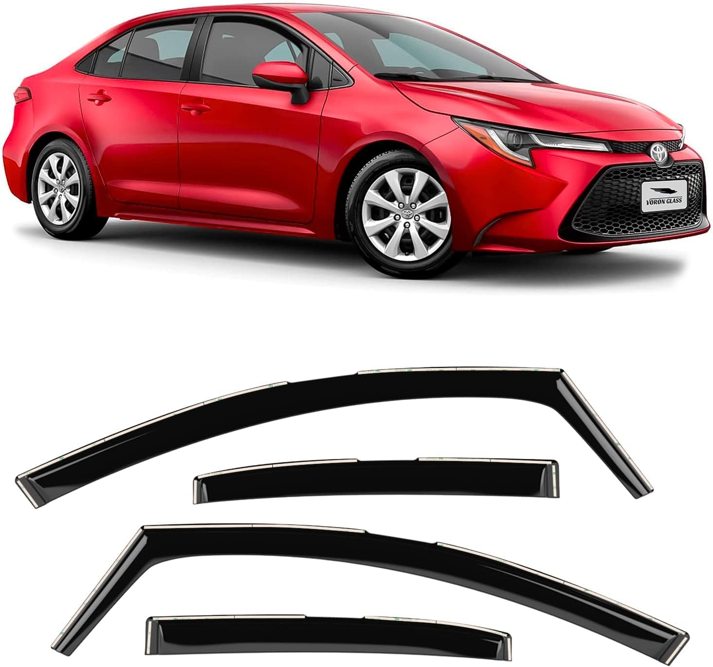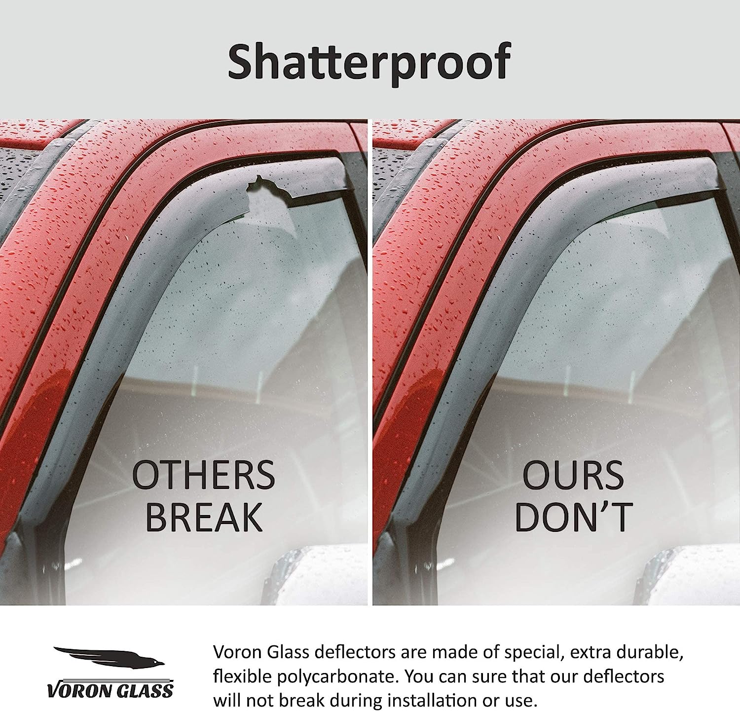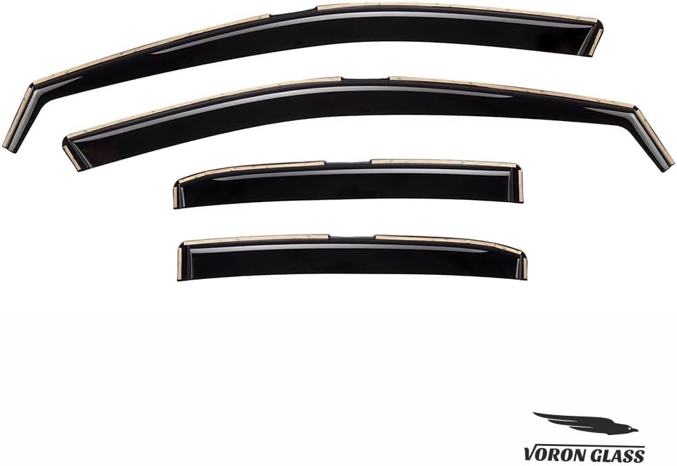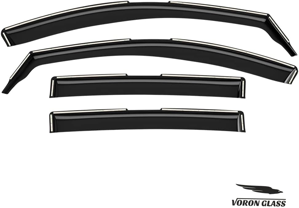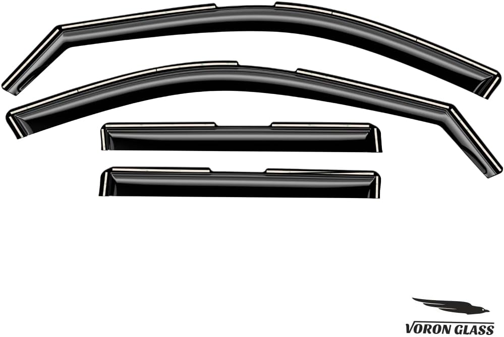 Block out sun rays, rain drops, and wind while you’re driving down the road with premium Voron Glass window deflectors. When the weather finally starts warming up or you’ve got to roll your window down when it’s raining, you don’t want the sun, wind, or rain to keep you from enjoying sitting behind the wheel of your vehicle. That’s why we created these high-quality Voron Glass Window Deflectors that install over your side windows seamlessly to help improve circulation in your vehicle when the window is down, block sun rays from pouring in, and even keep rain from dripping down onto the inside of your armrest. Better Coverage with an In-Channel Design. Strong, durable, and easy to install without any tools at all these window deflectors come in a wide range of sizes to match different vehicle models and body types. Better yet, they boast an in-channel design that impact your window going up or down while still delivering year-round coverage for all types of weather. Product Details: -Premium Voron Glass Window Deflectors (4 Pc. Set); -Helps Block Rain, Wind, and Sun Rays; -Shatter-Resistant Polycarbonate Craftsmanship; -Streamlined Placement for Optimized Window Support; -Quick and Easy Installation; -Available for Multiple Vehicle Models and Body Styles; -Trusted Quality Assurance. Get premium Voron Glass window deflectors for your vehicle today and start enjoying a more comfortable ride all year-round. Get them now by clicking Add to Cart above today.