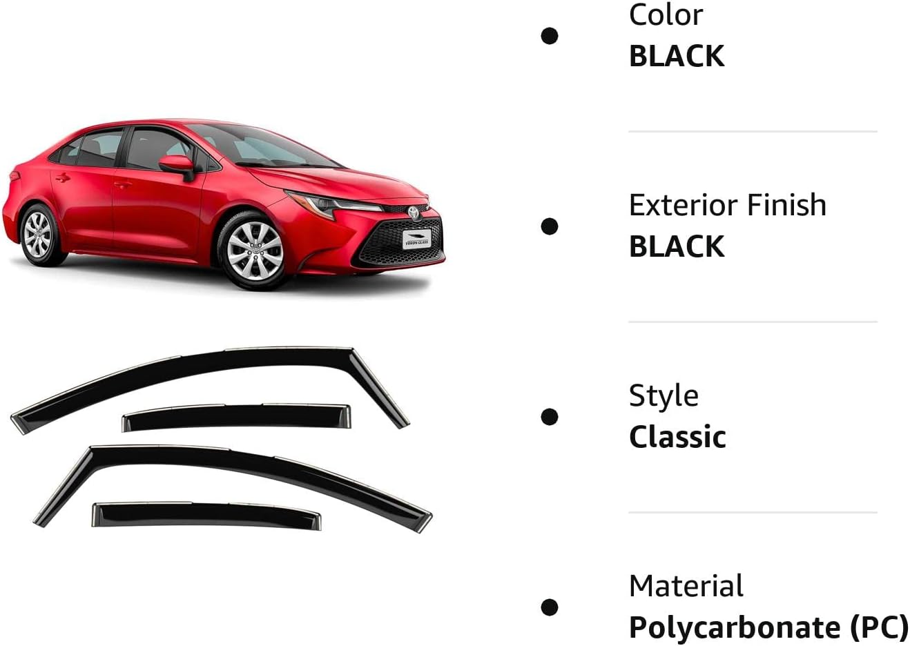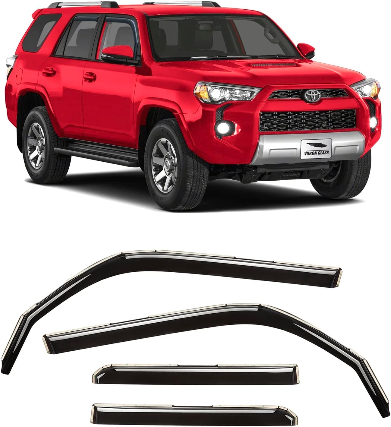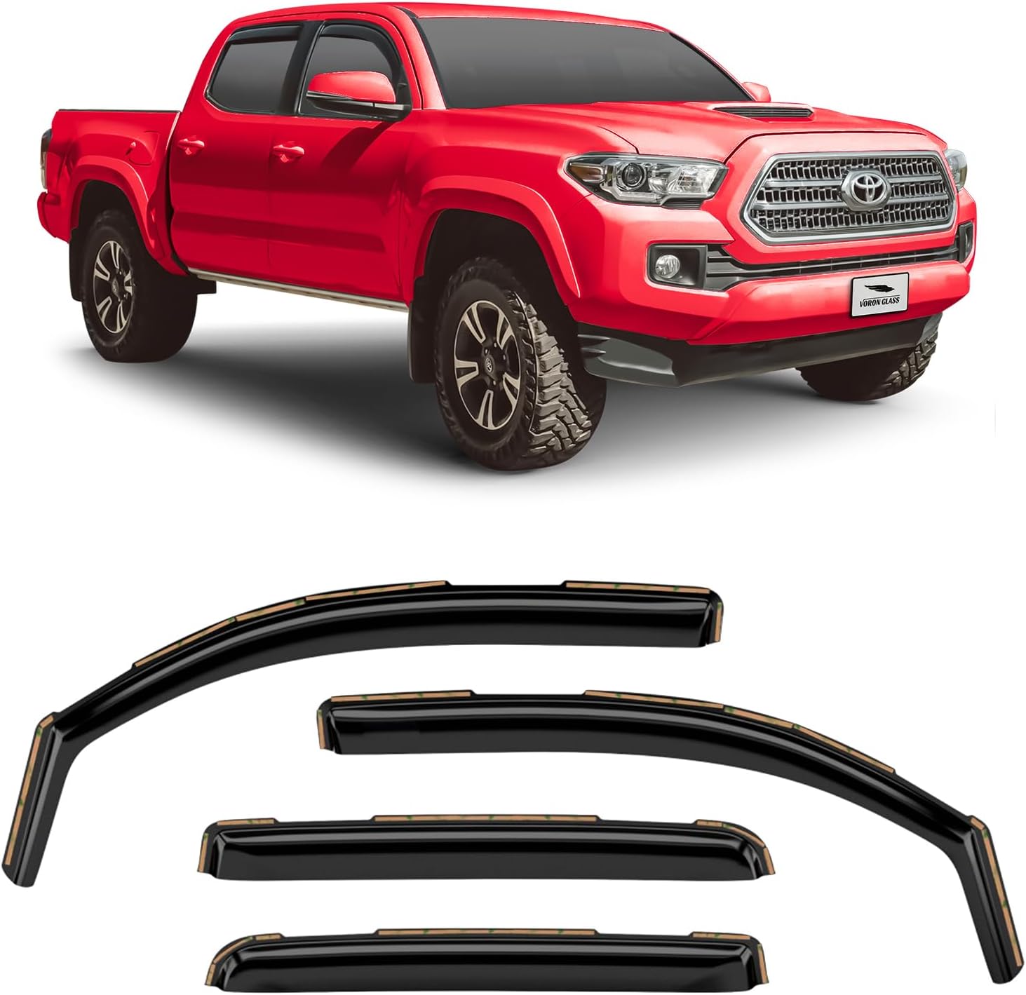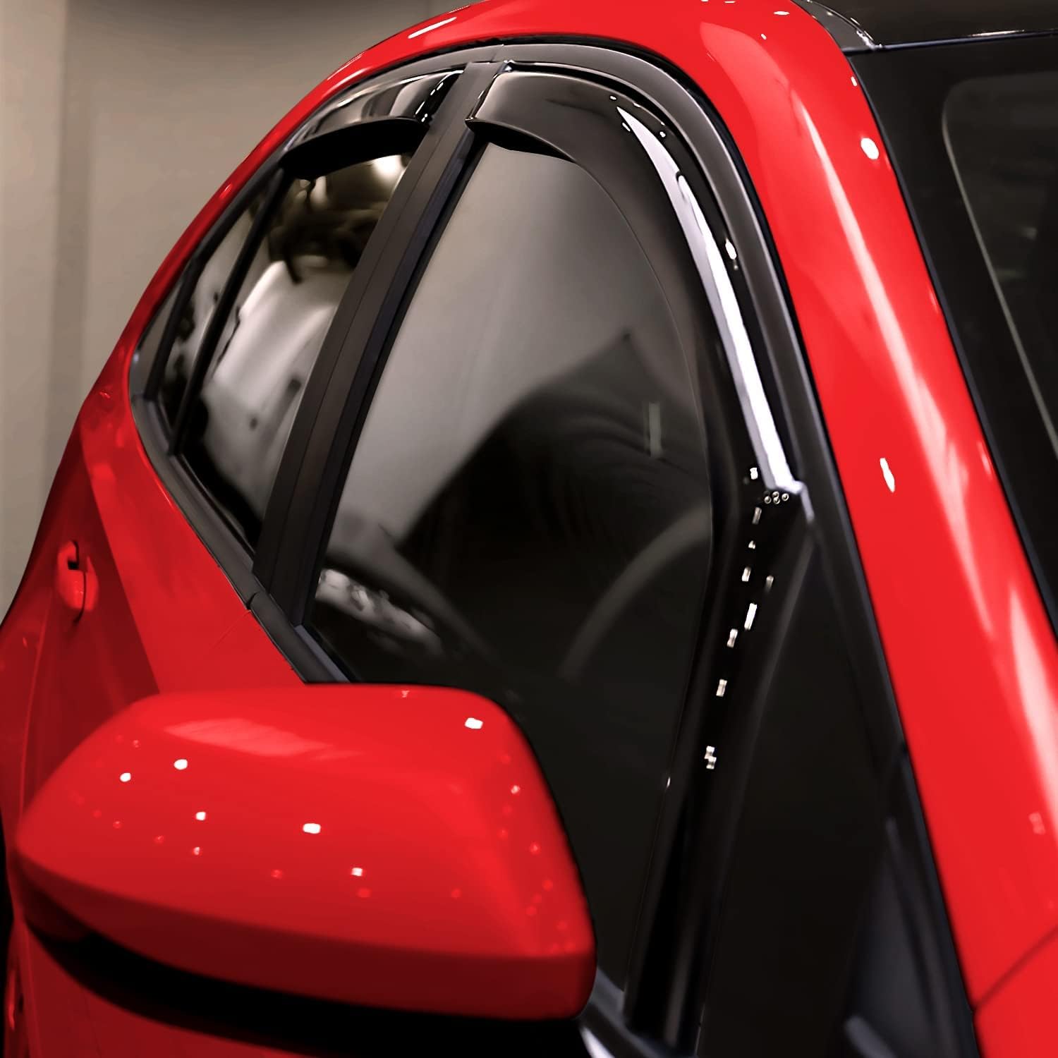 Block out sun rays, rain drops, and wind while you’re driving down the road with premium Voron Glass window deflectors. When the weather finally starts warming up or you’ve got to roll your window down when it’s raining, you don’t want the sun, wind, or rain to keep you from enjoying sitting behind the wheel of your vehicle. That’s why we created these high-quality Voron Glass Window Deflectors that install over your side windows seamlessly to help improve circulation in your vehicle when the window is down, block sun rays from pouring in, and even keep rain from dripping down onto the inside of your armrest. Better Coverage with an In-Channel Design. Strong, durable, and easy to install without any tools at all these window deflectors come in a wide range of sizes to match different vehicle models and body types. Better yet, they boast an in-channel design that impact your window going up or down while still delivering year-round coverage for all types of weather. Product Details: -Premium Voron Glass Window Deflectors (4 Pc. Set); -Helps Block Rain, Wind, and Sun Rays; -Shatter-Resistant Polycarbonate Craftsmanship; -Streamlined Placement for Optimized Window Support; -Quick and Easy Installation; -Available for Multiple Vehicle Models and Body Styles; -Trusted Quality Assurance. Get premium Voron Glass window deflectors for your vehicle today and start enjoying a more comfortable ride all year-round. Get them now by clicking Add to Cart above today.
