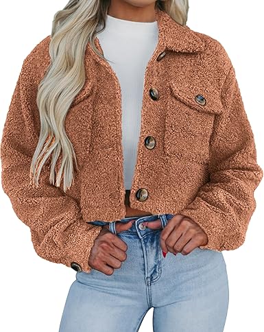 PRETTYGARDEN Womens Fall Clothes Sherpa Jacket Fuzzy Lapel Button Down Cropped Coat