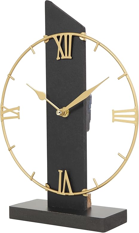 Deco 79 Wooden Abstract Decorative Clock Mantel Clock with Angled Post Backing, Tabletop Clock 9" x 3" x 12", Black