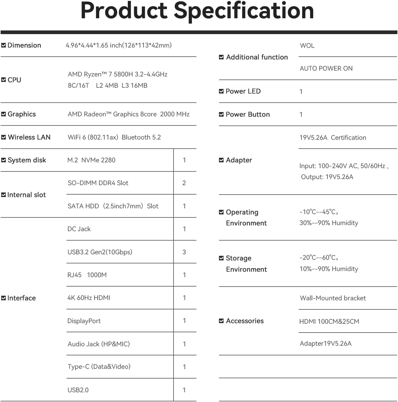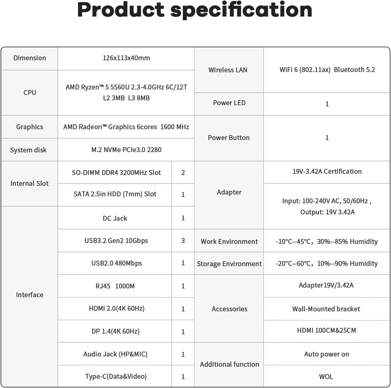 • ◆Freely Expand Capacity - Mini computer loaded with 16GB SO-DIMM DDR4 RAM(2666MHz). Dual channel DDR4 upgradeable to max 64GB(2 x 32GB, up to 3200MHz). And 500GB M.2 SSD NVMe 2280 (upgradeable to max 2TB), reading speed up to 3000mb/s. Supporting up to 2TB external 2.5-inch 7mm HDD expansion (extended tutorial in the box). Reduce latency, powerful loading and processing capabilities for a smoother experience.