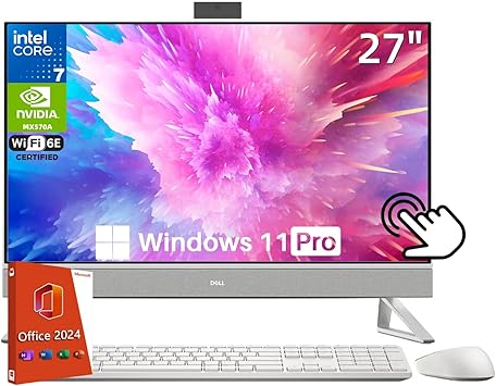 Dell Inspiron 7730 27" Touchscreen All in One Desktop Computer, Intel 10-Core 7 150U, NVIDIA GeForce MX570A, 64 GB RAM, 4 TB SSD, Wi-Fi 6E, Win 11 Pro, Office 2024 Pro Lifetime, Wireless KB & Mouse