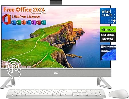 Dell Inspiron 7730 All-in-one Touchscreen Desktop, 27 Inch FHD Touch Screen, Core 7 150U CPU, GeForce MX570A, 64 GB RAM, 4 TB SSD, Wi-Fi 6E, Win11 Pro & Office Pro 2024 Lifetime License