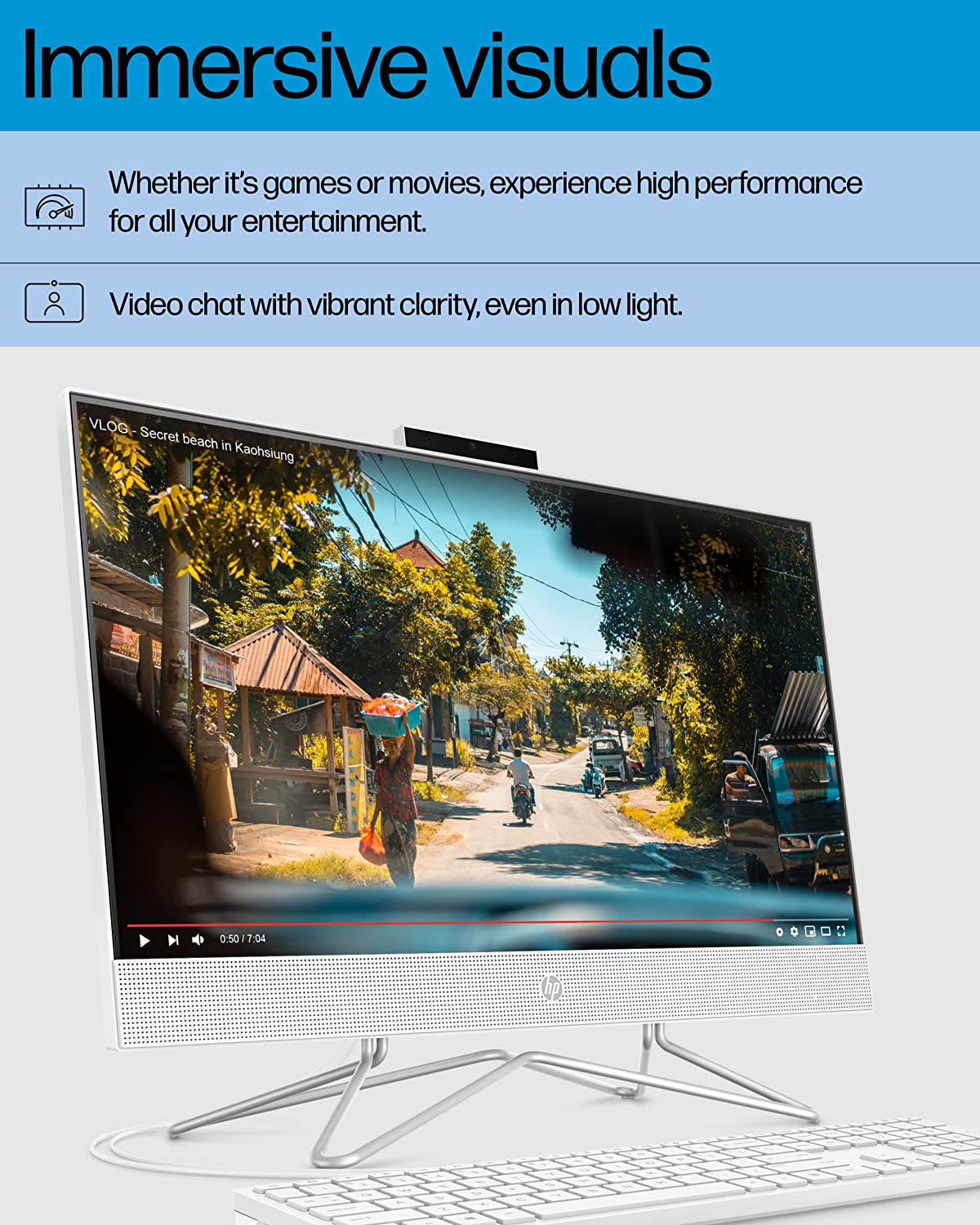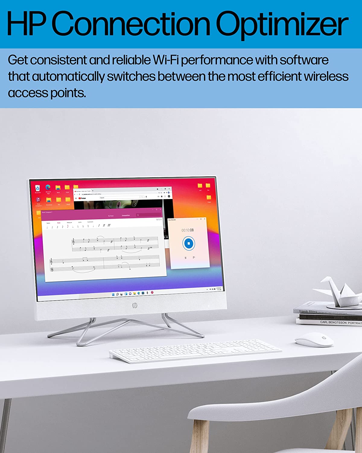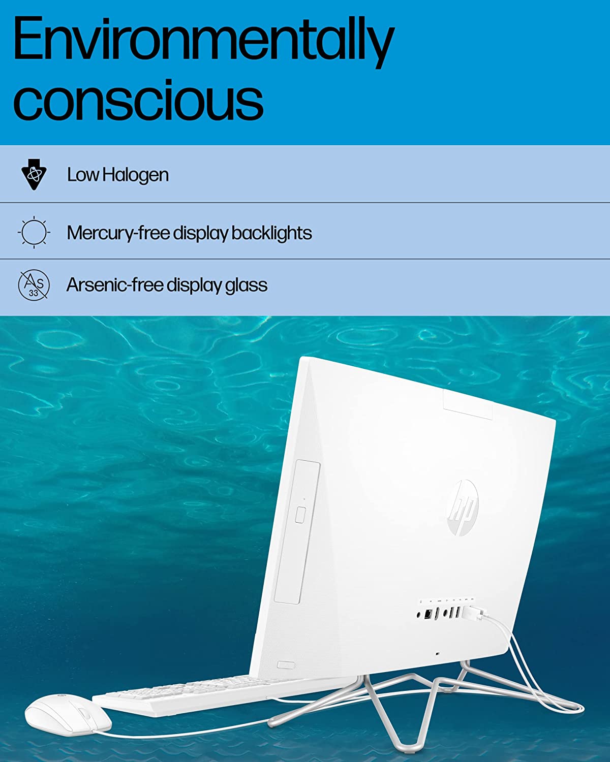 The HP All-in-One PC elevates your work, entertainment, and creations with its re-imagined Windows 11 OS (1) and super-fast AMD Ryzen 5 5625U Processor (2). Easily navigate through your work—right from the computer screen thanks to this 23.8-inch FHD display’s touchscreen (3) capabilities. With impressive AMD Radeon Graphics, your work, projects, and designs appear crisp. This HP All-in-One computer also lets you work more productively while keeping multiple tabs open without slowdown thanks to 12 GB DDR4-3200 MHz RAM (1 x 4 GB, 1 x 8 GB). Plus, 512 GB Intel PCIe NVMe SSD storage gives you tons of space for all your creations, documents, and projects. Backed by over 230 tests, your HP All-in-One desktop computer is built to last and provides durability you can trust for hard-core computing (4). Plus, this HP PC keeps your internet connection rock-solid using a Realtek Wi-Fi and Bluetooth 5 combo. With HP Wide Vision 1080p FHD IR privacy camera, each conversation feels up close and personal, while the included dual-array microphones allow you to mute and unmute when needed. What’s more, your privacy stays intact when the video chat ends thanks to the included privacy shutter. Create with the environment in mind; your HP All-in-One PC is sustainable, efficient, EPEAT registered, and ENERGY STAR certified.