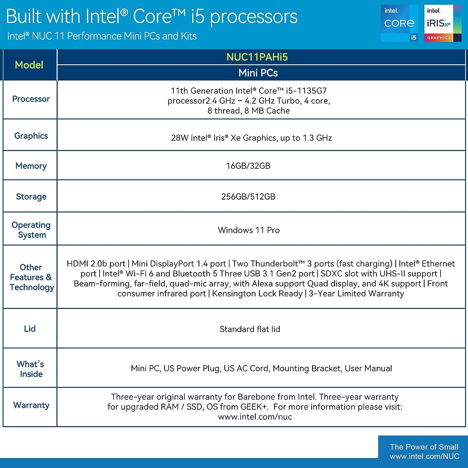 Intel NUC 11 Panther Canyon Mini PC, 11th Intel Core i5-1135G7, 16GB RAM & 512GB SSD, Windows 11 Pro, Support 4K Quad Display, WiFi 6, VESA/Home/Business Mini Desktop Computer(NUC11PAHi5)