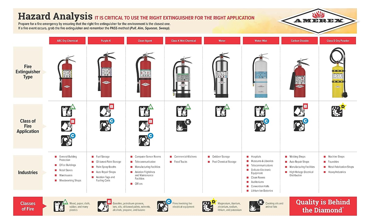 Amerex ABC Extinguishers effectively fight Class A, B, and C fires and are a popular choice for offices, warehouses, homes, and more. Steel cylinders and all-metal valves make these rugged, dependable extinguishers. They are easy to maintain and service, making them an economical choice too.
