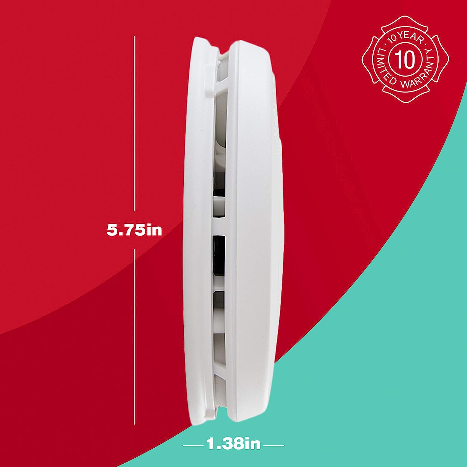 Featuring a low profile, contemporary design, the First Alert PRC710 Slim Photoelectric Smoke and Carbon Monoxide Alarm with 10 Year Battery provides the same protection as a standard smoke alarm while taking up only a fraction of the space. This slim, battery operated smoke detector requires no hardwiring for installation, making it an ideal solution for those who want to enhance fire safety without hiring an electrician. It features a built in 10 year lithium ion battery that provides continuous power for up to a decade. Equipped with an ultra reliable photoelectric sensor, the smoke alarm detects smoke from slow burning, smoldering fires while keeping false alarms to a minimum. A patented smoke entry system further enhances the detector's reliability by providing a direct path to the smoke sensor. The unit also features an advanced electrochemical sensor that detects carbon monoxide leaks from multiple sources such as faulty fuel burning appliances and blocked chimneys. The simple twist lock mounting system installs easily onto a wall or ceiling, while the tamper resistant locks help prevent removal of the battery to keep the alarm secure. Half as thick as a standard alarm, the smoke detector has a sleek, slim design that blends in seamlessly with most decor. A loud 85 decibel alarm sounds when smoke is detected, and a convenient test/silence button lets you easily check alarm function and mute false alarms. TROUBLESHOOTING STEPS: Activating the battery. Mount alarm to mounting bracket to activate. Once unit is activated, it cannot be turned off. NOTE: After you activate the battery, the power indicator light may flash. (If the unit alarms, the light will blink rapidly, and the horn will repeatedly sound 3 beeps, pause, 3 beeps.) Once the Smoke Alarm is on the bracket, you can rotate the Alarm to adjust the alignment. Clean the Smoke/CO Alarm at least once a month; gently vacuum the outside of the Smoke/CO Alarm using your household vacuum’s soft brush attachment. A can of clean compressed air may also be used. Follow manufacturer instructions for use. Test the Smoke/CO Alarm. Never use water, cleaners or solvents since they may damage the unit. If the Smoke/CO Alarm becomes contaminated by excessive dirt, dust and/or grime, and cannot be cleaned to avoid unwanted alarms, replace the unit immediately. DO NOT LOCATE THIS SMOKE/CO ALARM: In garages, furnace rooms, crawl spaces and unfinished attics. Avoid extremely dusty, dirty or greasy areas. Where combustion particles are produced. Combustion particles form when something burns. Areas to avoid include poorly ventilated kitchens, garages, and furnace rooms. Keep units at least 20 feet (6 meters) from the sources of combustion particles (stove, furnace, water heater, space heater) if possible. In areas where a 20-foot (6 meter) distance is not possible – in modular, mobile, or smaller homes, for example – it is recommended the Smoke Alarm be placed as fa from these fuel-burning sources as possible. The placement recommendations are intended to keep these Alarms at a reasonable distance from a fuel-burning source, and thus reduce “unwanted” alarms. Unwanted alarms can occur if a Smoke Alarm is placed directly next to a fuel-burning source. Ventilate these areas as much as possible. Within 5 feet (1.5 meters) of any cooking appliance. In air streams near kitchens. Air currents can draw cooking smoke into the smoke sensor and cause unwanted alarms. In extremely humid areas. This Alarm should be at least 10 feet (3 meters) from a shower, sauna, humidifier, vaporizer, dishwasher, laundry room, utility room, or other source of high humidity. In direct sunlight. In turbulent air, like near ceiling fans or open windows. Blowing air may prevent CO or smoke from reaching the sensors. In areas where temperature is colder than 40˚ F (4.4˚ C) or hotter than 100˚F (37.8˚ C). These areas include non-airconditioned crawl spaces, unfinished attics, uninsulated or poorly insulated ceilings, porches, and garages. In insect infested areas. Insects can clog the openings to the sensing chamber. Less than 12 inches (305 mm) away from fluorescent lights. Electrical “noise” can interfere with the sensor. In “dead air” spaces. See “Avoiding Dead Air Spaces”.