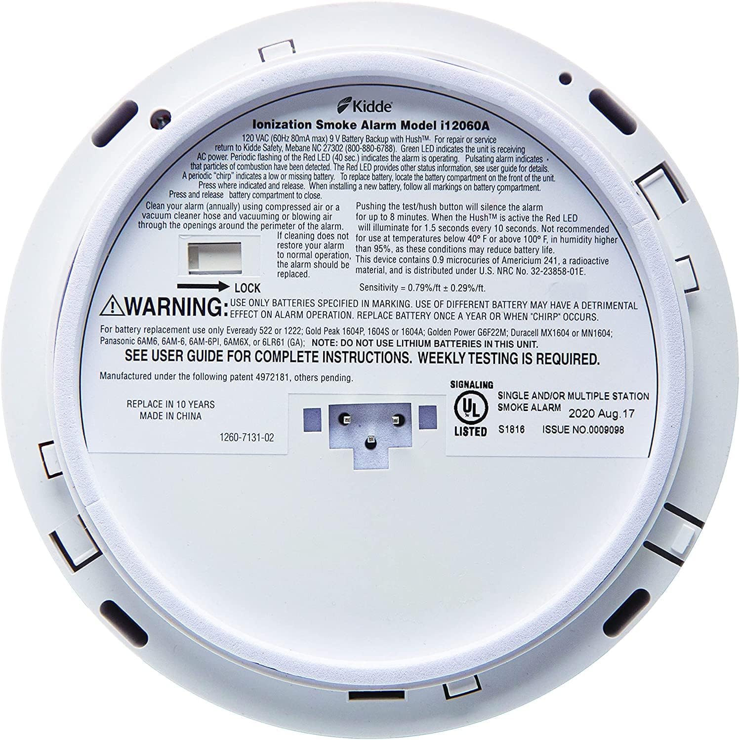 Kidde Hardwired Smoke Detector model i12060A is also available in a two-pack, four-pack, and six-piece bulk pack for contractors and property owners who need an alarm for every room. UL Certified with a 10-year limited warranty. Meets requirements of UL217, NFPA72, The State of California Fire Marshal, NFPA 101, FHA, & HUD.