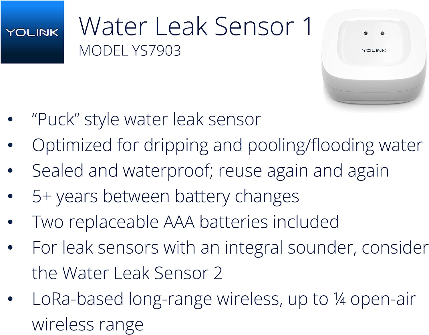 • SET IT & FORGET IT! Installs in seconds! The YoLink wireless Water Sensor could not be easier to install; just place near or under the equipment you wish to monitor. Suggested uses are near or under, toilets, water heaters, laundry machines, dishwashers, sinks, fish tanks, in or near sump pumps, and by any other location subject to water leaks and flooding.