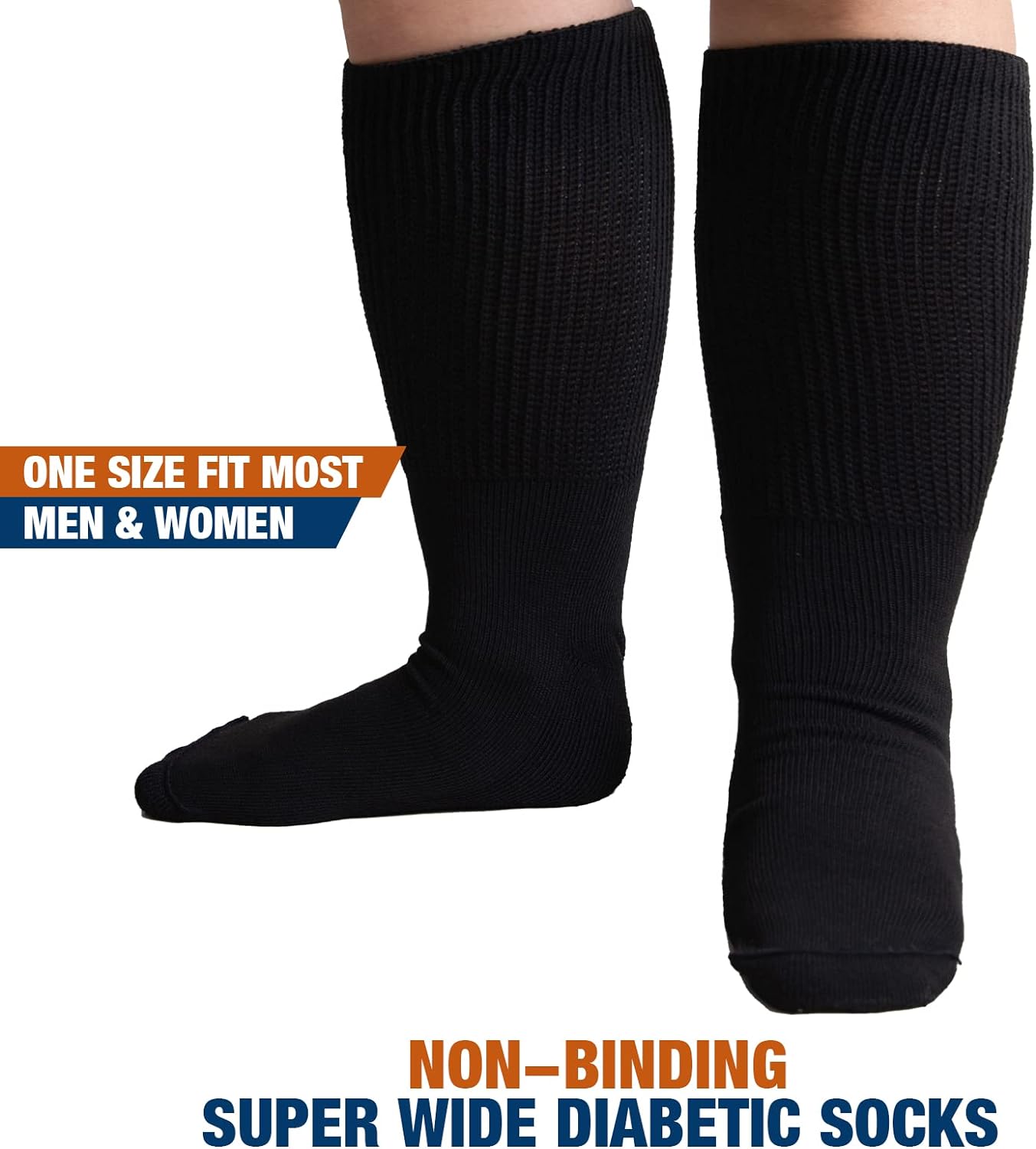 • Diabetic Super Wide Socks: Get extra-comfy feet with our long wide diabetic socks and hospital socks with grips. these Super wide diabetic socks must be your best choices.Order these medical socks for yourself or as a thoughtful present for your friends who need these.