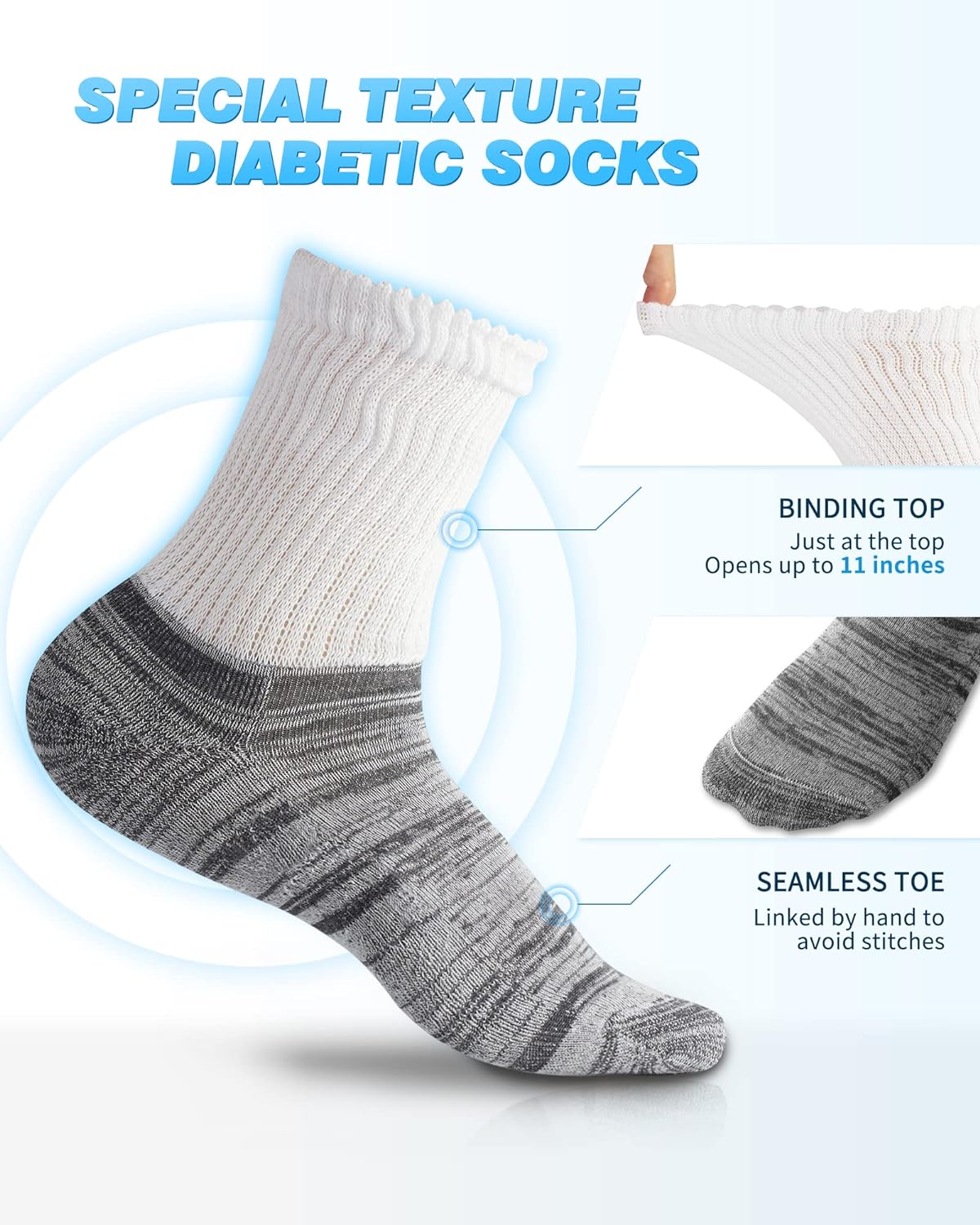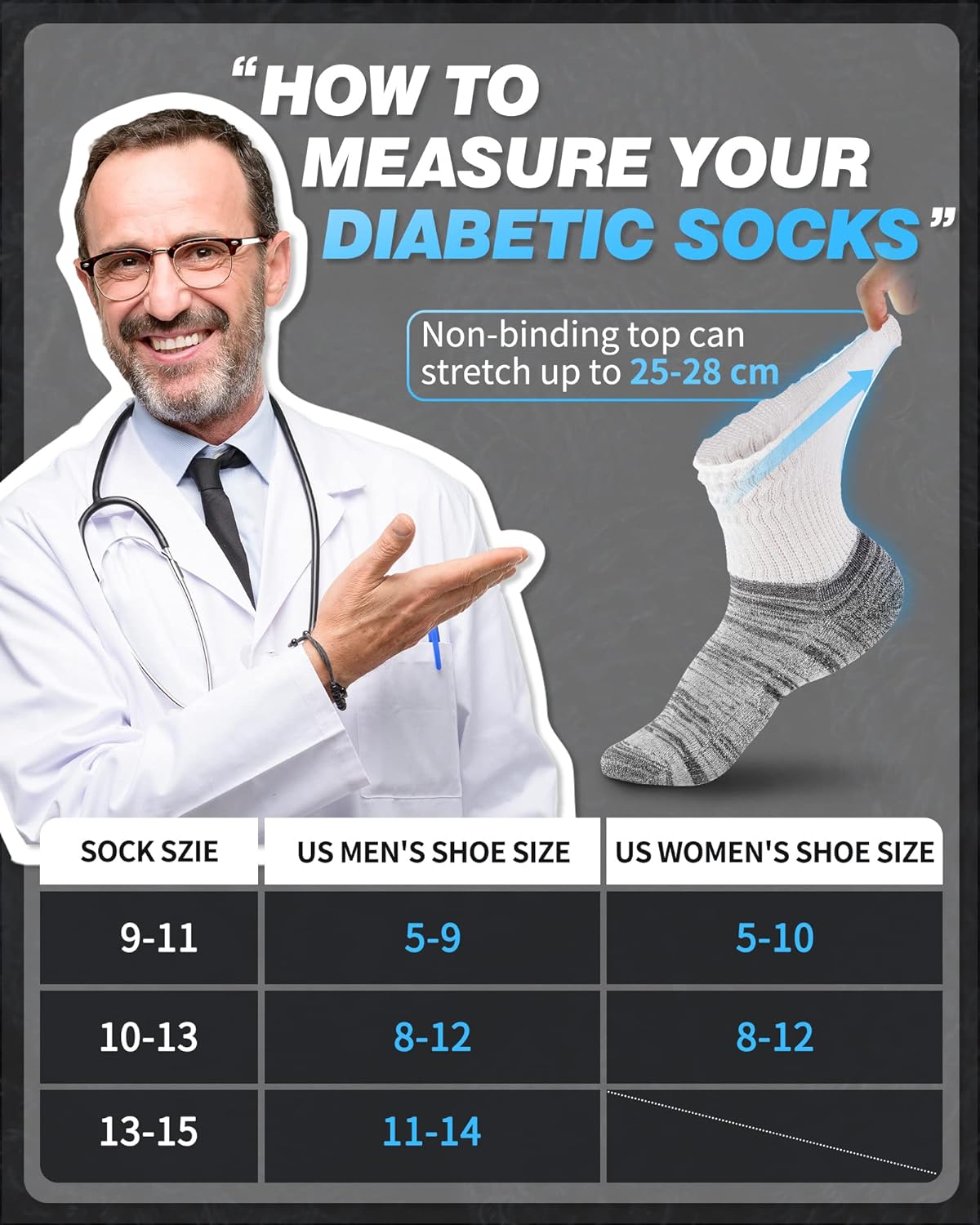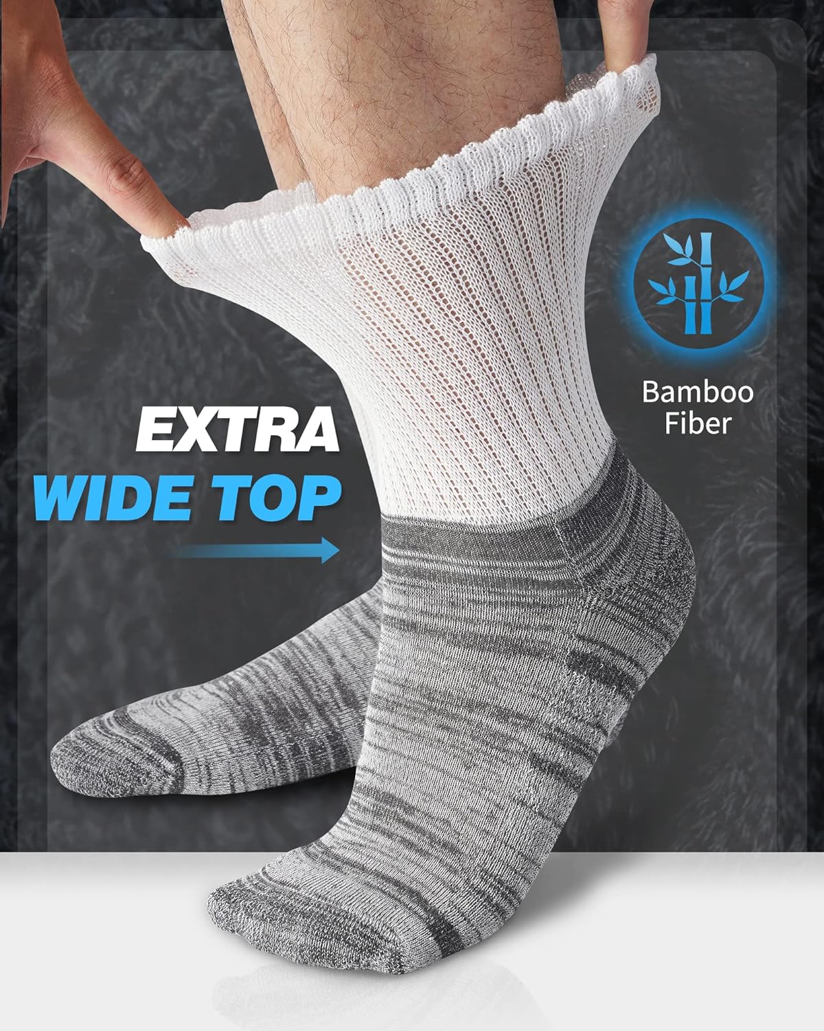 LIN Diabetic Socks for Men & Women, Non-Binding Circulatory Extra Wide Top Socks, Edema Neuropathy Lymphedema, 4,6,12 Pairs
