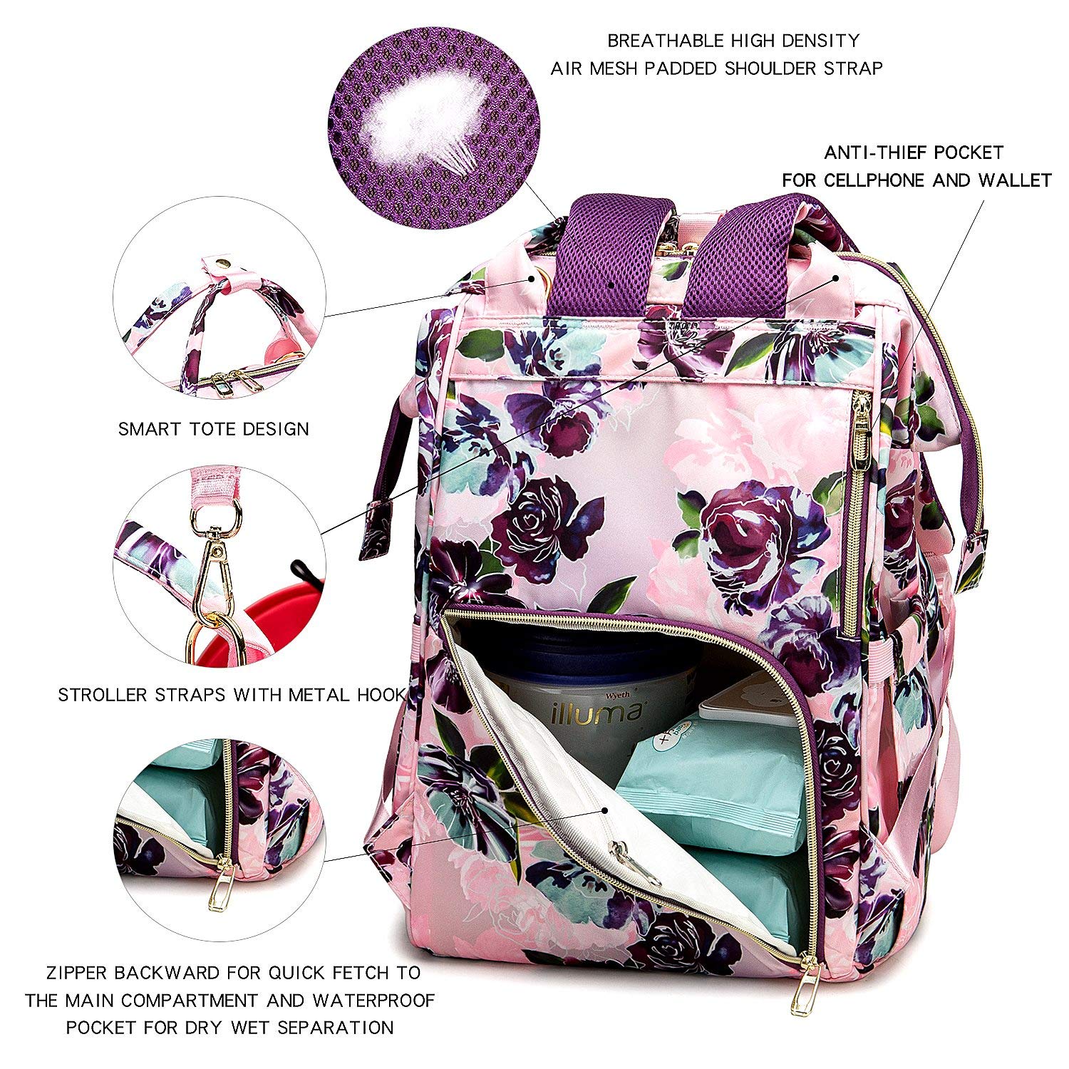 • ⭐High Quality&Durable:Our Diaper Bag use Durable,Lightweight,Waterproof Oxford Fabric,Thick Strong Nylon Thread and Smooth Strong Zipper,Reinforced Stitching on Shoulder,Handle and Stroller Straps,Very Good Deform&Tear Resistance