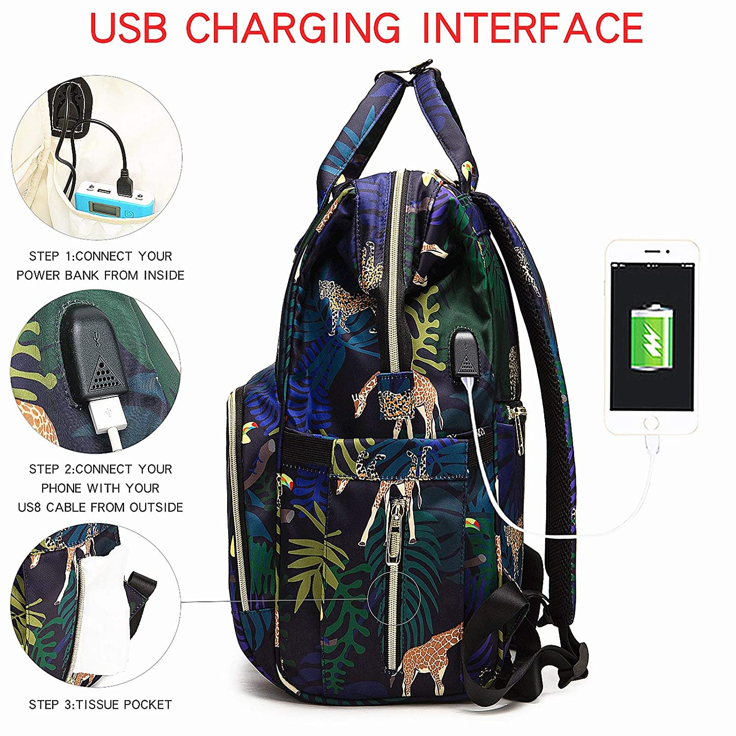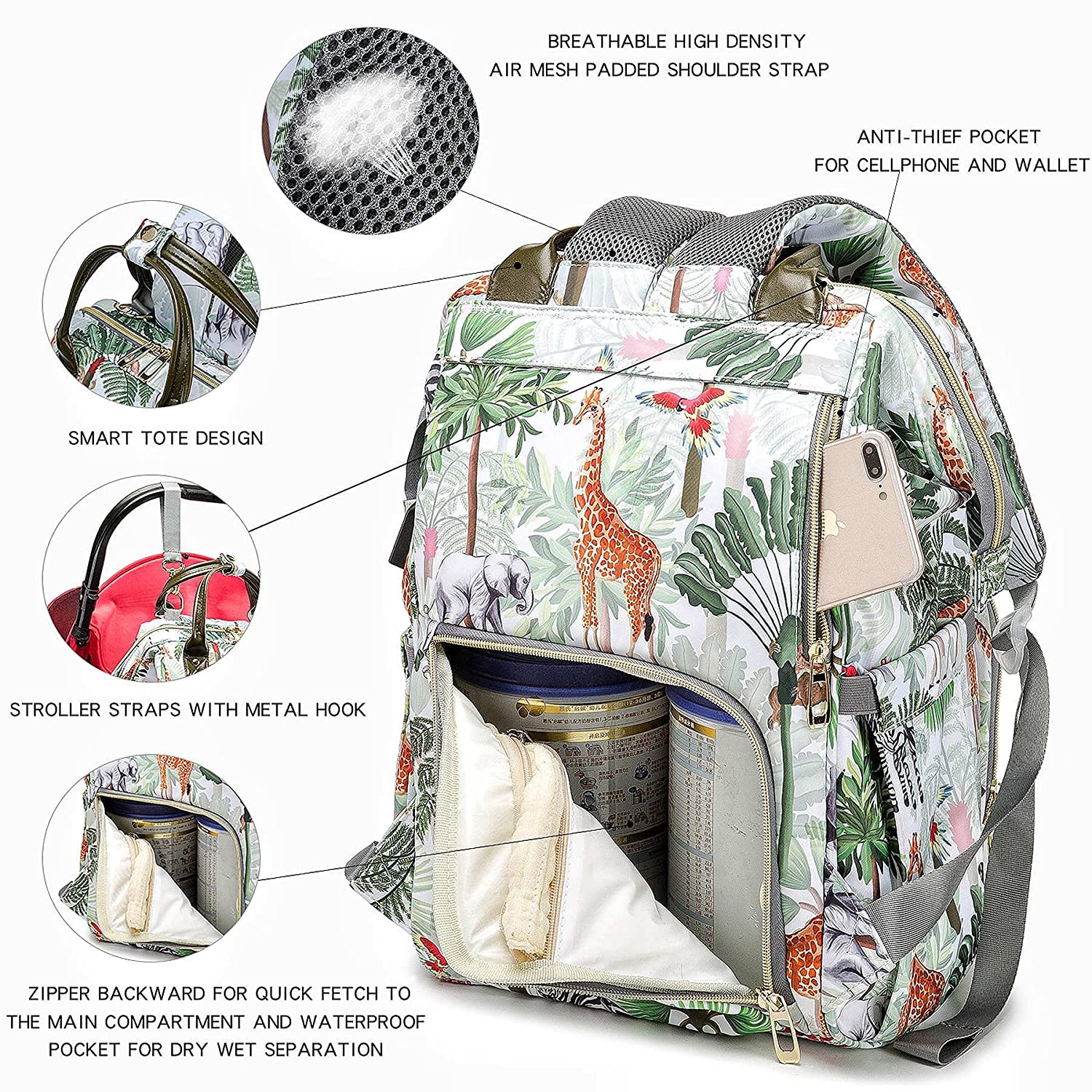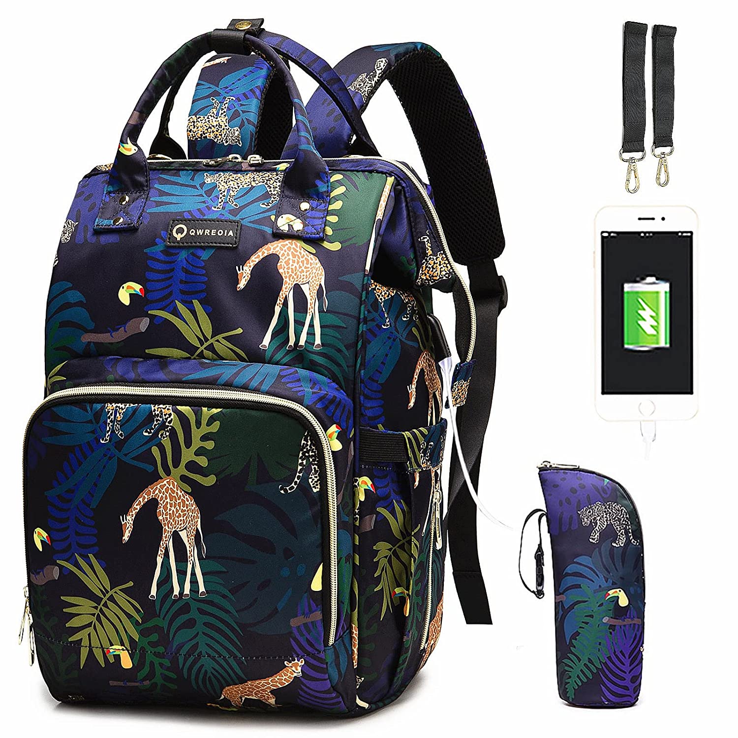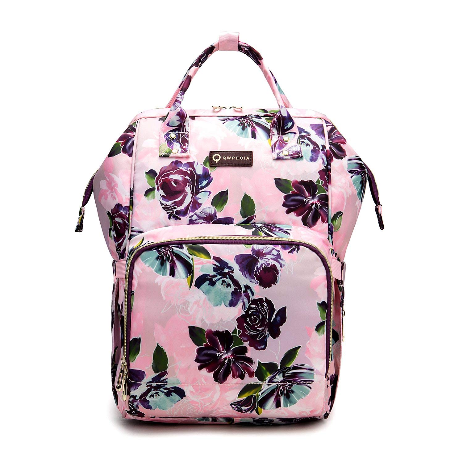 QWREOIA Floral Diaper Bag Backpack with USB Charging Port Stroller Straps and Insulated Pocket,Travel Nappy BackpackFor Women/Mum (Flower Pattern)