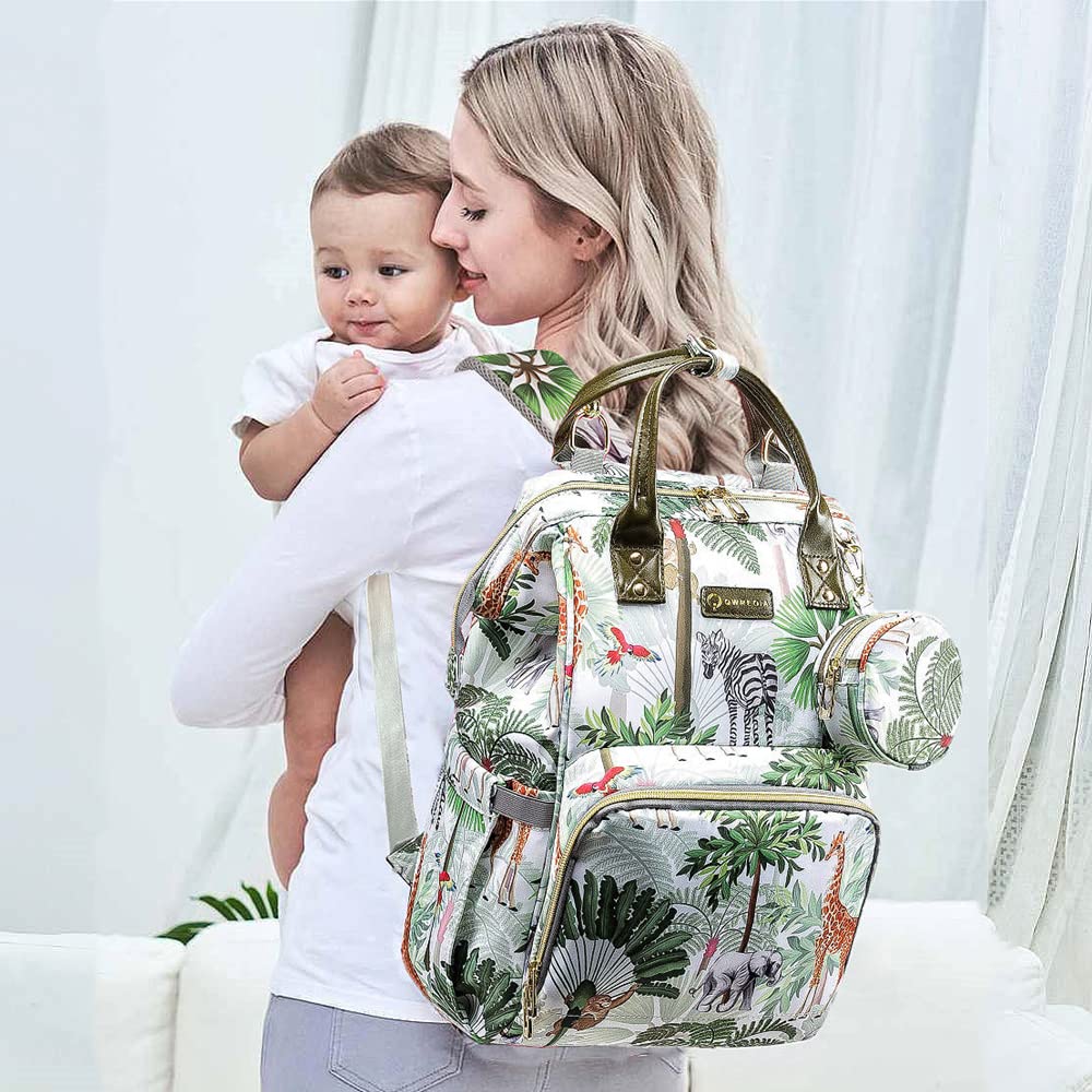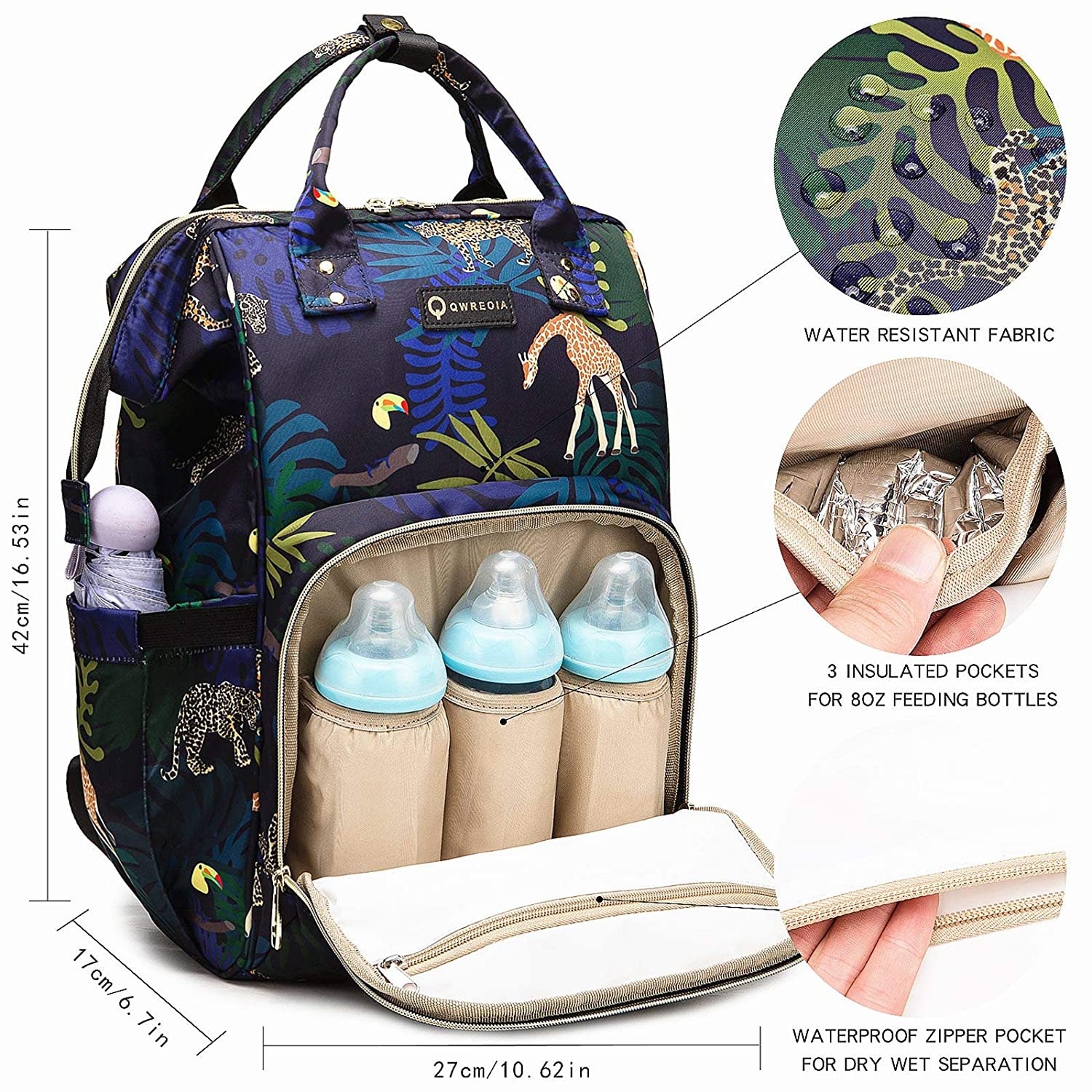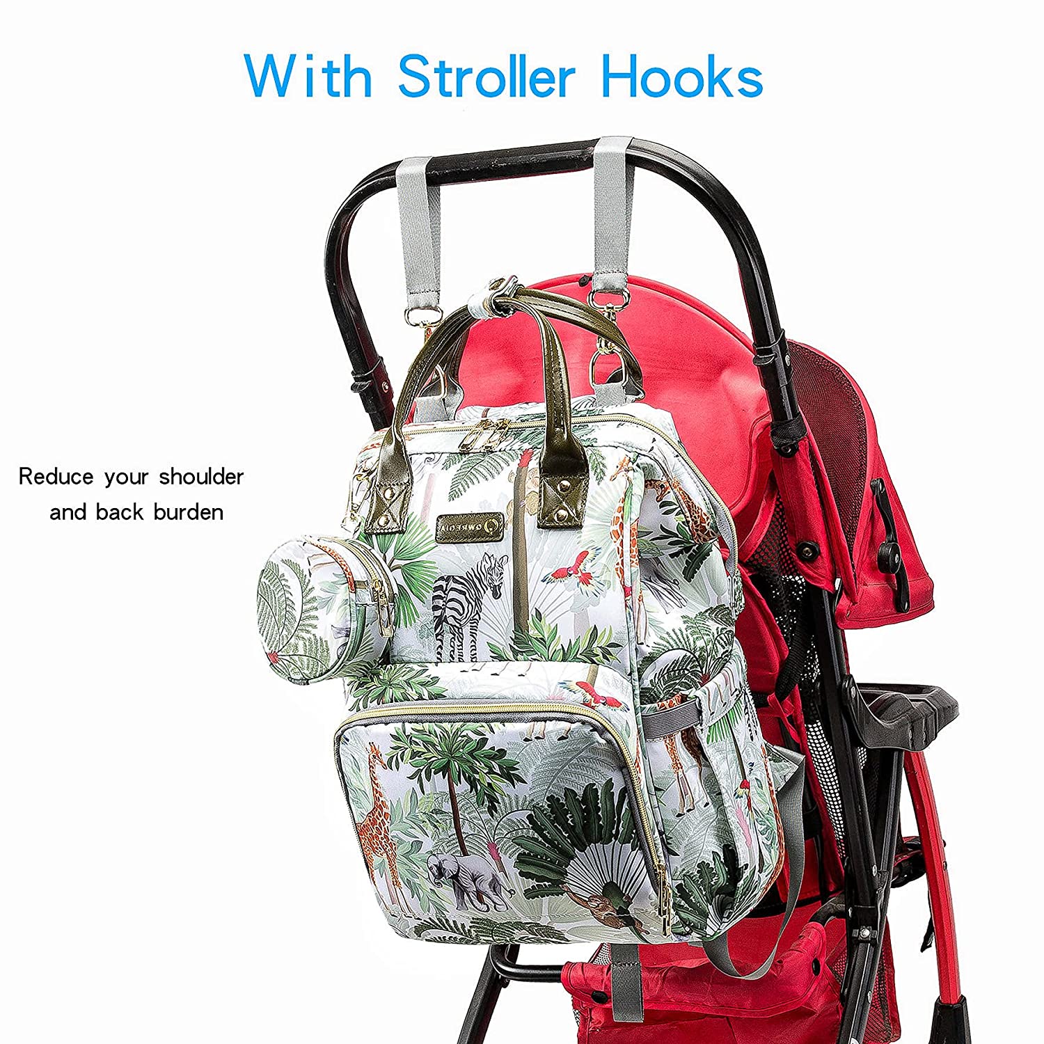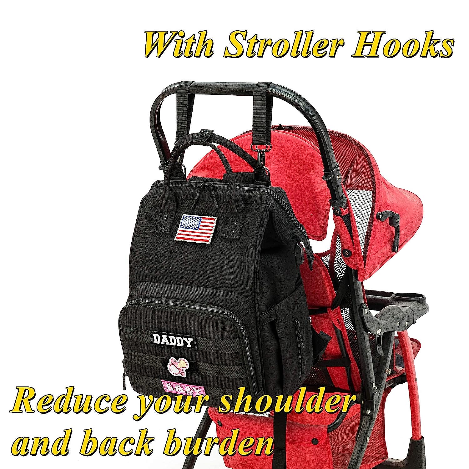 • ?Stylish & Convenient: Neutral Design Diaper Bag in Black with stylish print (flower pattern). Hands-free by the Stroller Straps, One-Hand Controlling via the Easy-taking Zipper and the Outside Pockets without Opening the Big Zipper. It has both shoulder strap and hand-held strap, so you can use it as backpack or tote bags according to your needs.