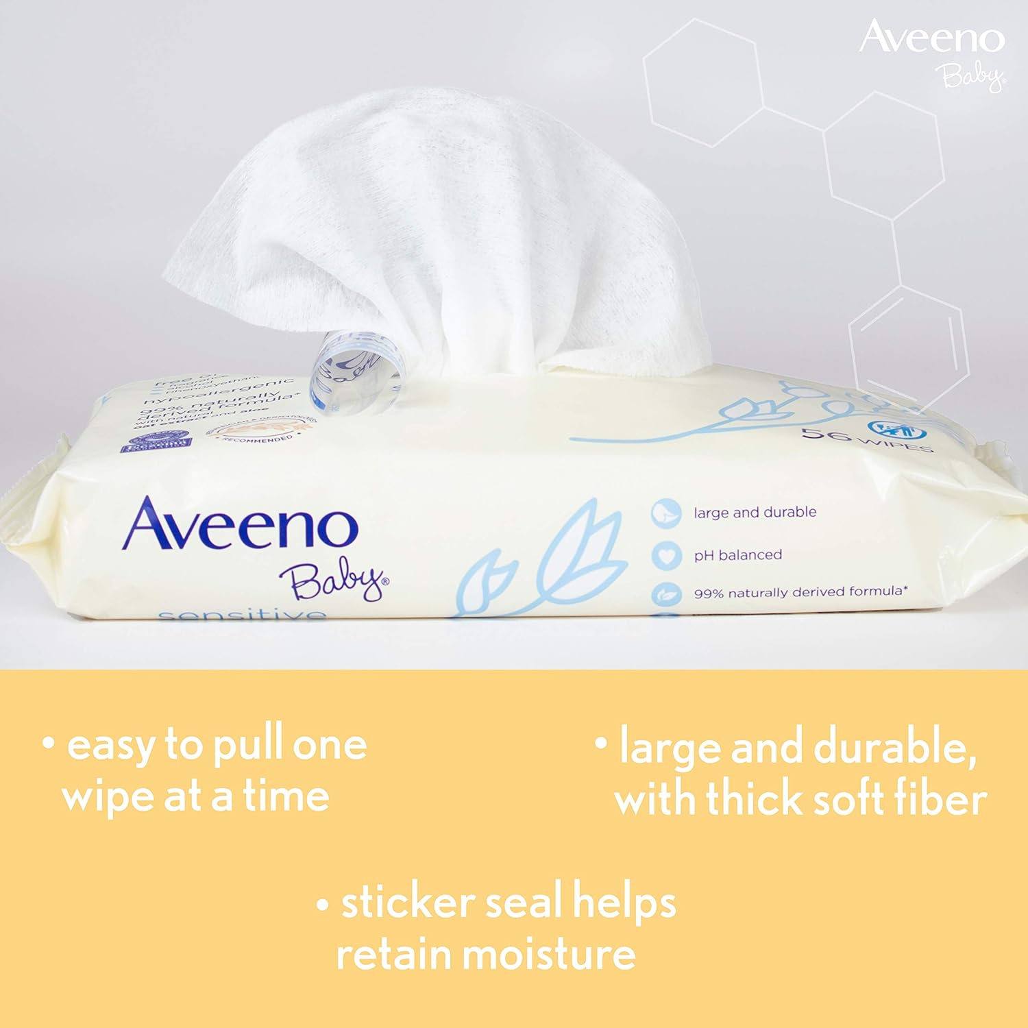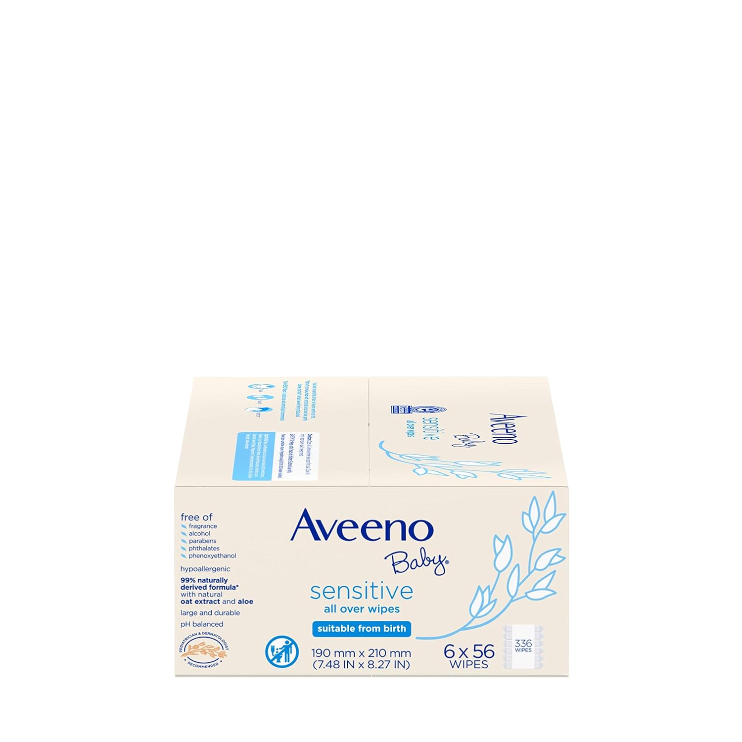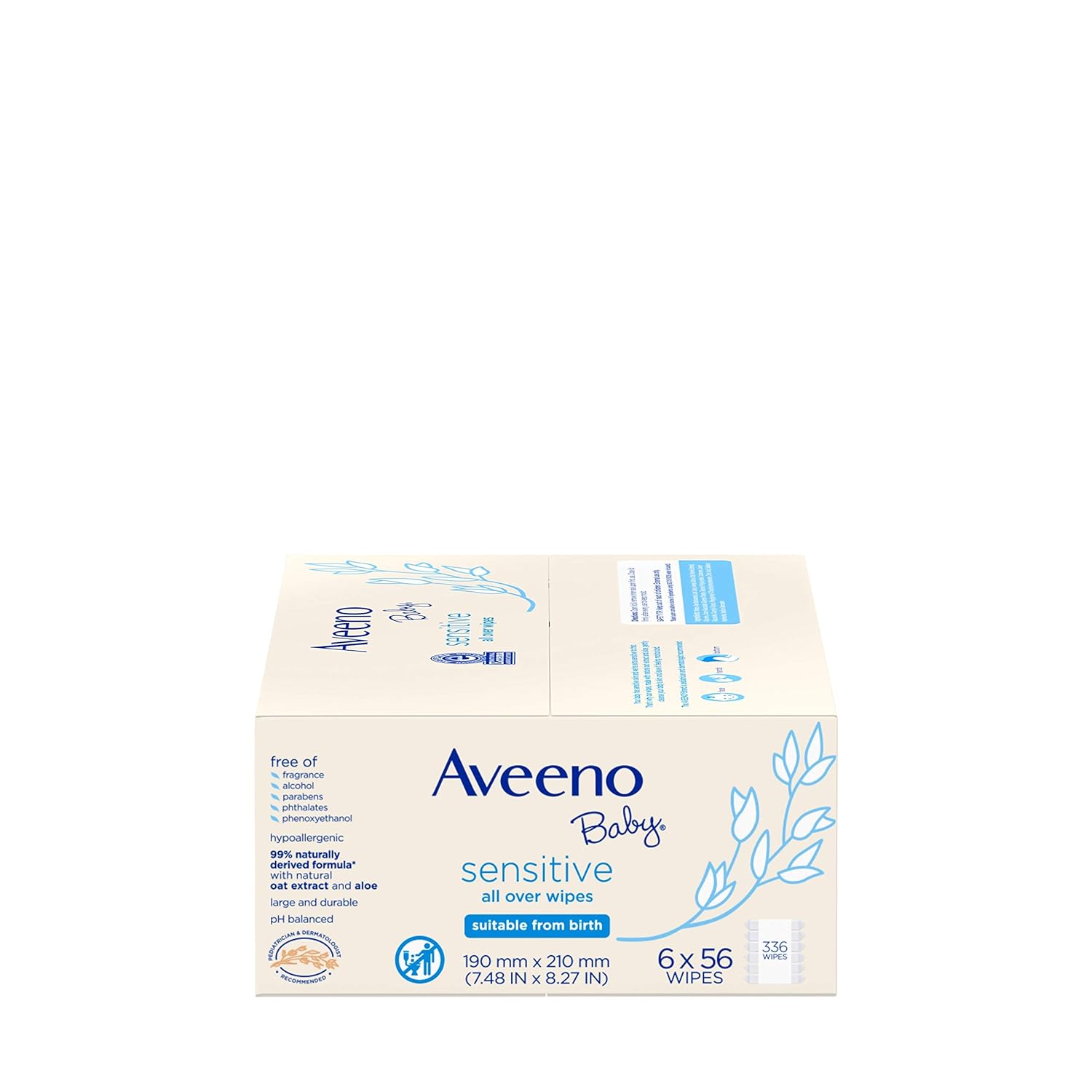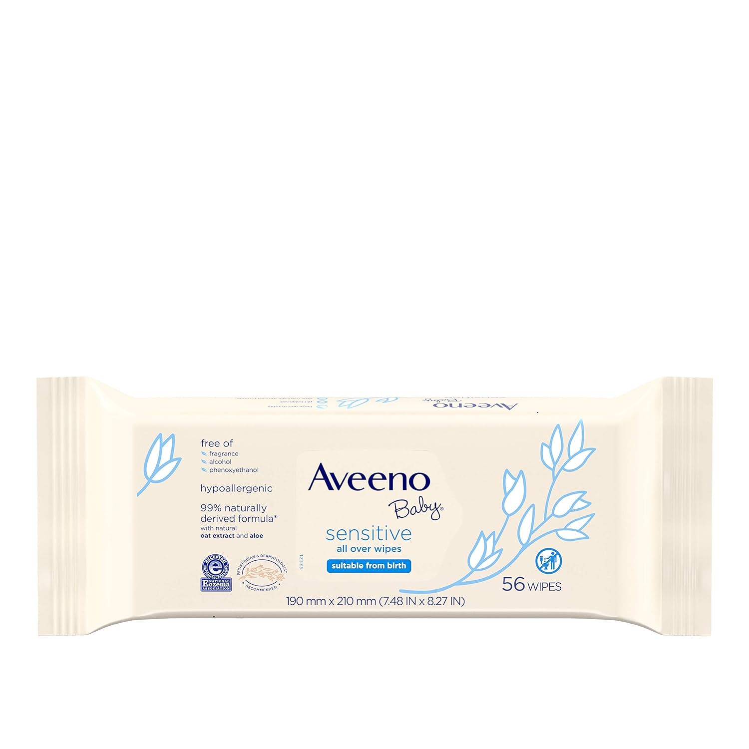 Aveeno Baby Sensitive All Over Wipes with Aloe & Natural Oat Extract for Face, Bottom, Hands & Body, pH-Balanced, Hypoallergenic, Fragrance-, Phenoxyethanol- & Alcohol-Free, 64 ct