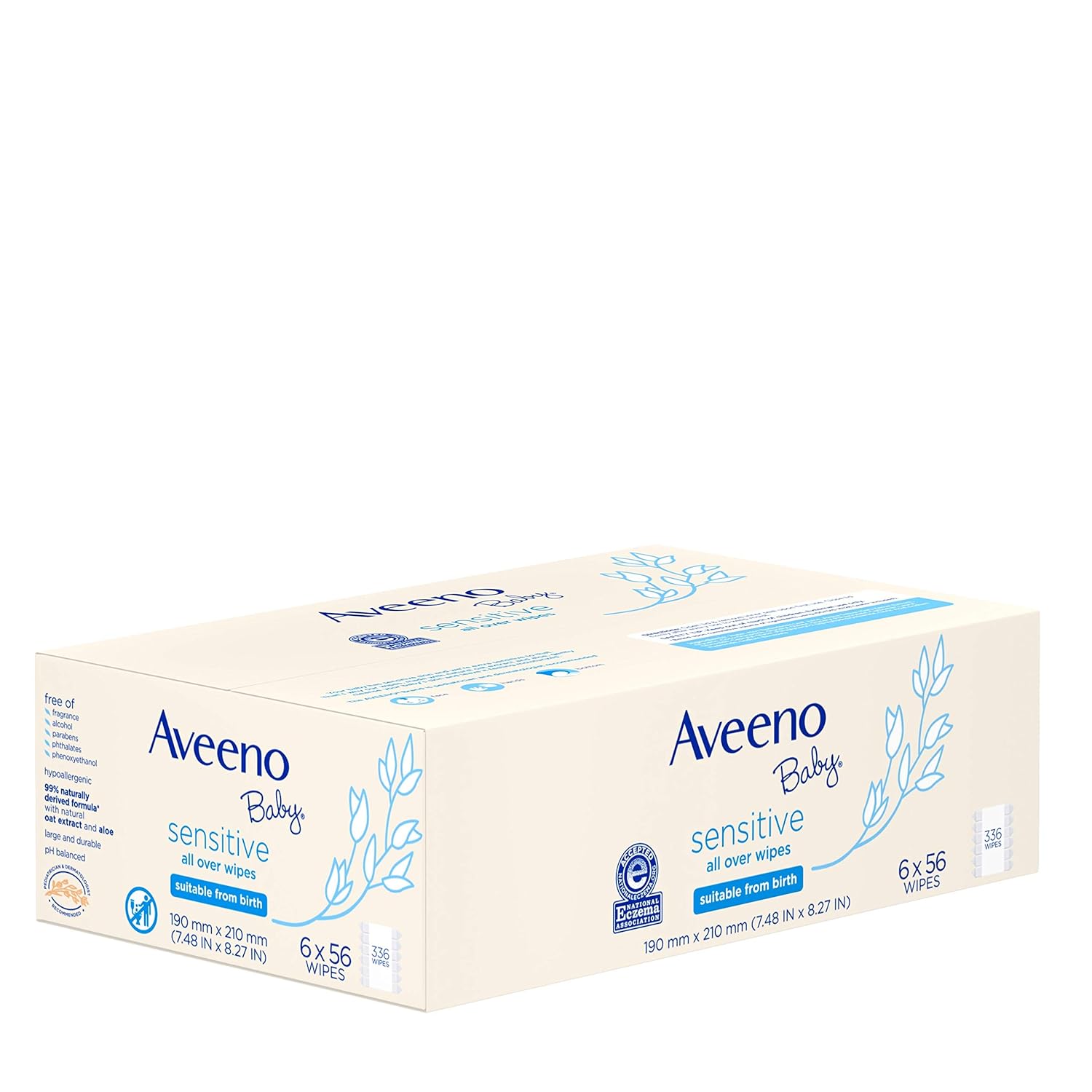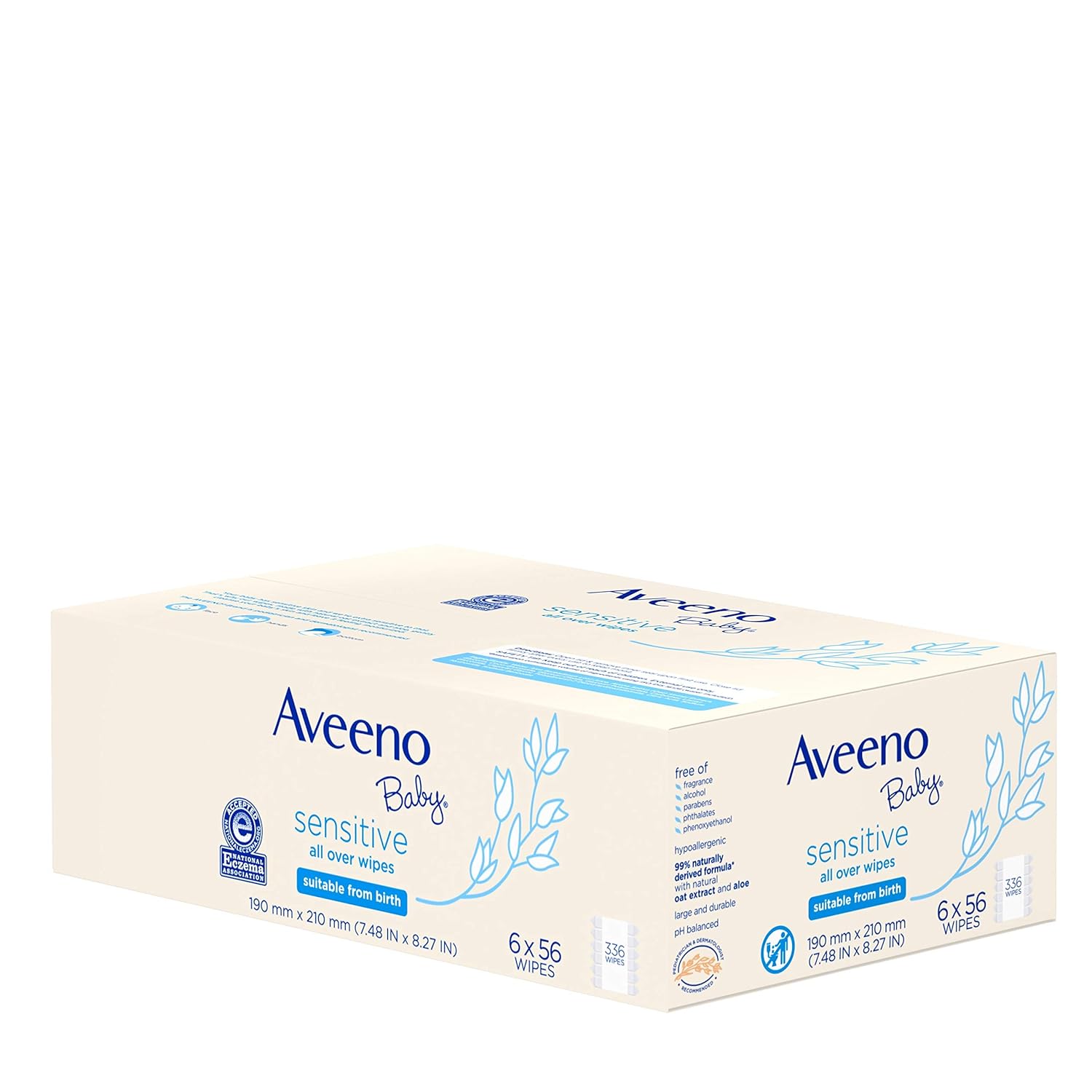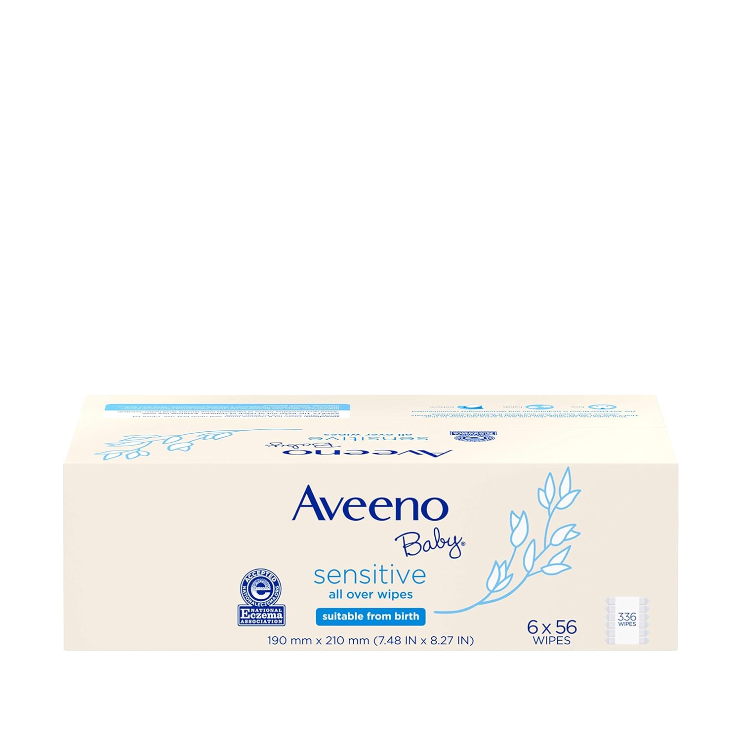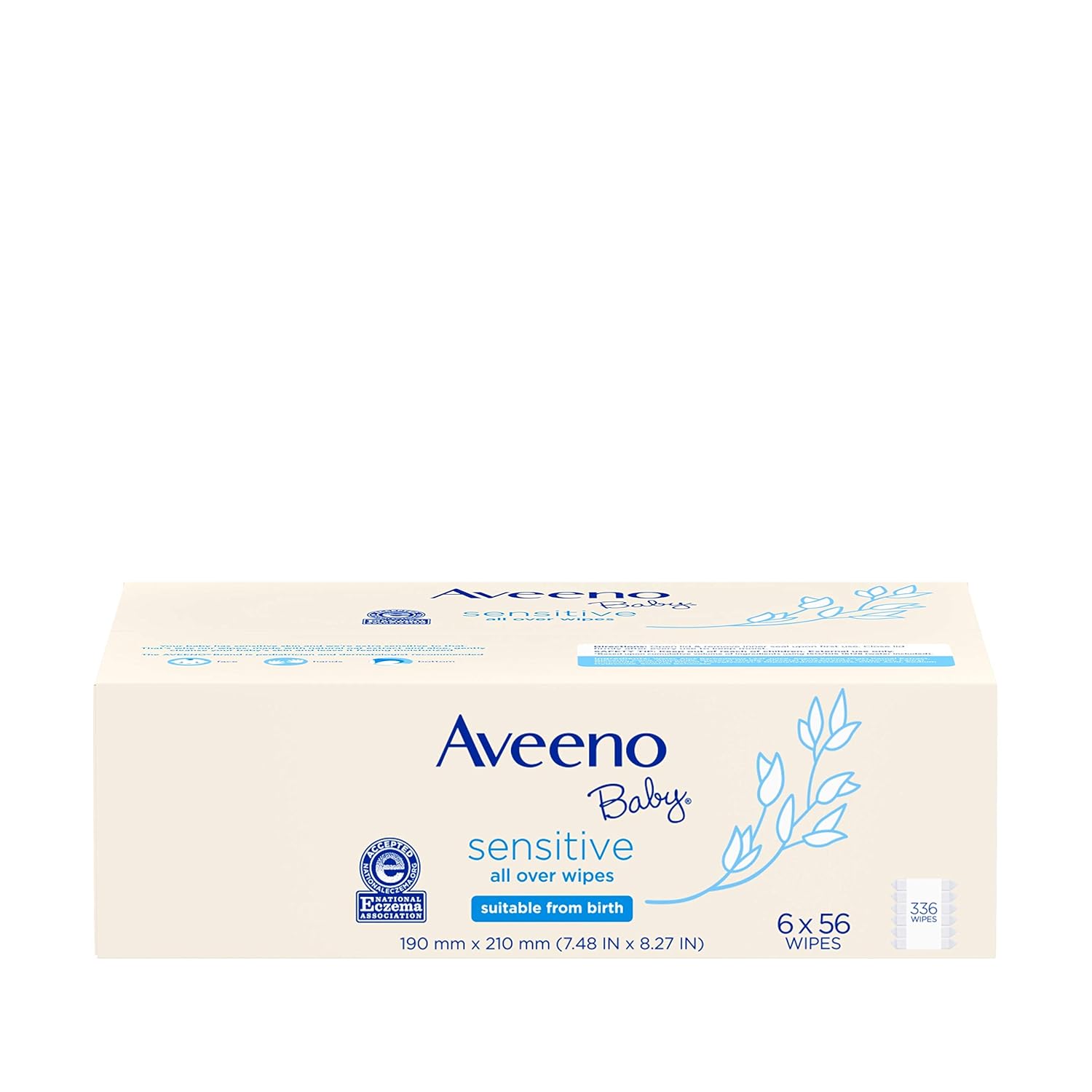 Aveeno Baby Sensitive All Over Wipes with Aloe & Natural Oat Extract for Face, Bottom, Hands & Body, pH-Balanced, Hypoallergenic, Fragrance-, Phenoxyethanol- & Alcohol-Free, 64 ct
